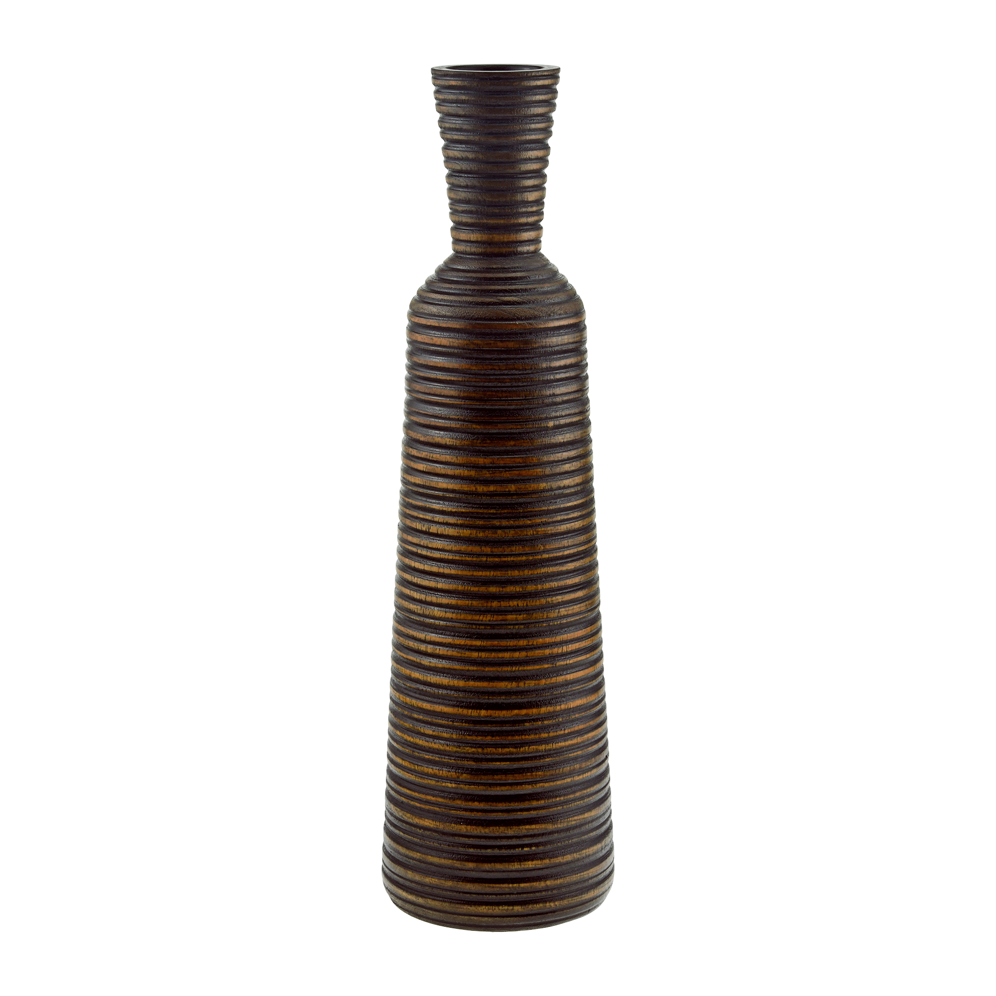 Bring yourself closer to nature with this delightful seamless vase just right for any corner spot. For this design, Artisan Saranya from Thailand uses mango wood, which is a sustainable wood that grows abundantly in Thailand. A horizontal striped pattern decorates this piece, giving it a trendy vibe. A beautiful 2-tone color scheme uses the natural wood color while the light brown stain adds a stunning contrast. This bottle-shaped decorative vase measures in with a height of 14 inches and would look absolutely amazing in any interior at any space.