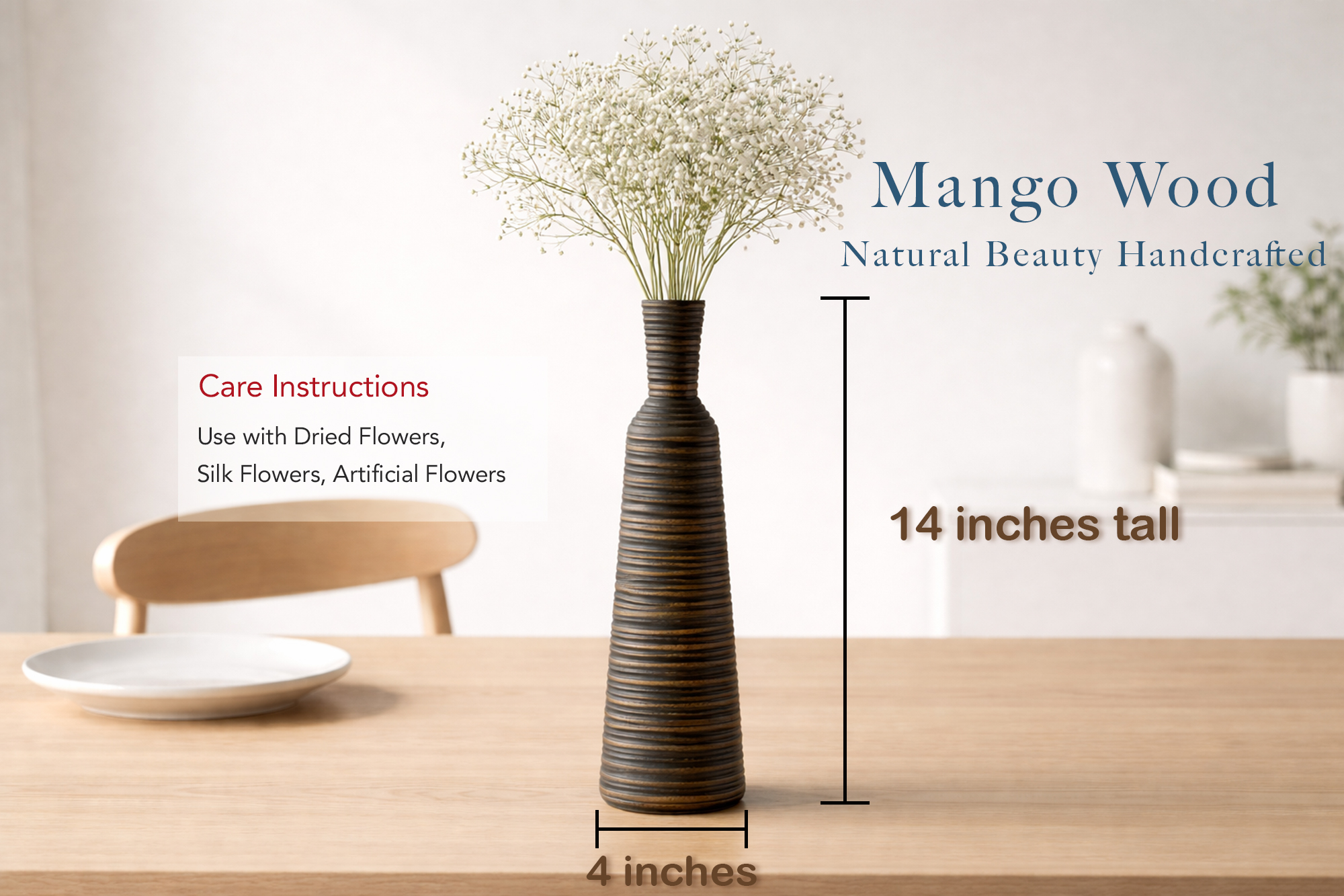 | Care instructions: | Use with dried flowers, silk flowers, artificial flowers |
