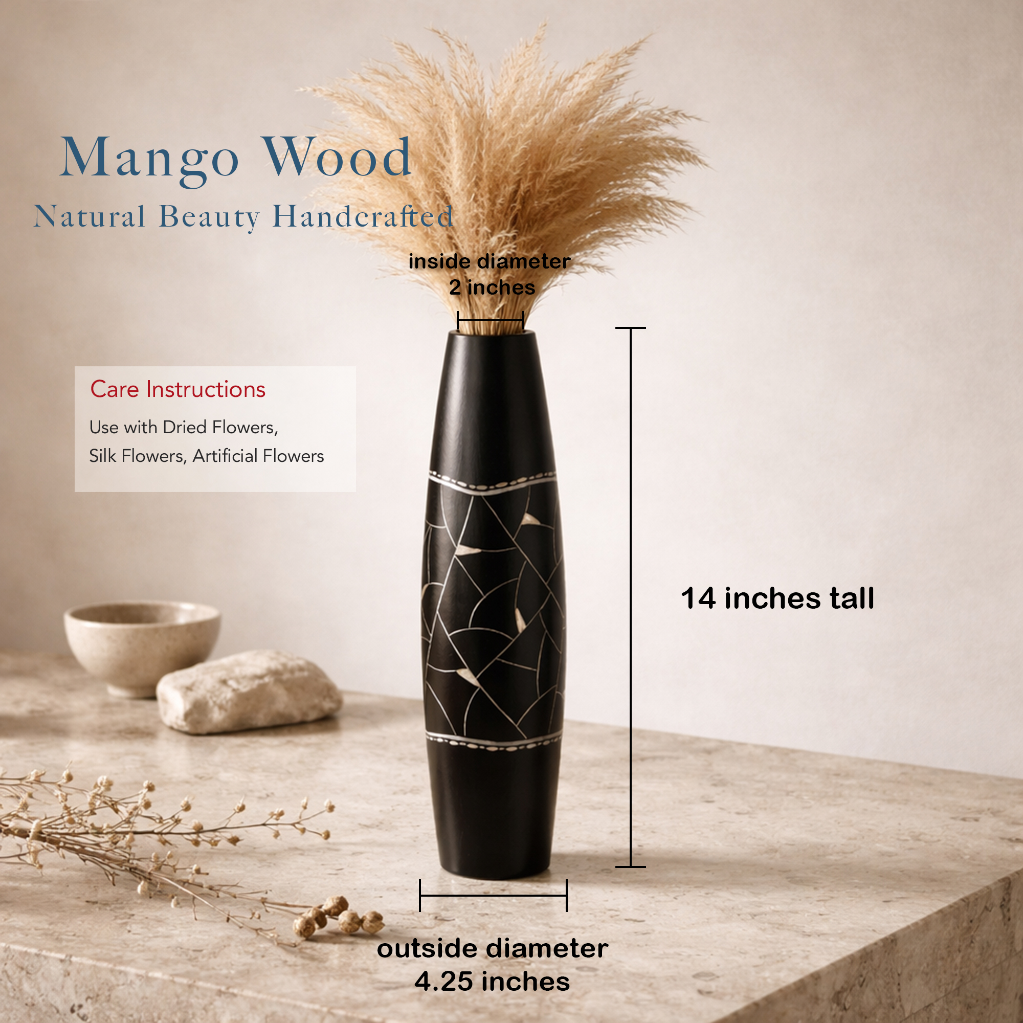 Modern Mosaic Tile Pattern Black Natural Mango Tree Wood Flower Vase