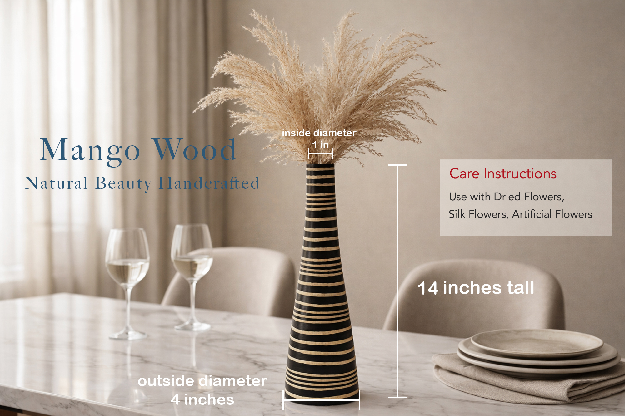 | Care instructions: | Use with dried flowers, silk flowers, artificial flowers |