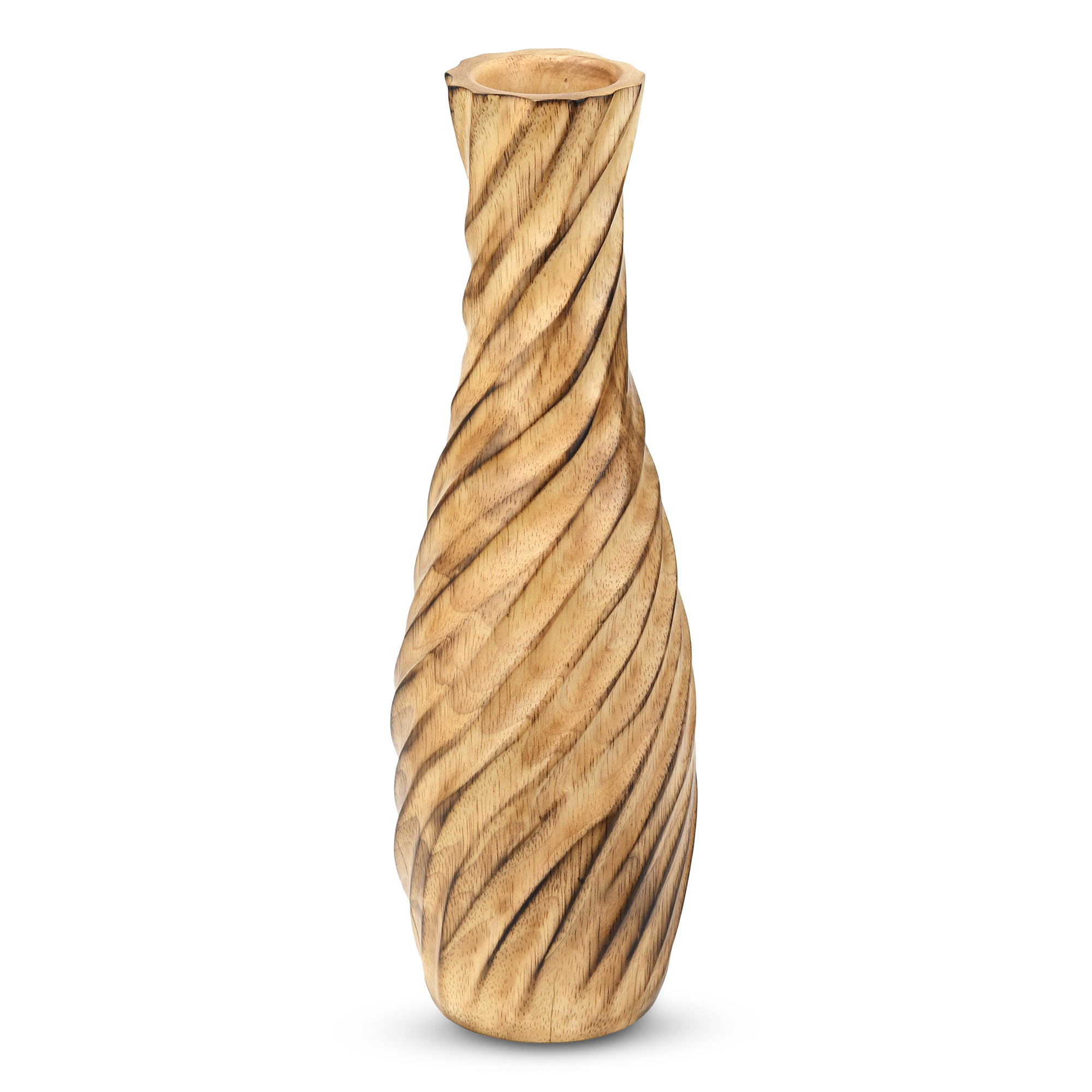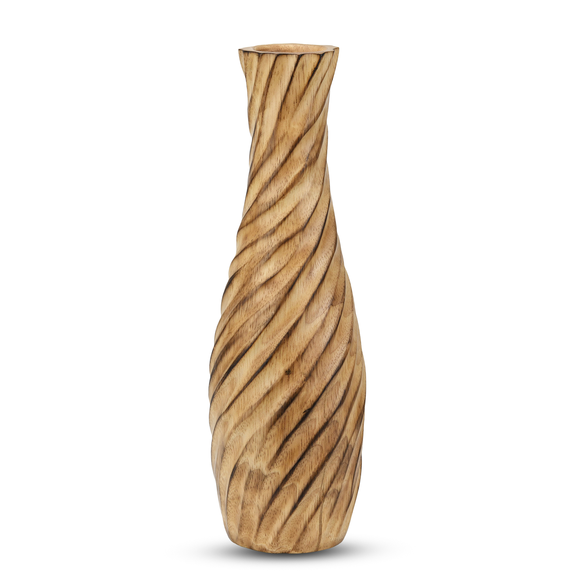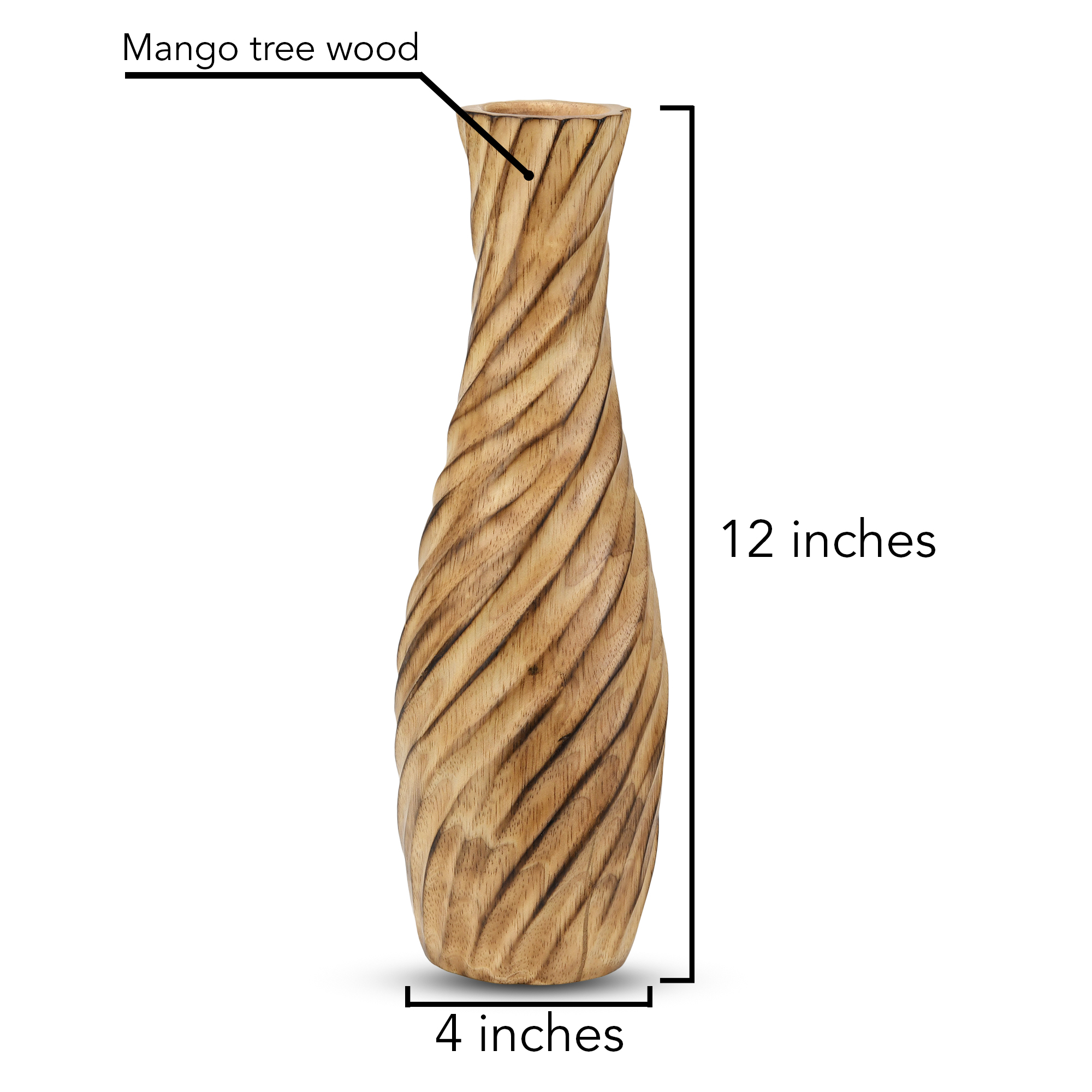 Infuse your home with rustic charm using this hand-carved spiral mango wood vase. The intricate spiral design and textured finish highlight the natural beauty and craftsmanship of the mango wood. Each vase is meticulously carved by skilled artisans, ensuring a unique and authentic piece for your decor. Whether displayed as a standalone accent or filled with your favorite flowers, this vase adds a touch of artisanal elegance to any space. Feel free to check out more designs via our other listings. NOTE: Due to the handcrafted nature of this product, minor differences in design, sizing, and weight will occur from piece to piece. The exact measurements may vary slightly. Pictures may not be true to scale, please check the dimensions for the actual size.