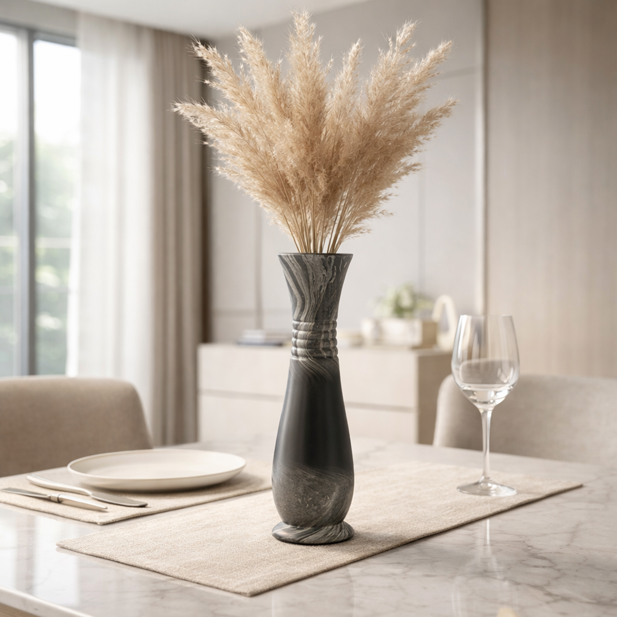 Smoky Grain Gray and Black Mango Tree Wood Hand Carved Vase