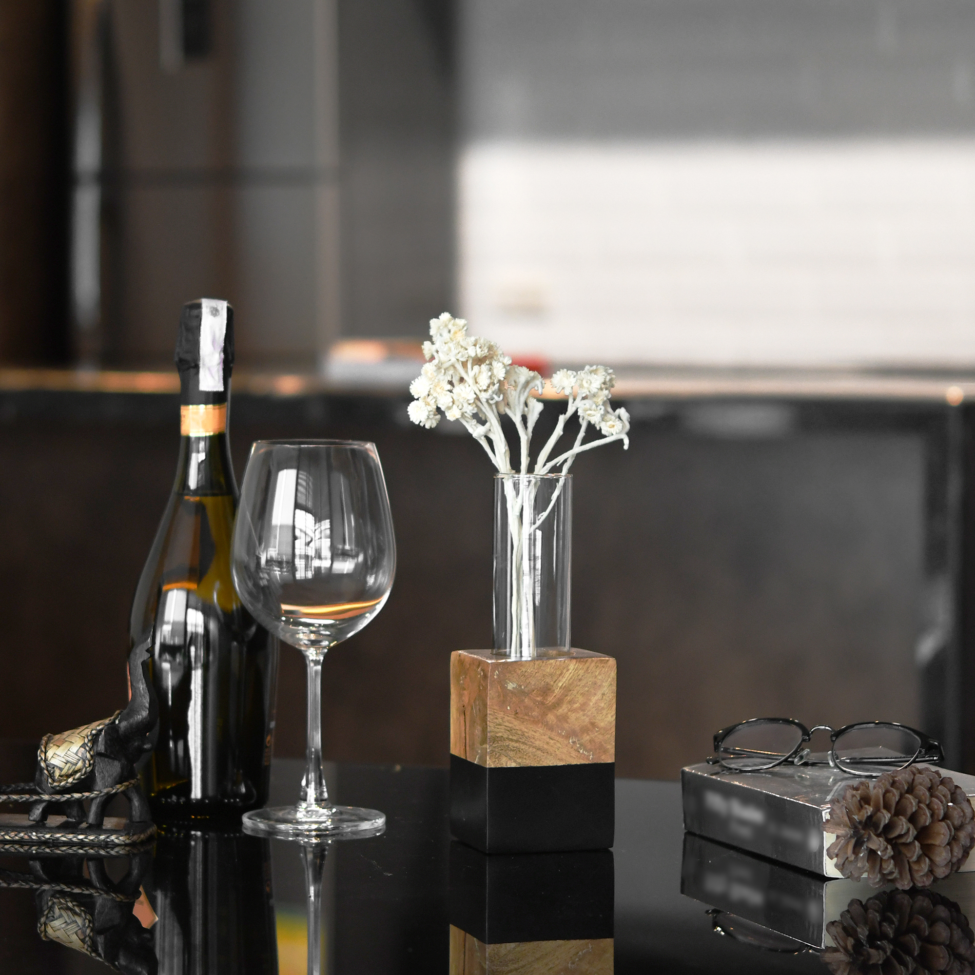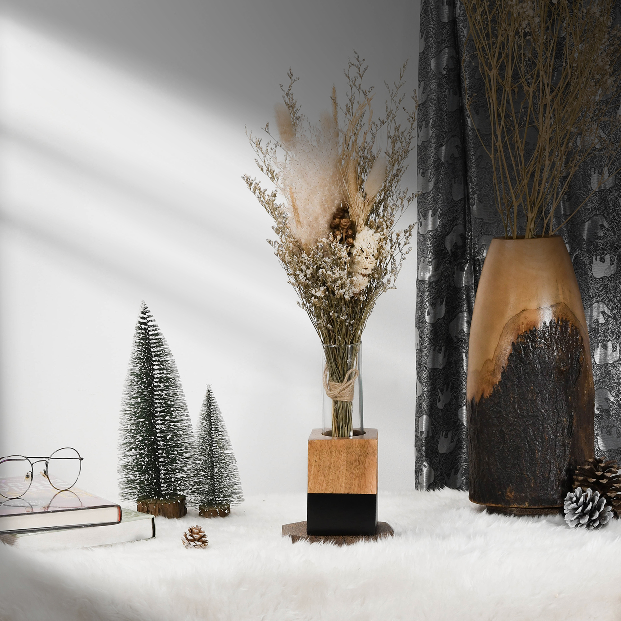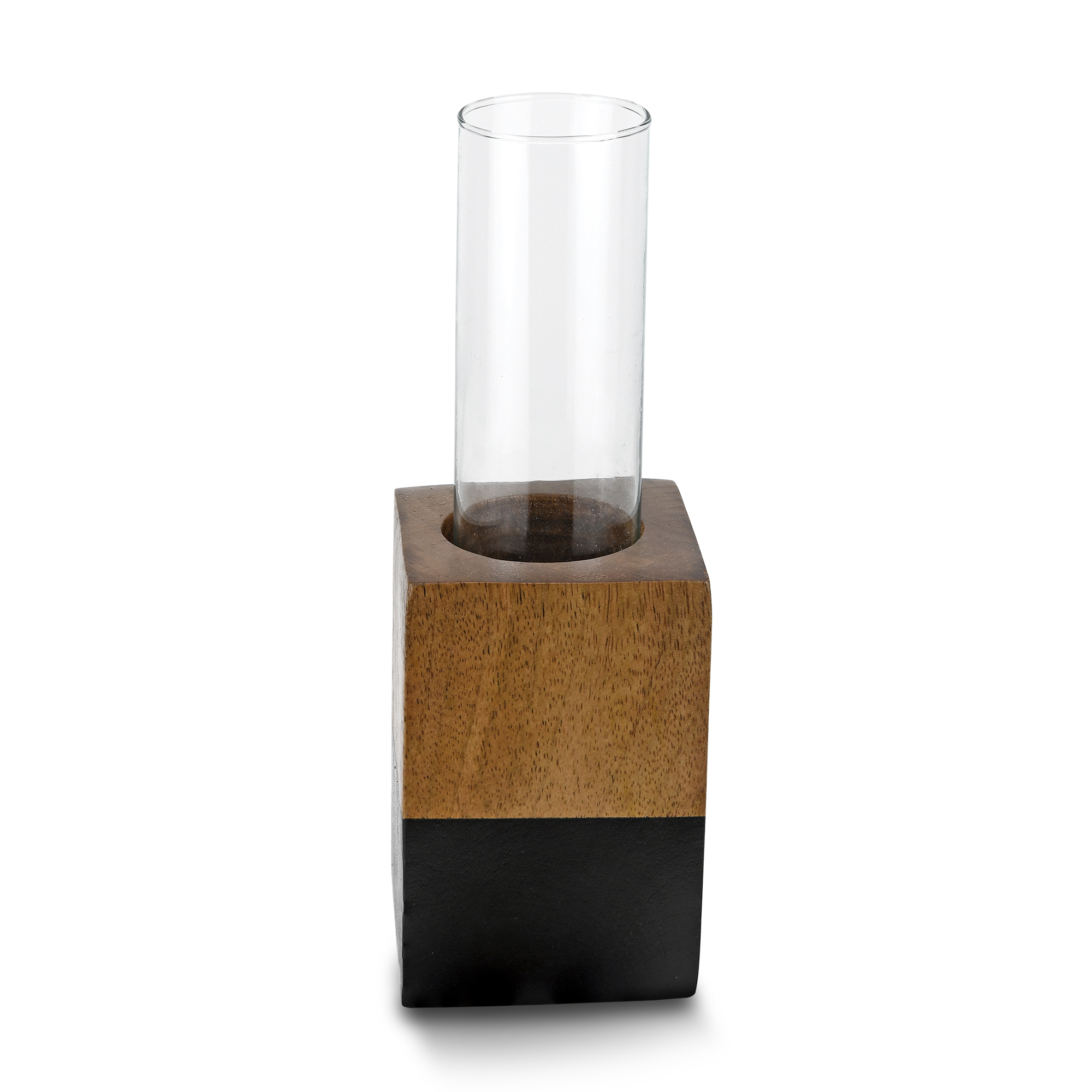 Square Twotone Mango Tree Wood Stand Glass Tube Water Propagation Plant Vase