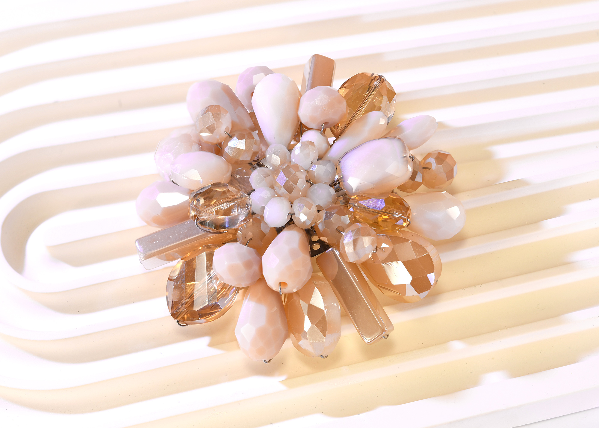 Add a sparkling accent to whatever you are wearing with this stunning brooch pin from artisan Nok of Thailand. For this design, she uses a beautiful combination of sparkling crystal gemstones, cultured pearls and metallic bead accents to create this stunning accessory. The cream and pink color tones blend together and make for an elegant contrast. A truly unique and stylish brooch pin, this fashion forward accessory will make a wonderful addition to your style wardrobe.