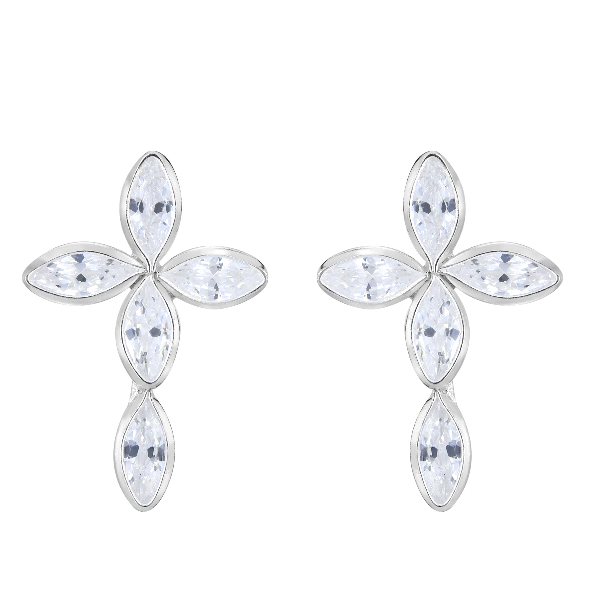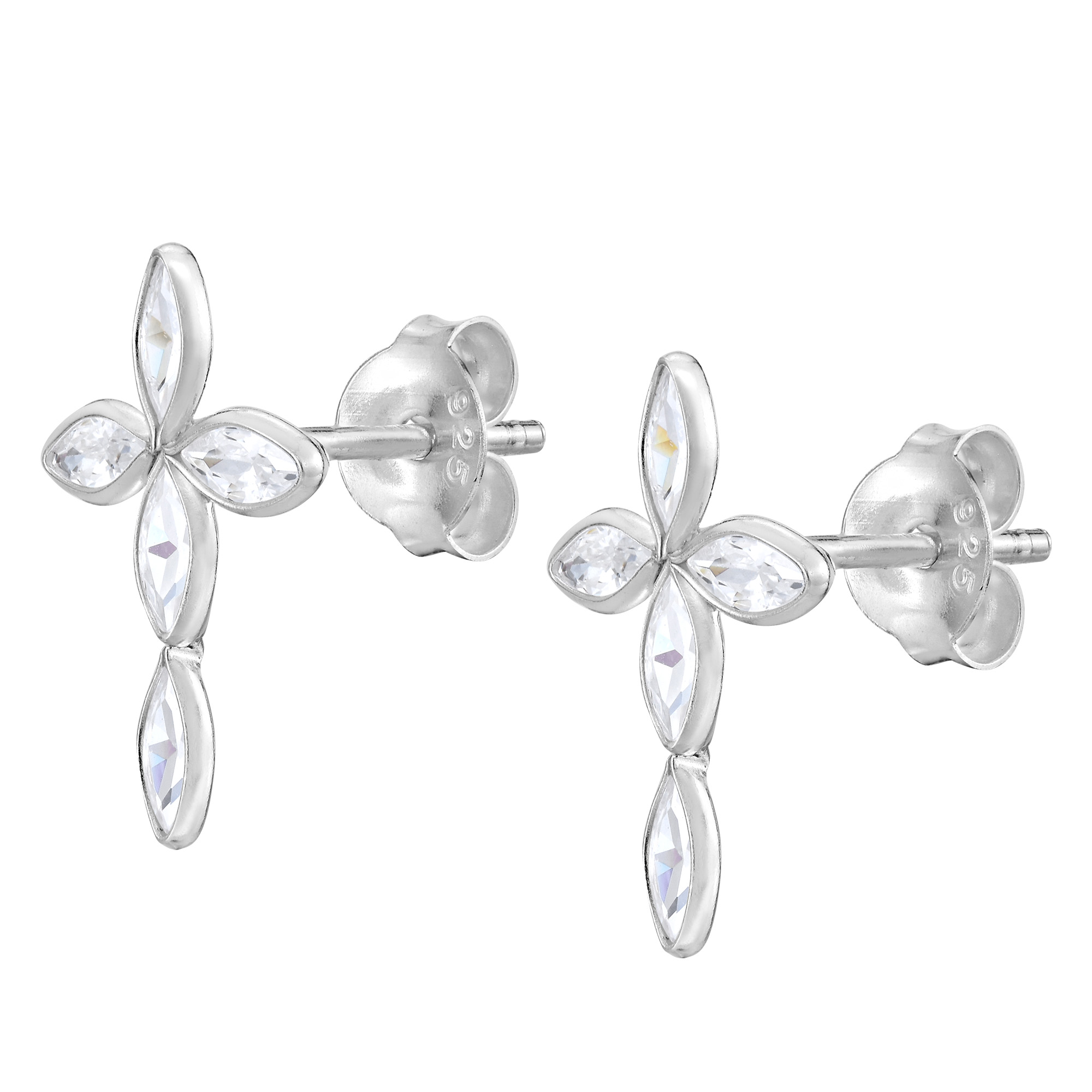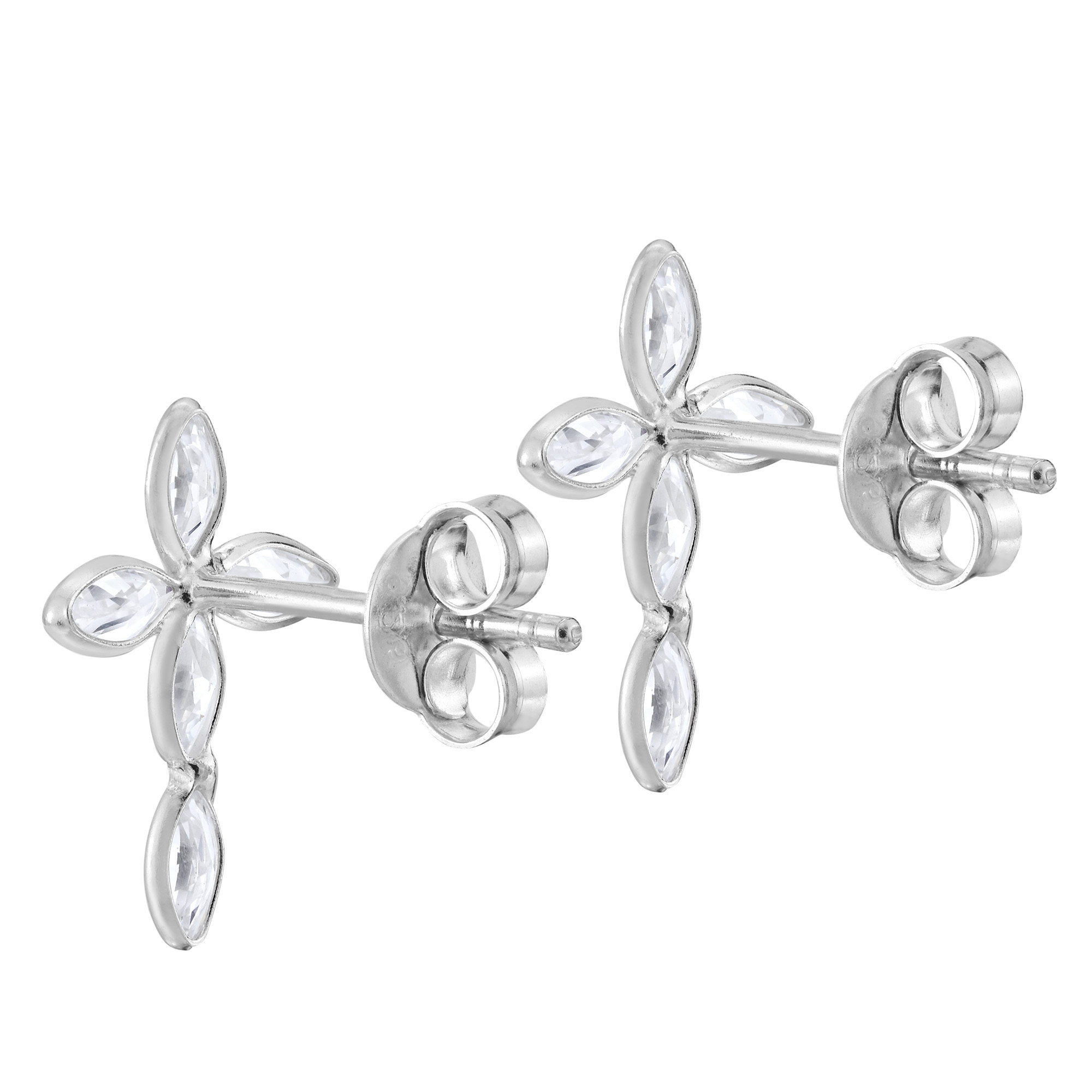 Let your faith sparkle with these iconic pair of cross earrings. For this design, artisan Thip of Thailand uses fine sterling silver to craft a unique pair featuring a sparkling cross in a beautiful marquise cut. The glowing cubic zirconia gemstones add a touch of sparkle that will catch the light with every move you make. A great way to add splash of color to whatever you are wearing, these stud earrings are a must have piece for any jewelry collection.