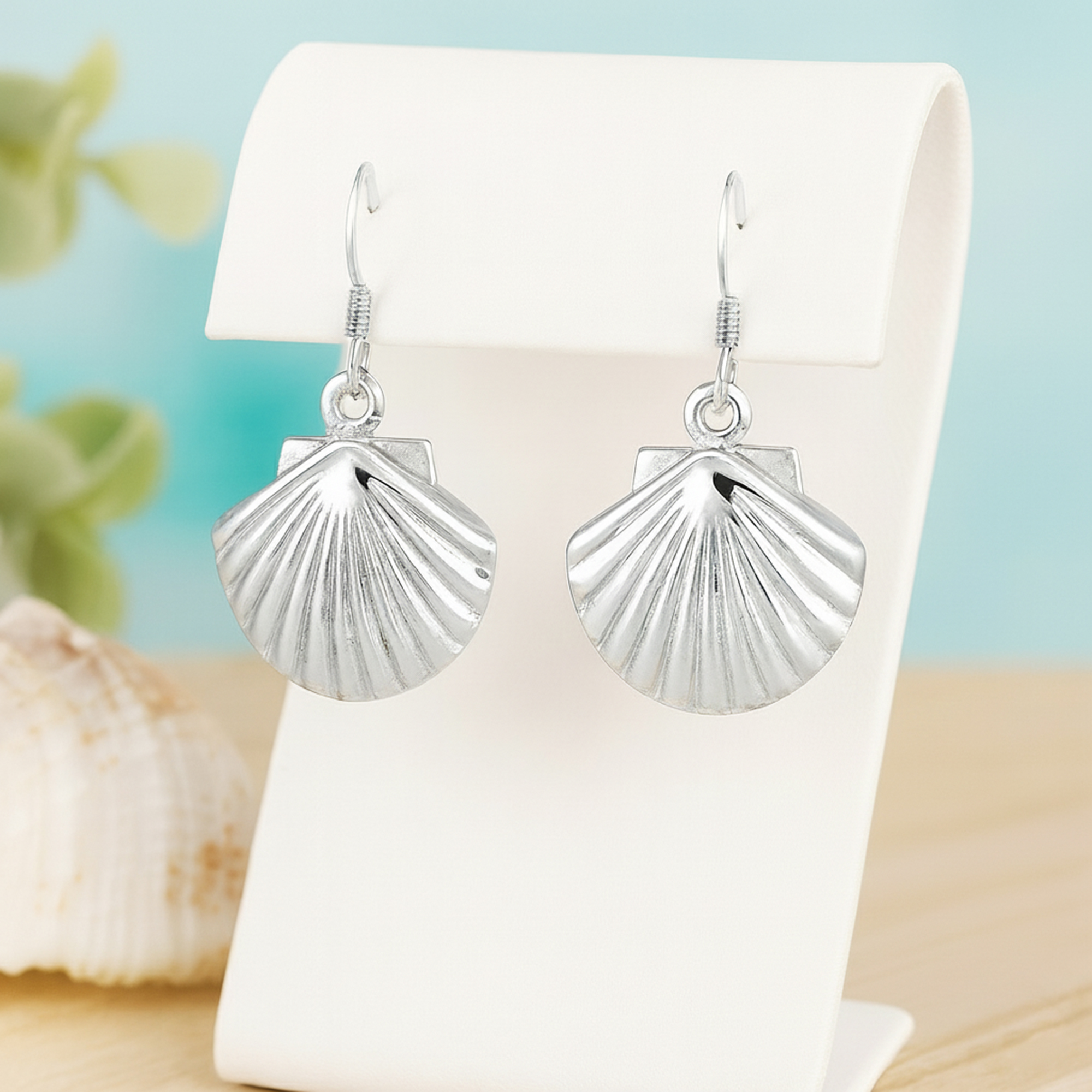 Artisan Kung from Thailand crafted this simple yet chic dangle style earrings from sterling silver. This unique earring set showcases natural-looking seashells similar to what you may find walking along the beach on a summer day.