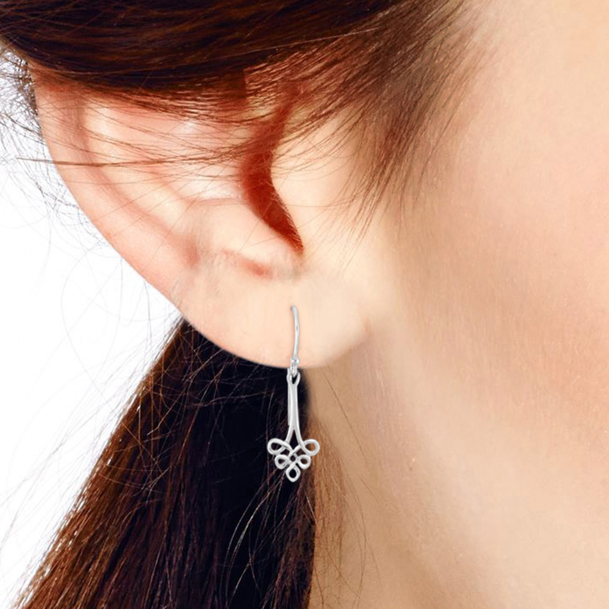 The perfect blend of minimal and contemporary, these Celtic knot inspired dangle earrings are crafted using fine and solid sterling silver by artisan Khun Amp of Thailand. The Celtic Knot has no beginning and no end, which is said to symbolize eternity. Taking the classic design into the next level and just the right amount of uniqueness, this is the perfect everyday style line-up.