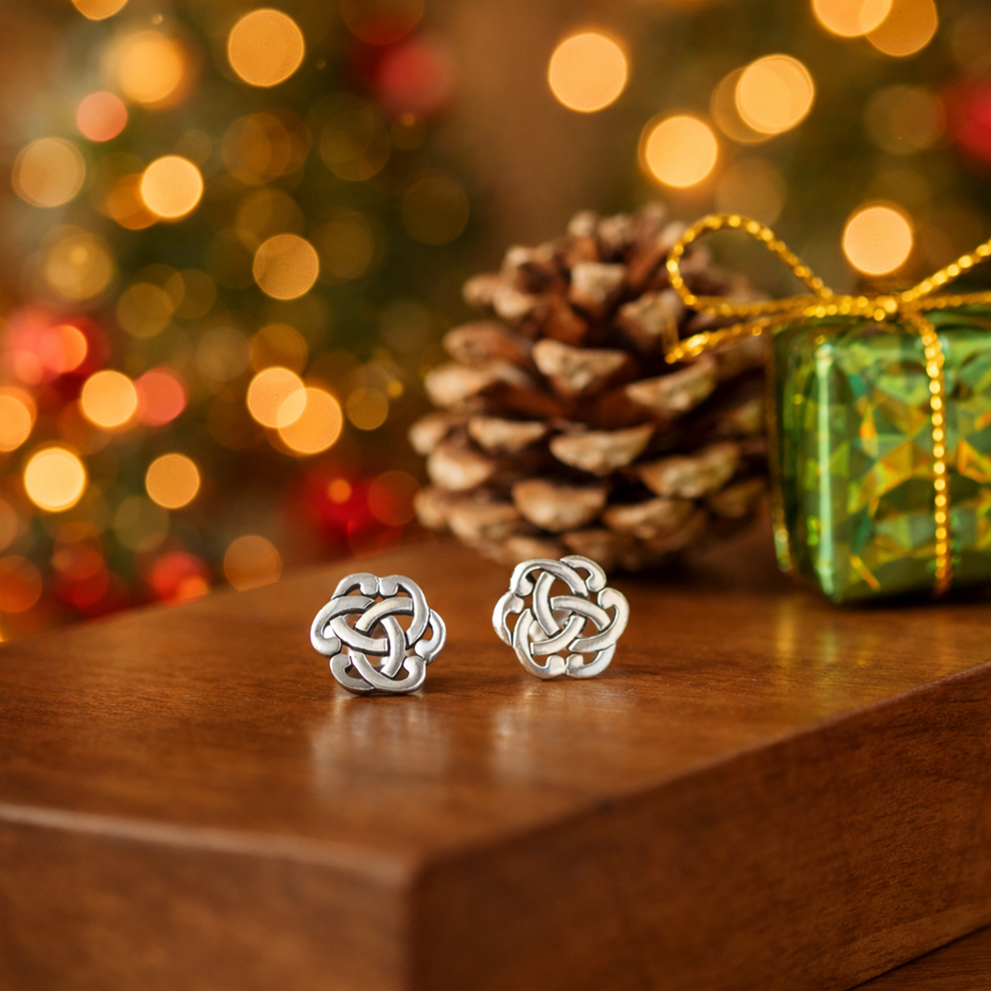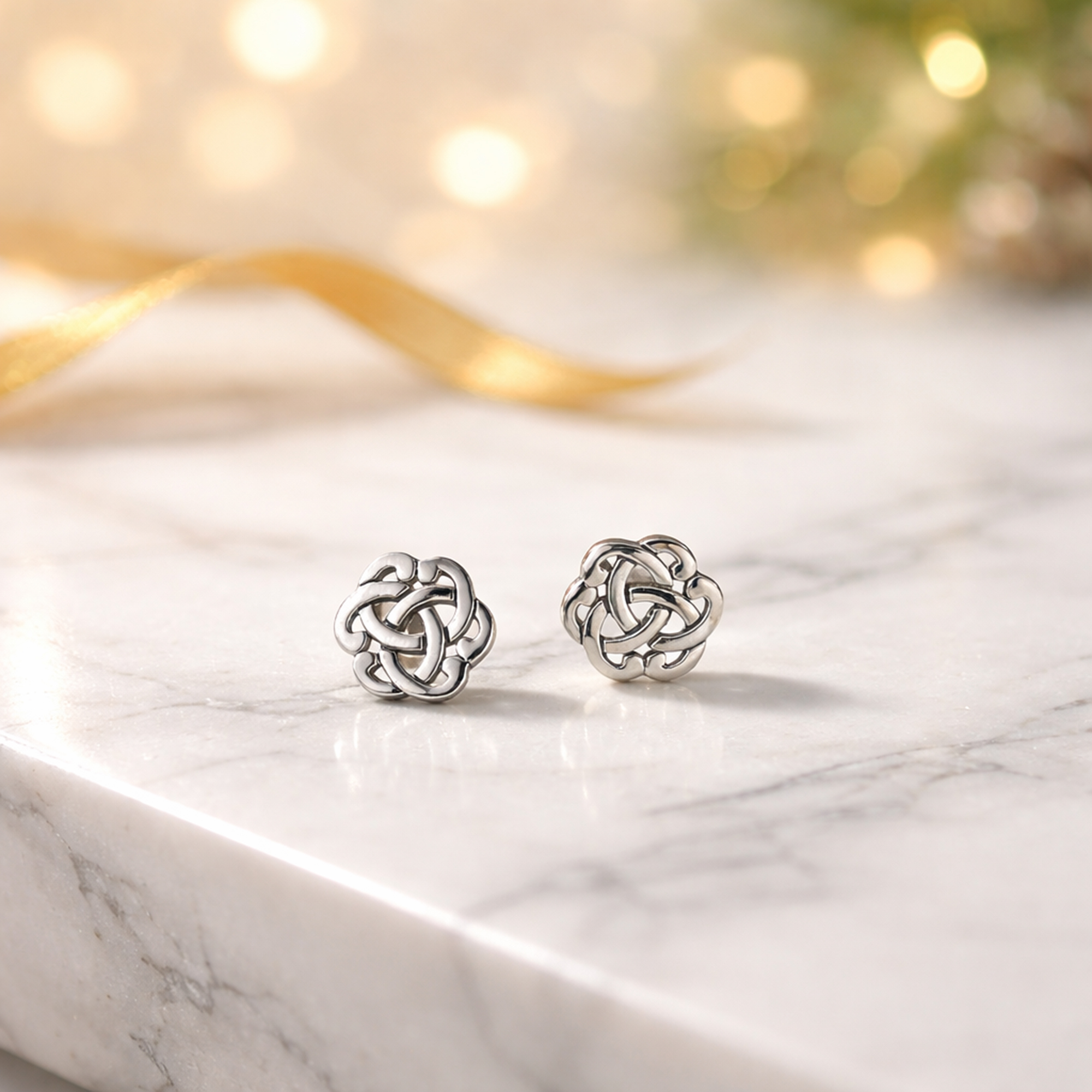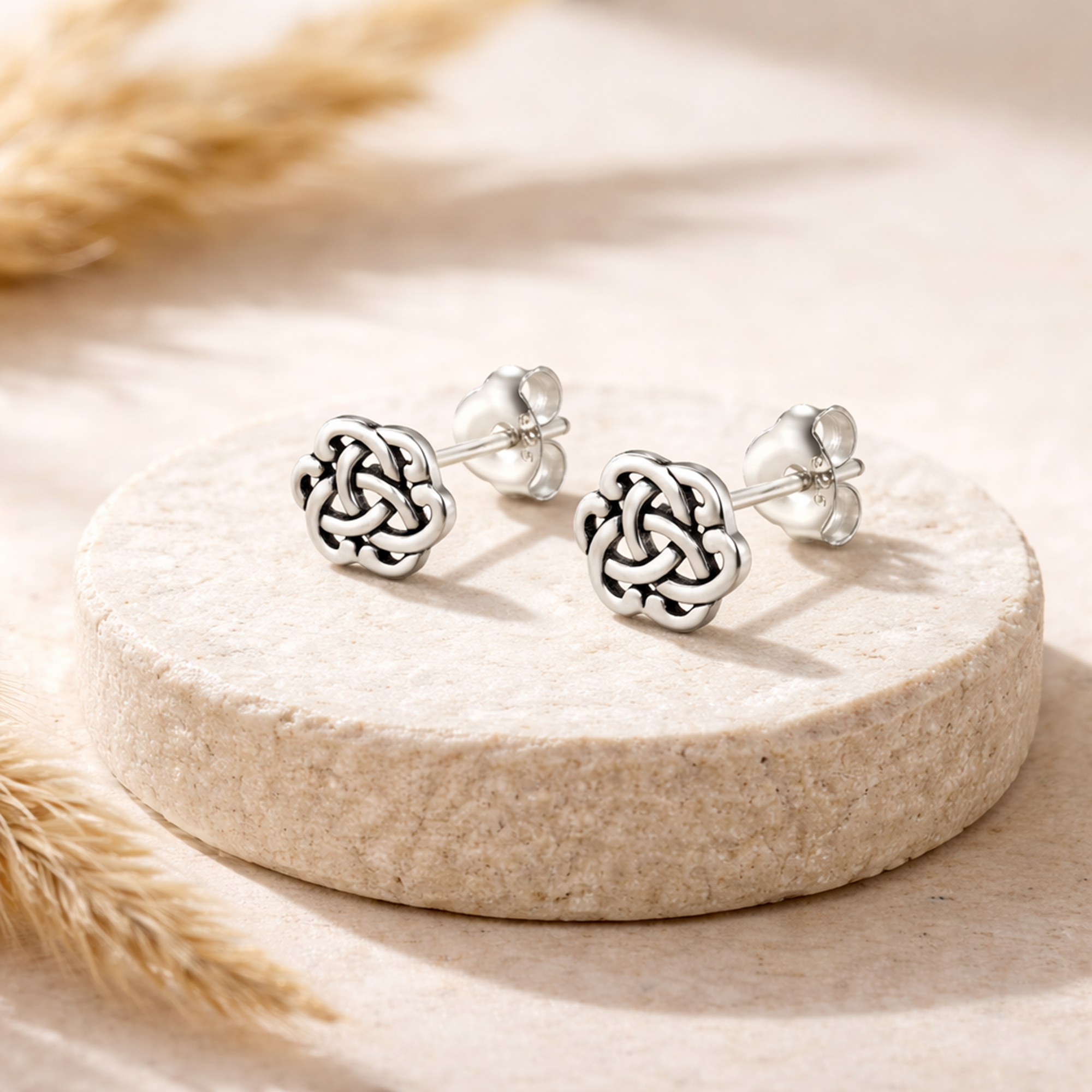 Celtic knots intertwine in an ethereal pattern with this sterling silver earring design. Celtic knots are a form of sacred geometry that symbolizes the interconnection of all things. These earrings have a shiny finish and a push backings.
