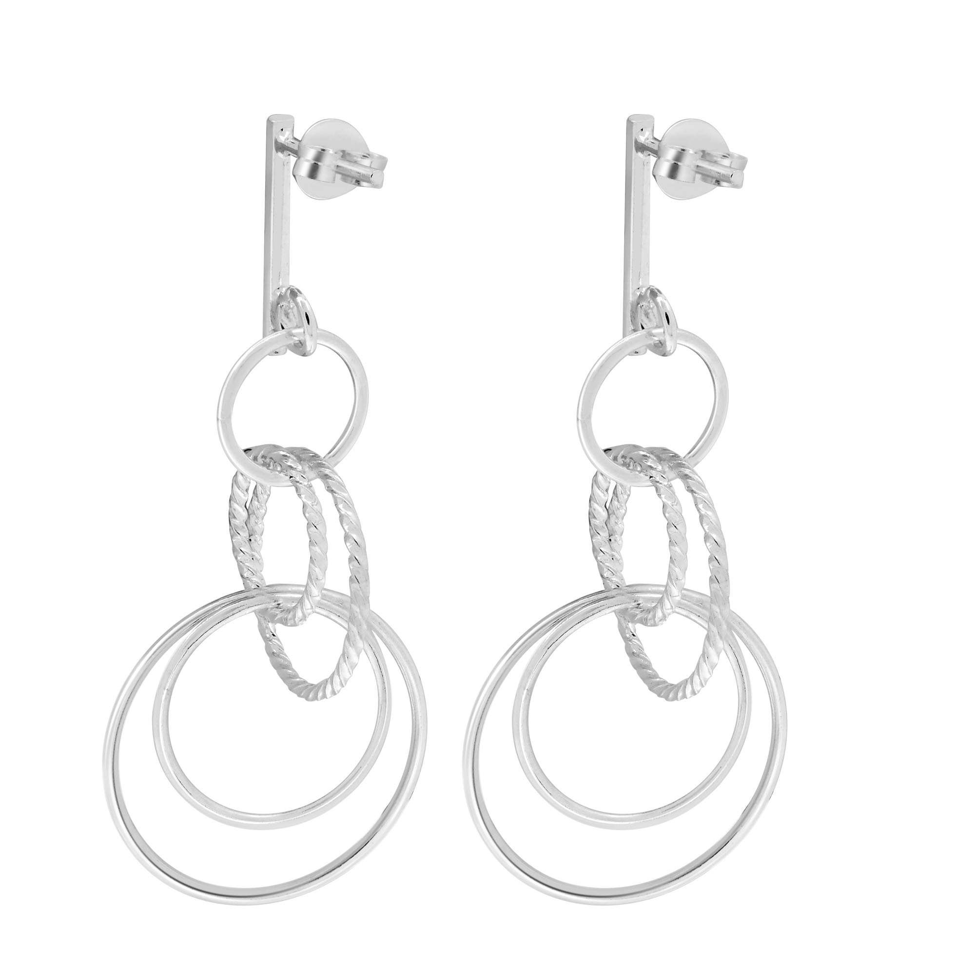 Both unique and trendy, these intricately beautiful earrings are sure to look amazing with any ensemble. Designed by artisan Katsaya of Thailand using fine sterling silver, these dangle earrings feature linked hoops which are inter-locked together. A braided texture is used for the center hoops, which adds a stylish touch. Making for a bold and fashionable accessory that will definitely get noticed on you.
