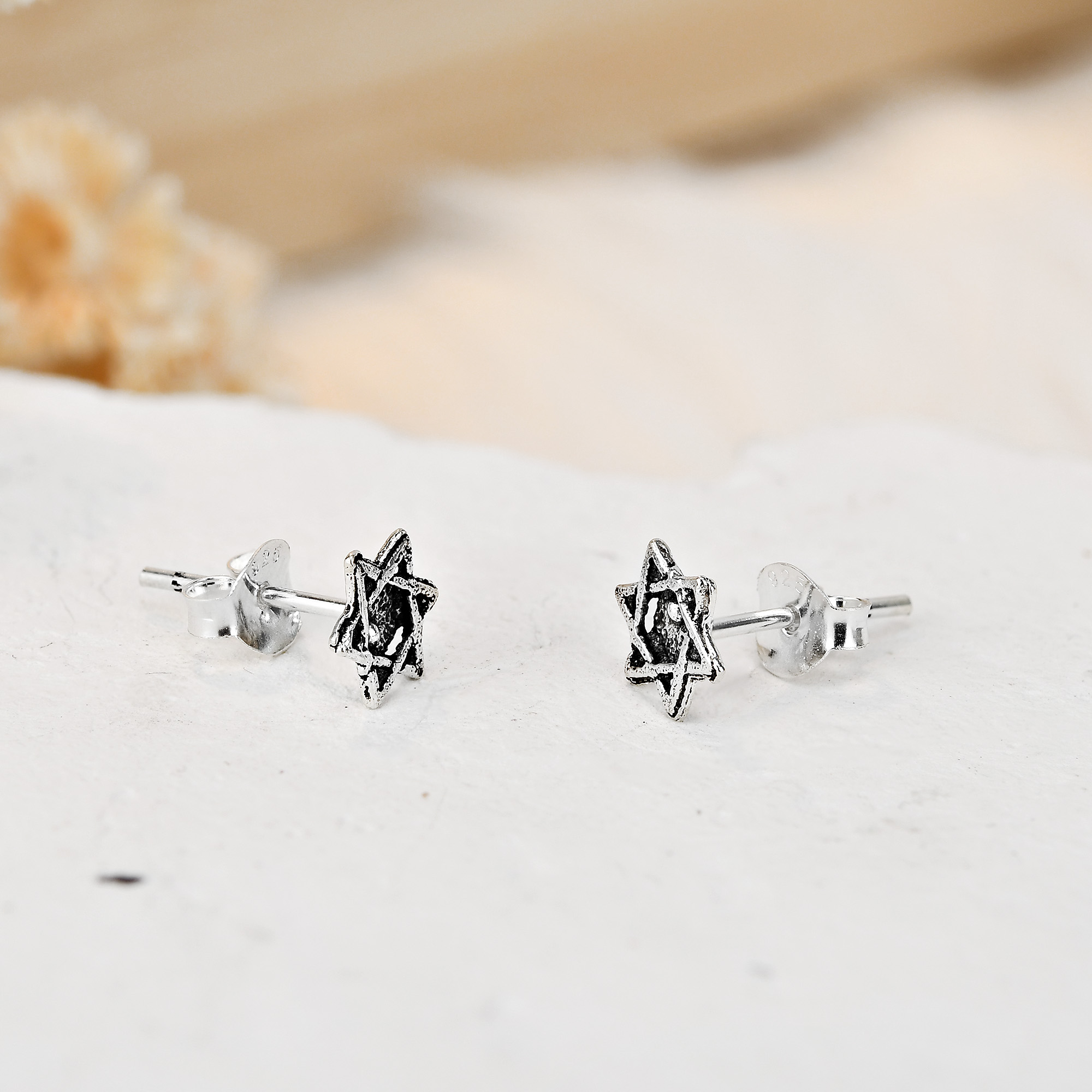 A beautiful expression of faith, these earrings feature a Star of David design handcrafted from sterling silver. This fashion accessory is presented by Thai artisan K’Jai, whose creations are perfect for everyday styling. These stud earrings are simple yet elegant and will look amazing on you.
