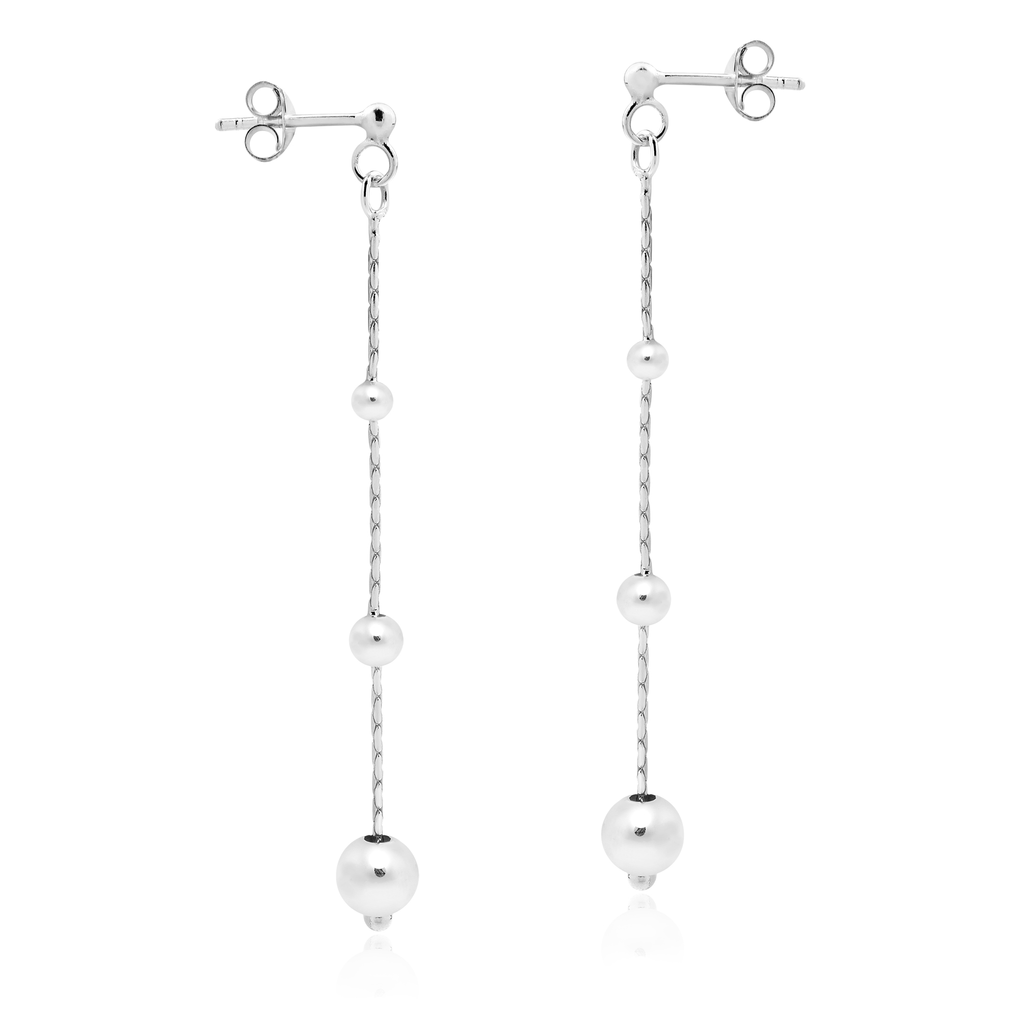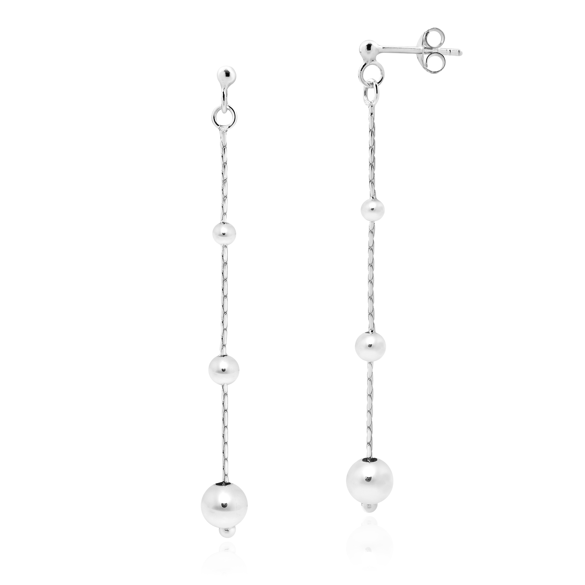 Artisan Somchai of Thailand crafts these modern and stylish earrings using fine sterling silver. This design features a descending trio of sterling silver spheres that are set on a cable chain, which is then set on a post stud earring. You can dress them up or dress them down, either way, these versatile dangle earrings will look stunning with whatever you are wearing.