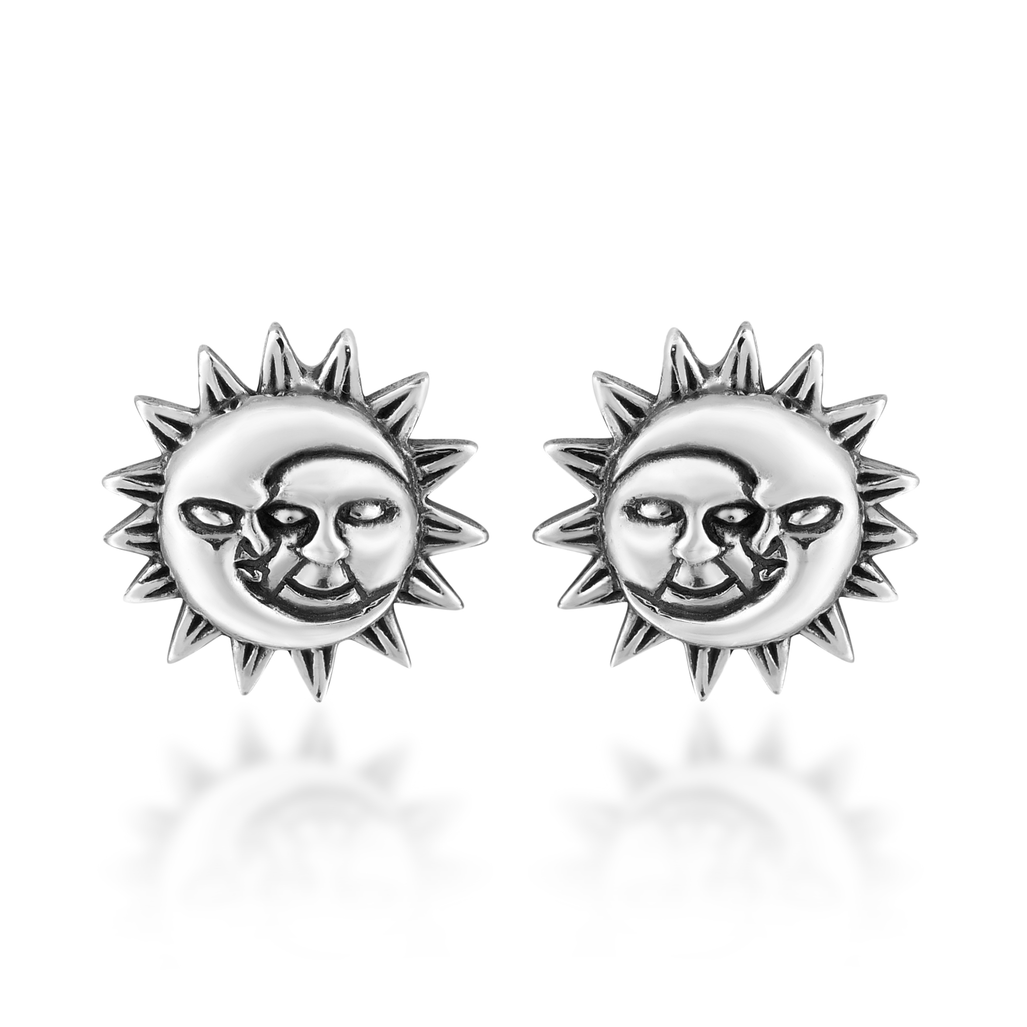 Artisan Pi of Thailand creates a unique and chic fashion accessory with these earrings, which features a crescent moon and sun joined into one as an eclipse. This design symbolizes the opposing forces of day and night, which represents the duality of the universe. Life and death, good and evil are other examples of this idea. Crafted using fine sterling silver, this piece features contrasting dark and polished sterling silver finishes, which help bring out the fine details of the design while showcasing the artisan’s metalworking skill. Making for a stylish and versatile pair of earrings that you can wear with just about anything.