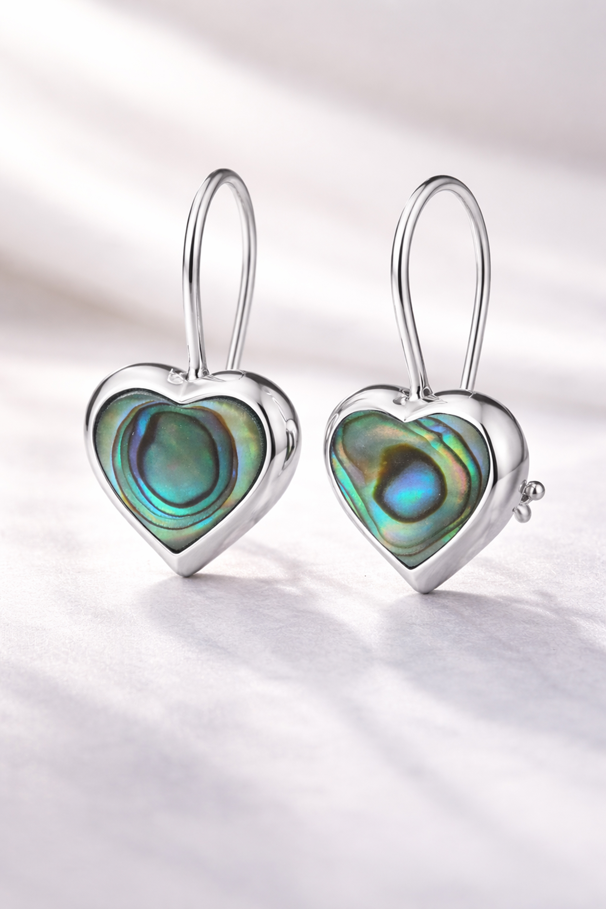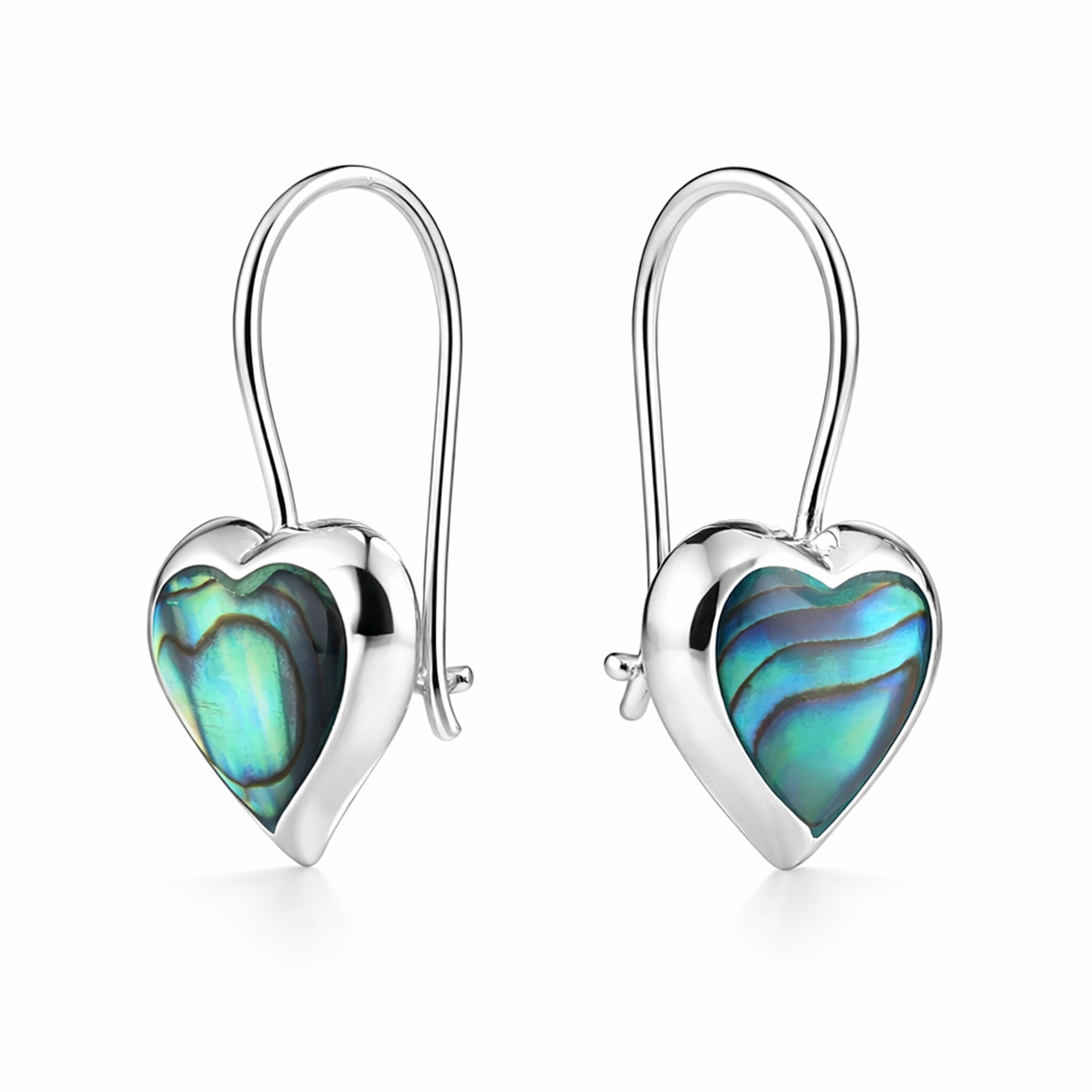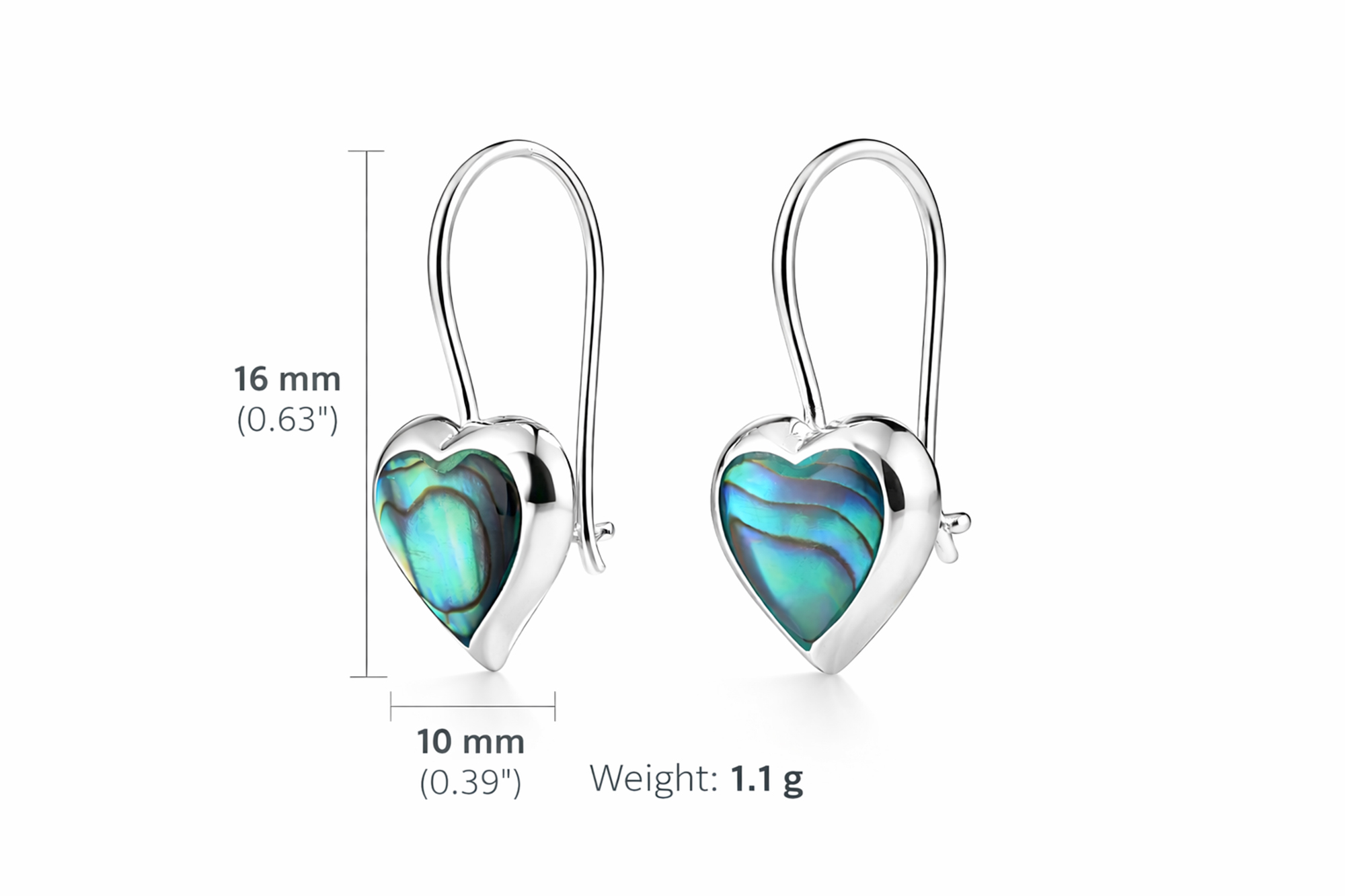 Add a cute and romantic accent to whatever you are wearing with these adorable earrings from artisan Goong of Thailand. For this design, she creates a heart-shaped dangle earring using fine sterling silver. She then adds a vibrant abalone shell inlay, giving this piece a splash of beautiful color. The unique pattern within the iridescent seashell is absolutely stunning. Sure to look amazing with whatever you pair them with, these versatile dangle earrings are finished with locking hooks for easy to wear fashion.