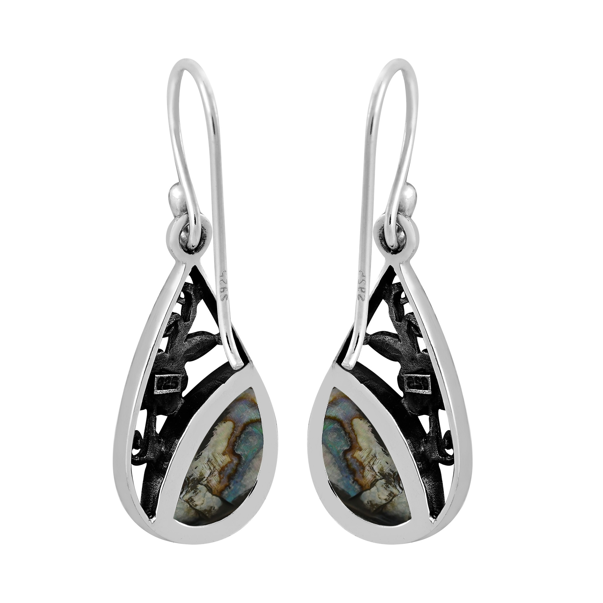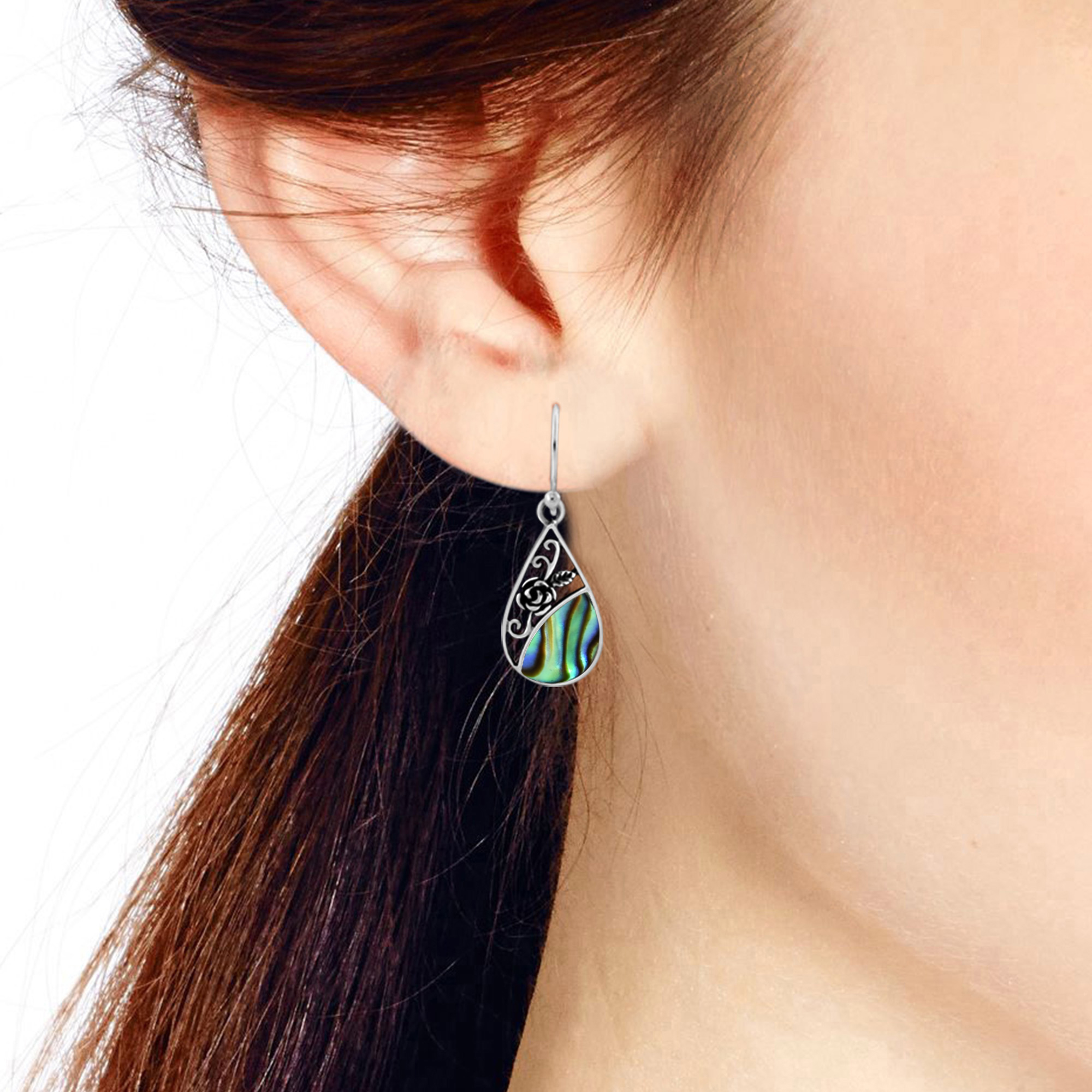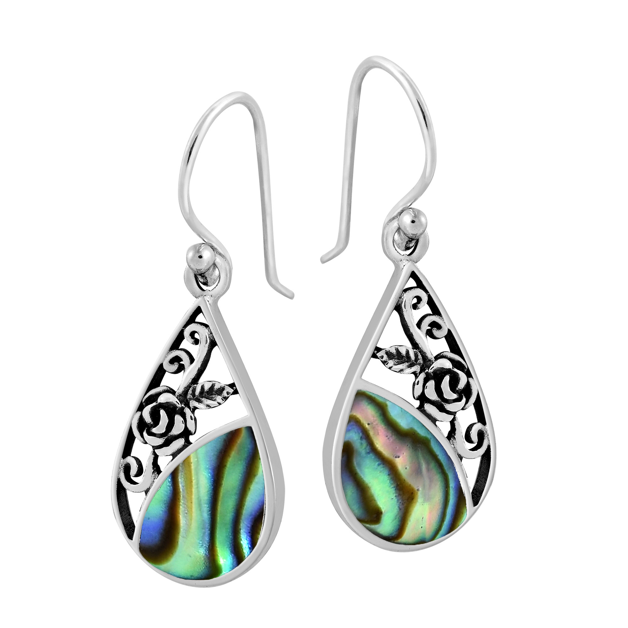 Add a touch of elegance and grace to any ensemble with these gorgeous earrings from artisan Amp of Thailand. For this design, she uses fine sterling silver to form a beautiful teardrop shaped dangle earring and then accents with a delicate rose. A vibrant stone or shell inlay adds a splash of color to these earrings, which feature a timeless style that will always be in fashion. All swinging from sterling silver hooks, these dangle earrings will look stunning with whatever you are wearing. You can dress them up or dress them down, either way, they will never disappoint.