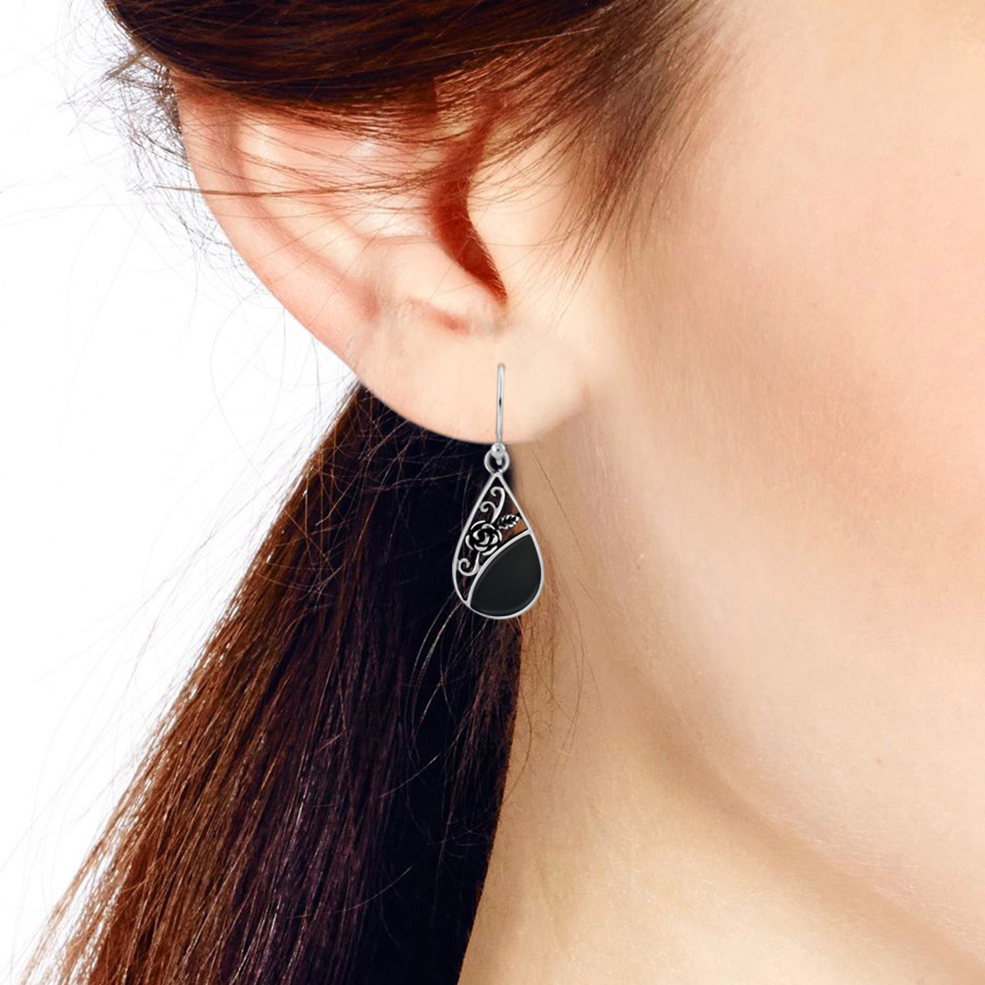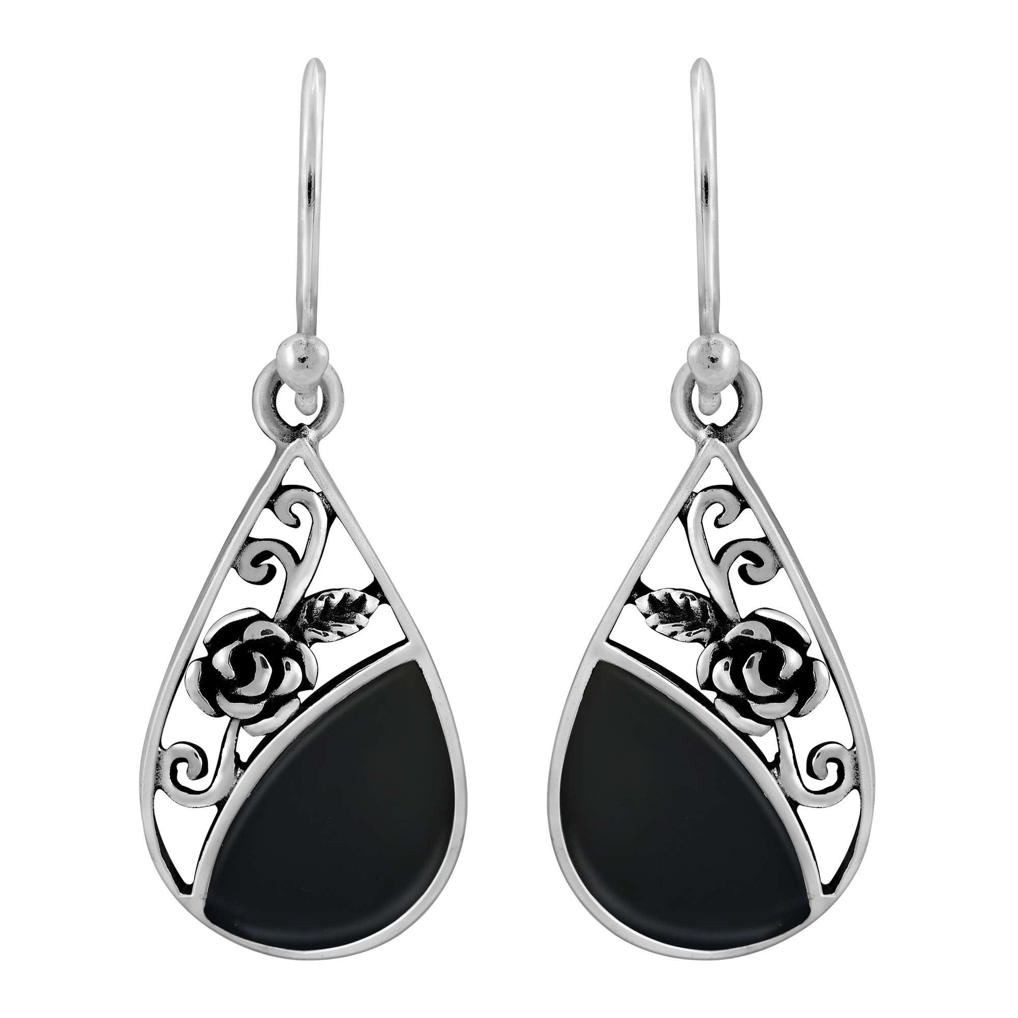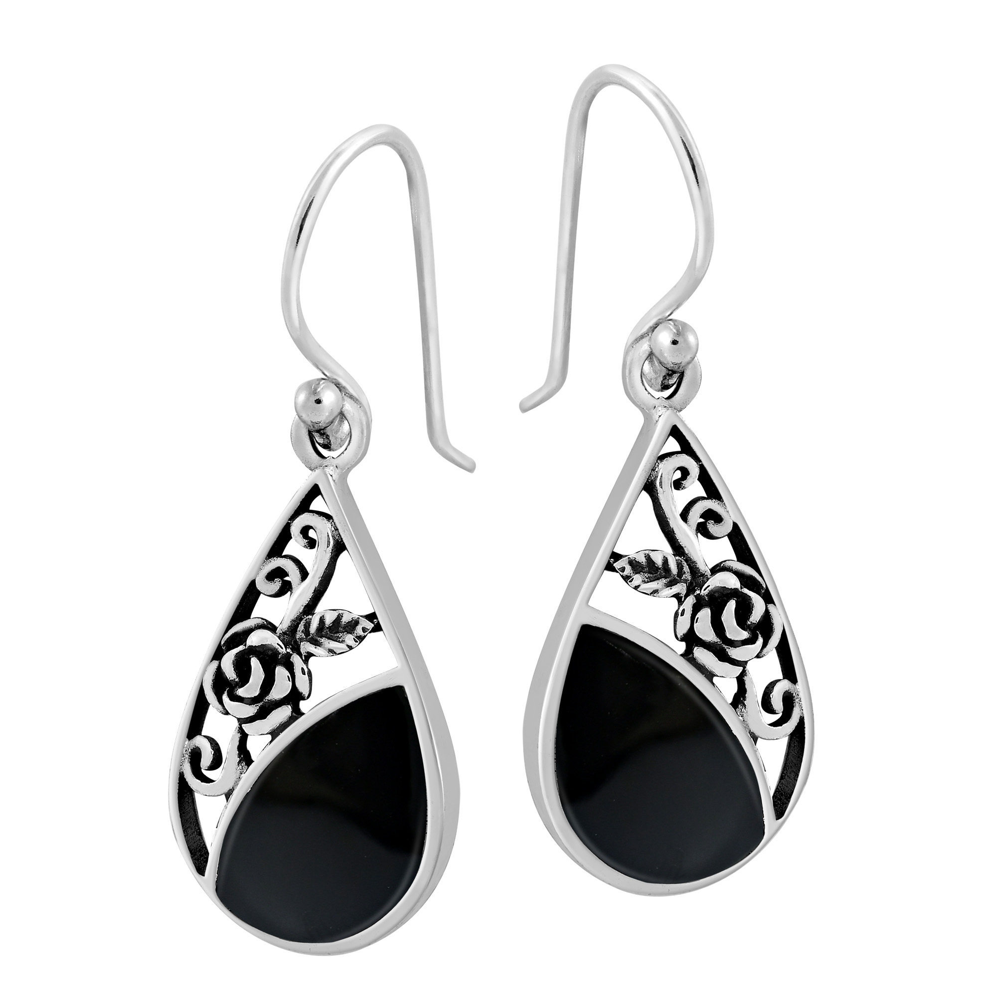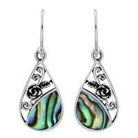 Add a touch of elegance and grace to any ensemble with these gorgeous earrings from artisan Amp of Thailand. For this design, she uses fine sterling silver to form a beautiful teardrop shaped dangle earring and then accents with a delicate rose. A vibrant stone or shell inlay adds a splash of color to these earrings, which feature a timeless style that will always be in fashion. All swinging from sterling silver hooks, these dangle earrings will look stunning with whatever you are wearing. You can dress them up or dress them down, either way, they will never disappoint.