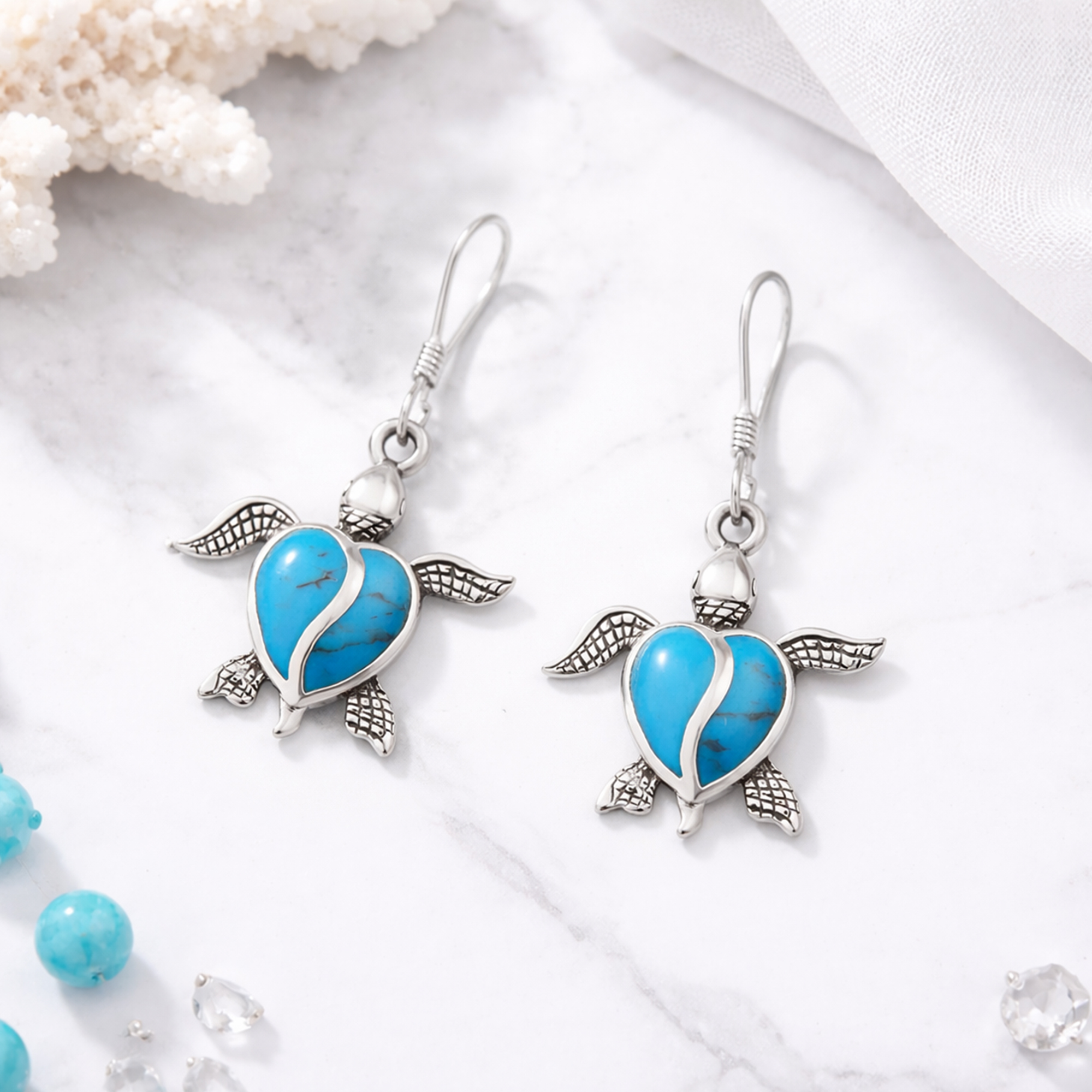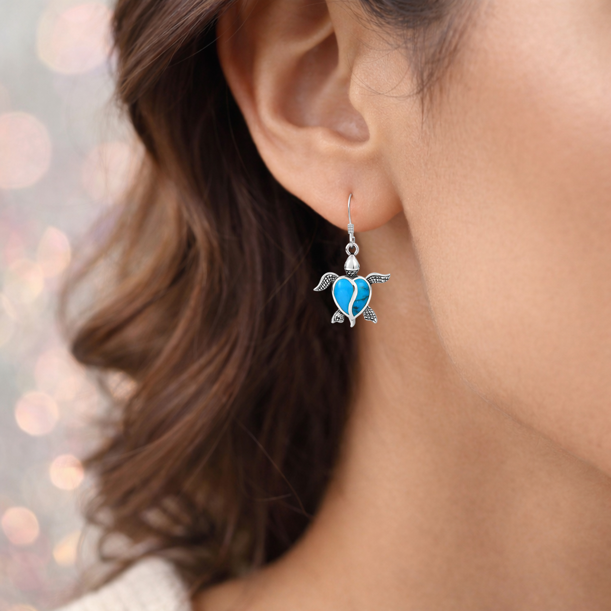 Artisan Yuu from Thailand handcrafted this adorable sterling silver earring set. The earrings feature the sea turtle with a heart shell stone inlay. In many cultures, the sea turtle symbolizes creation, strength, and good fortune. Add this accessory to your outfit and you'll never feel far from the ocean.