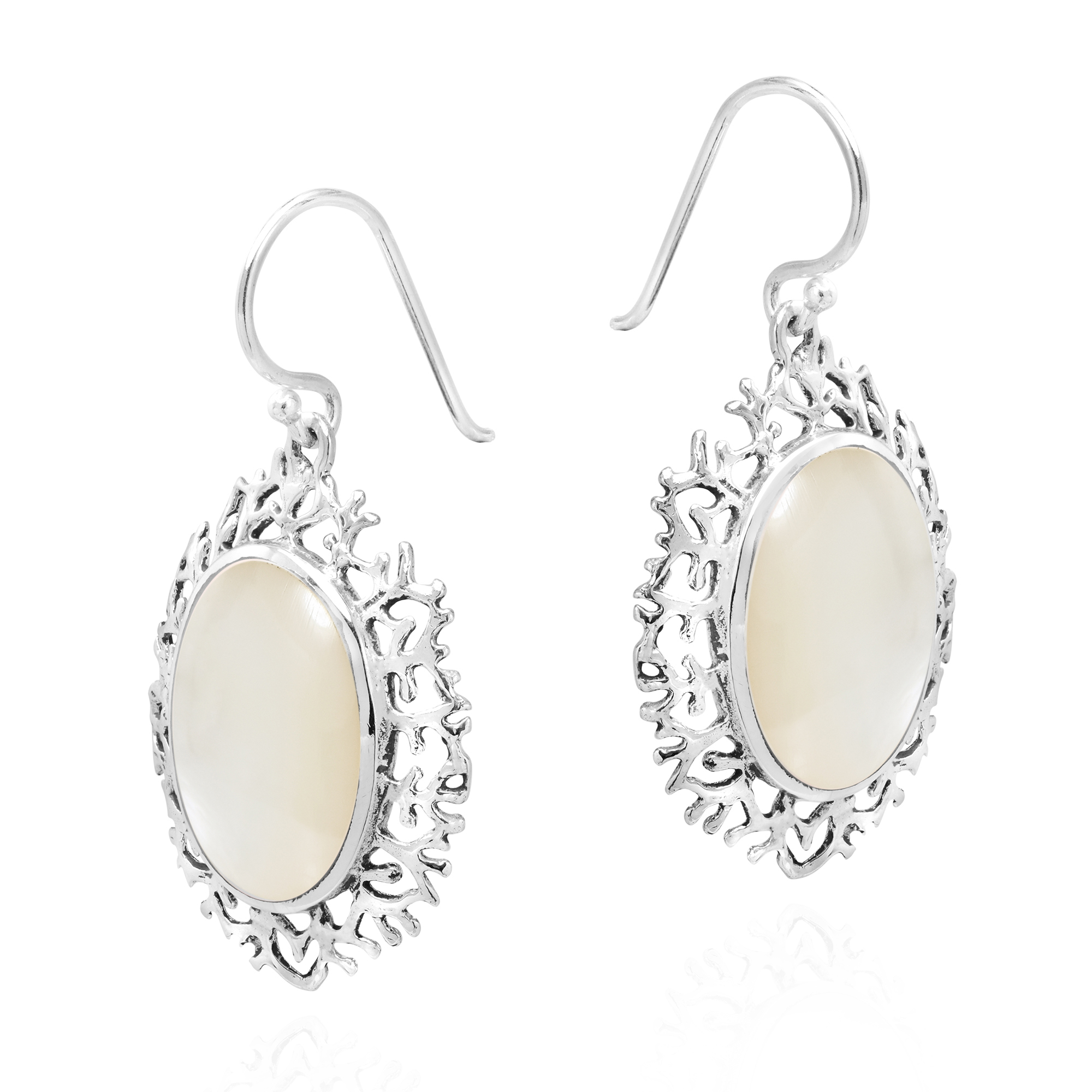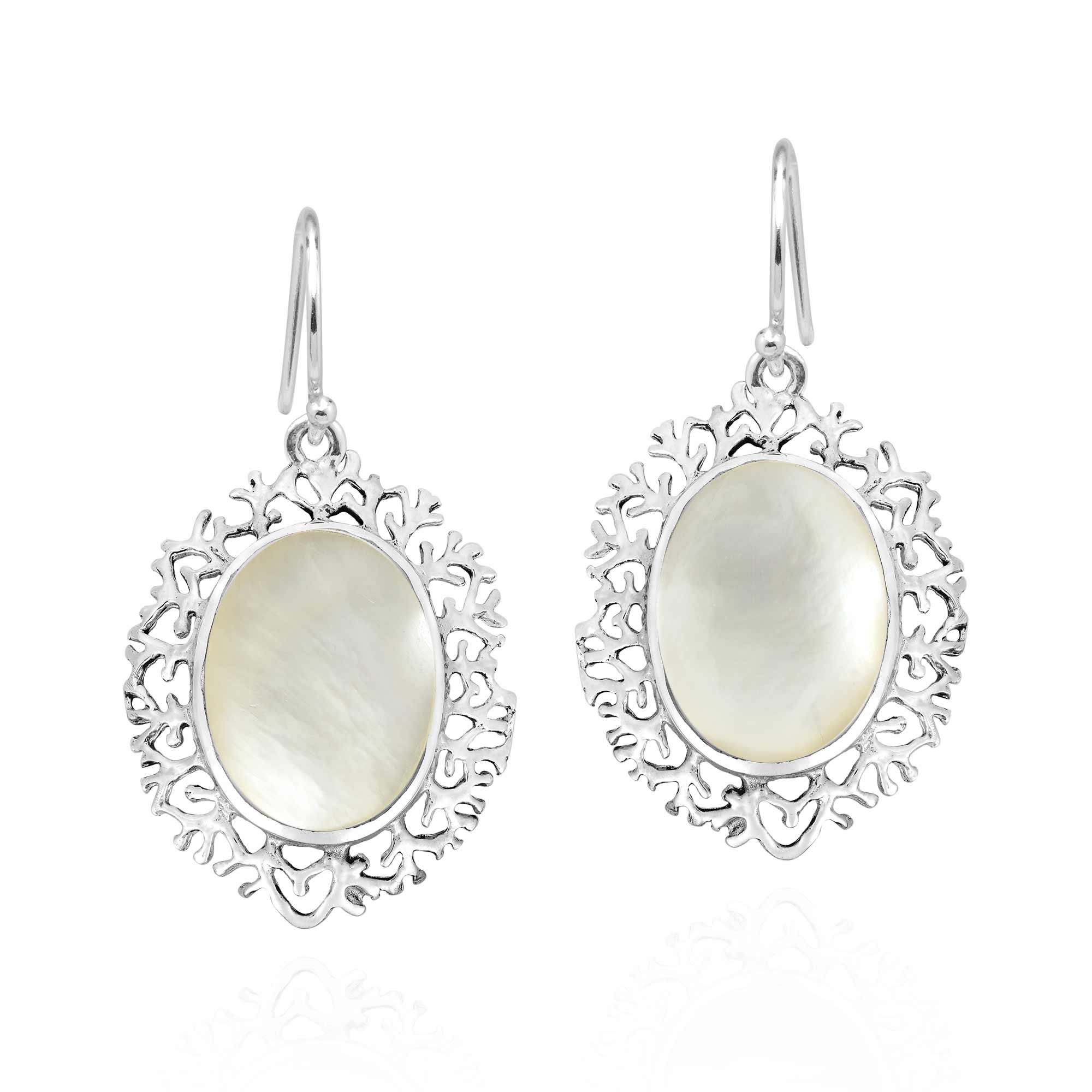 Add a vintage touch of elegance to any outfit with these amazing dangle earrings from Thai artisan Watsud. Inspired by the jewelry of the Victorian Era, these earrings give off a sophisticated vibe that is sure to look amazing on you. Featuring an oval shaped stone or shell inlay set on a base of fine sterling silver, these earrings are then surrounded with a delicate border. The perfect fashion accessory for any occasion, these gorgeous earrings will make a wonderful addition to any jewelry collection.