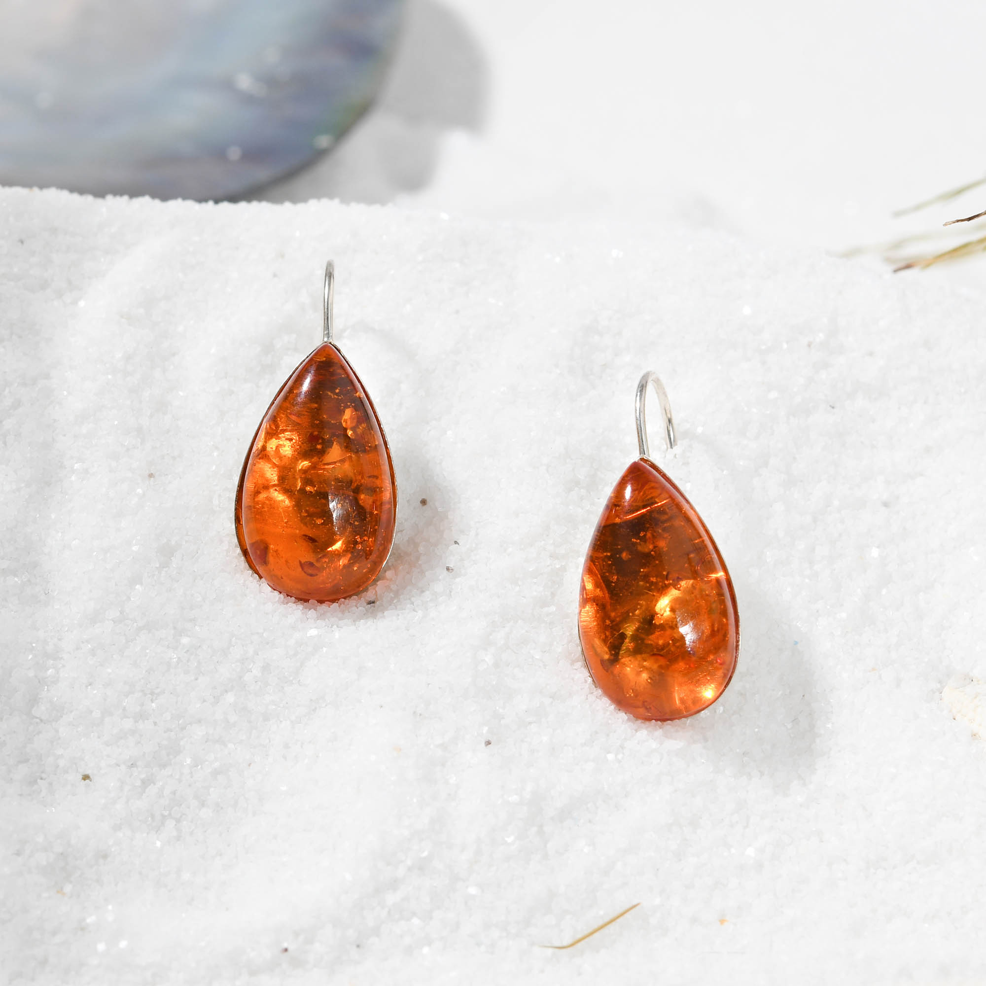 Make a Bohemian and vintage inspired fashion statement with these gorgeous earrings from artisan Goong of Thailand. For this design, she sets a vibrant Amber stones on bases of sterling silver. These dangle earrings are shaped into elegant noticeable teardrops, which is a timeless design that will always be in fashion. All swinging from sterling silver jewelry hooks, these unique and chic earrings will make the perfect addition to your style wardrobe.