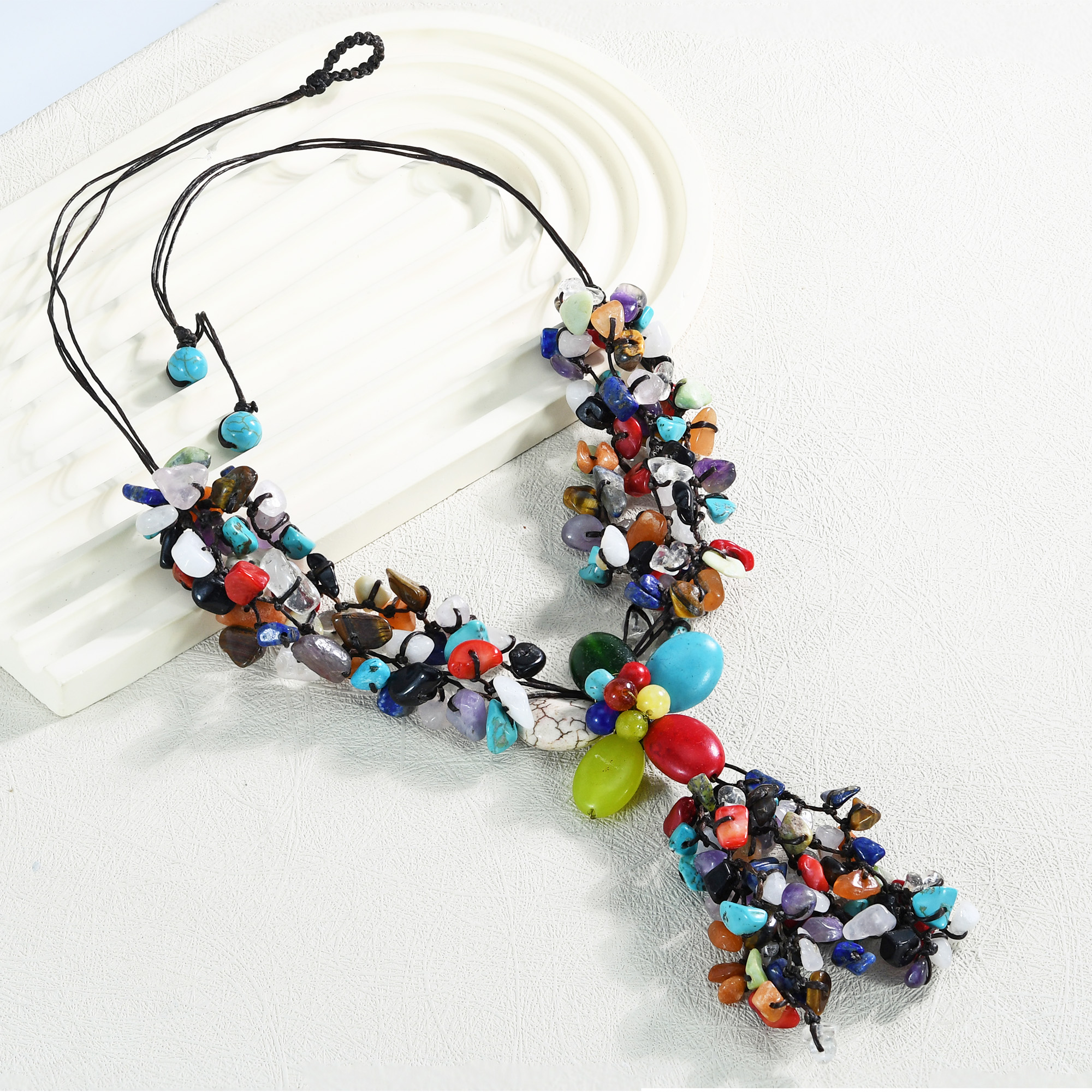 | Material: | Reconstructed Turquoise, Red Coral, Amethyst, Cotton Wax Rope |