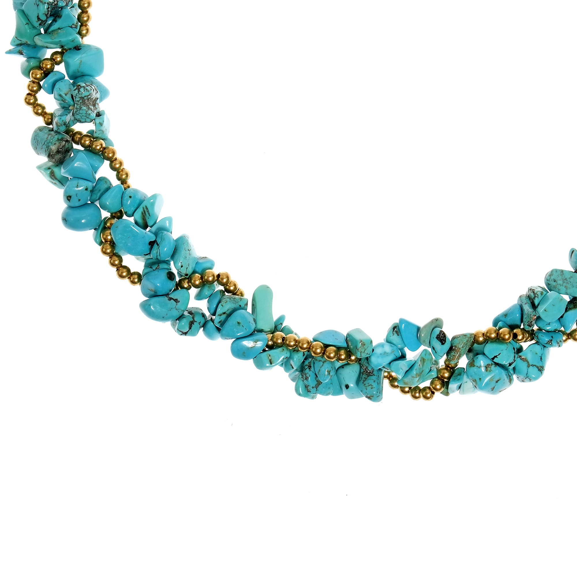 Brass Twist Wrap Turquoise Handmade Boho Necklace