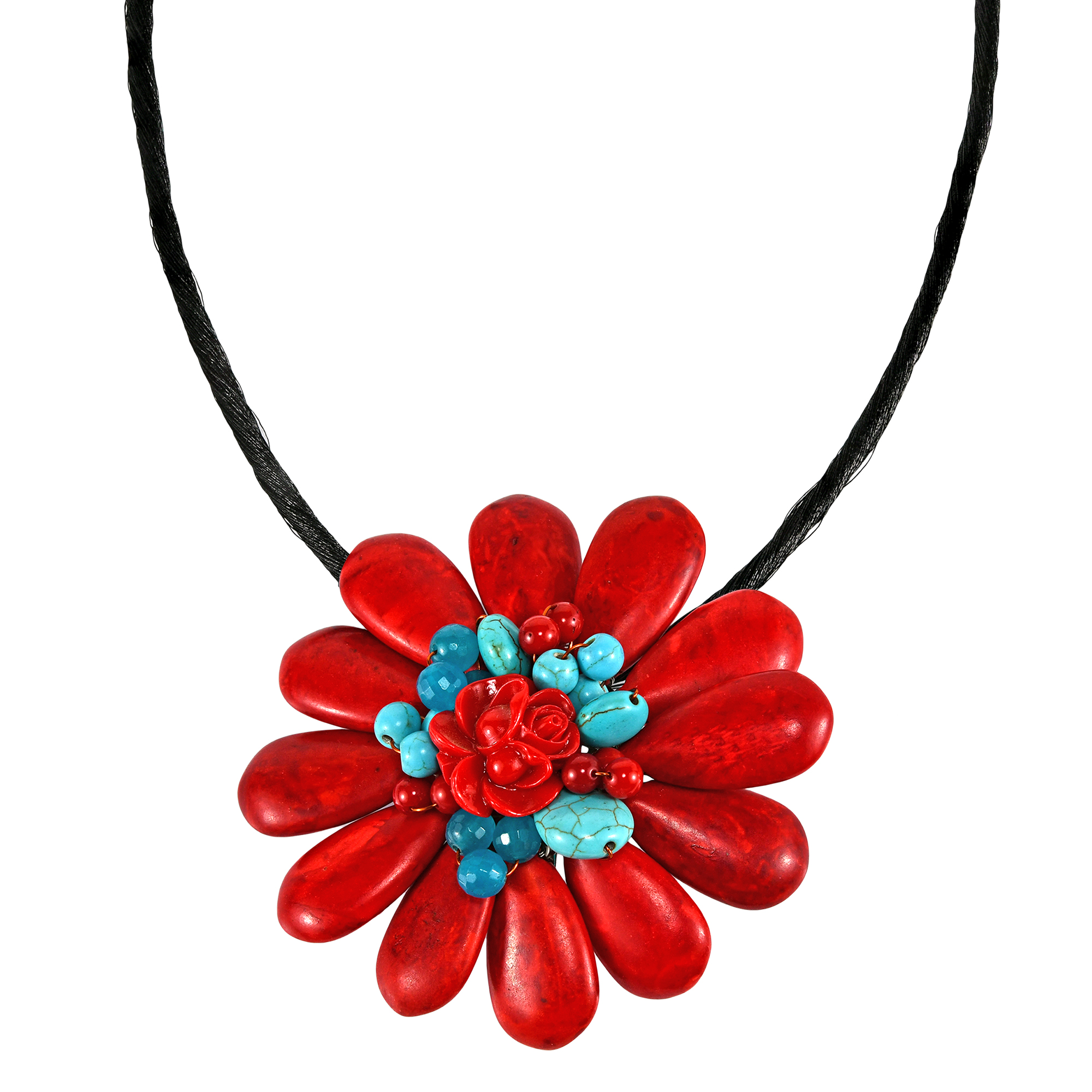 Artisan Lai transforms natural stones into this exotic floral motif necklace from Thailand. A symbol of love and purity, a daisy flower centers the design of this necklace.