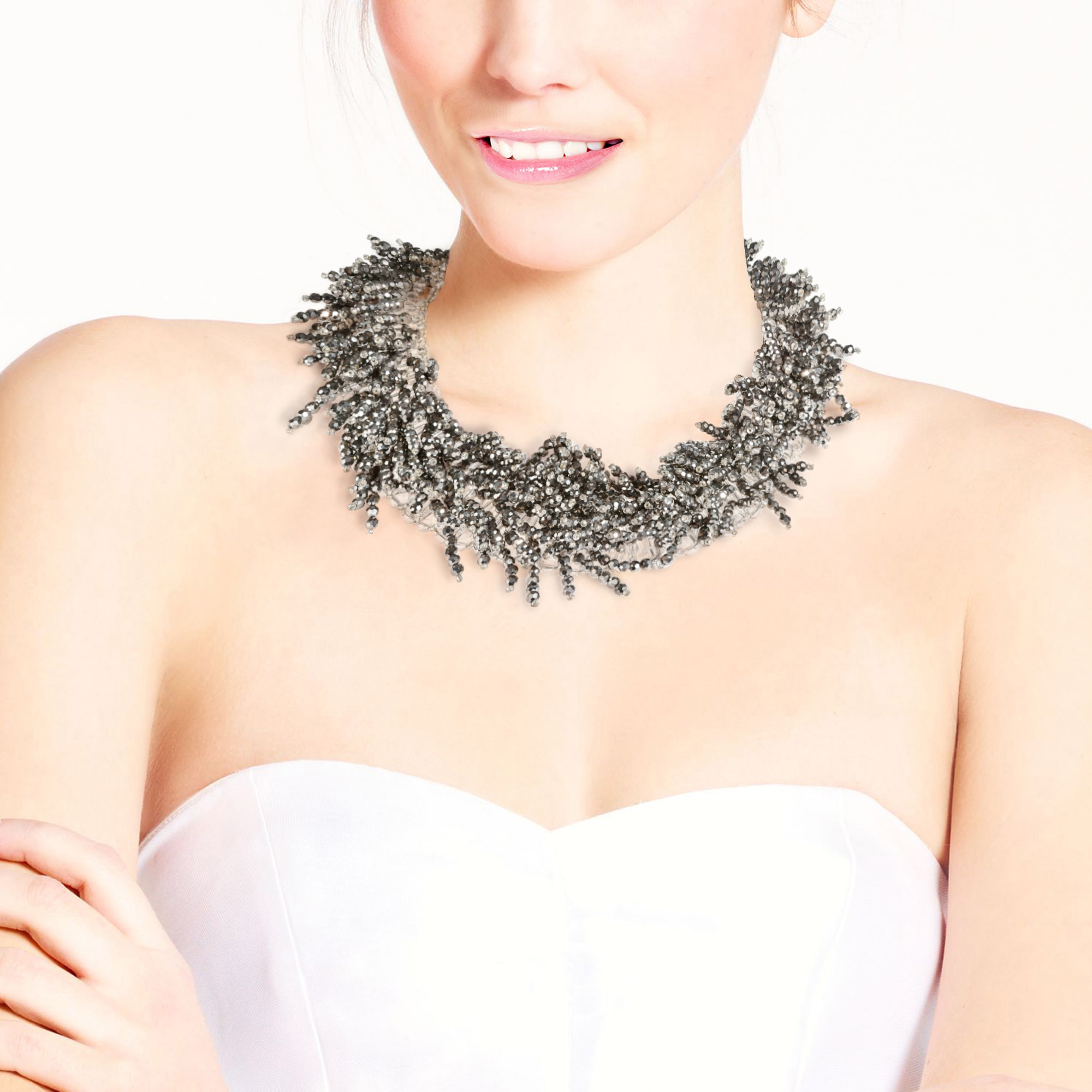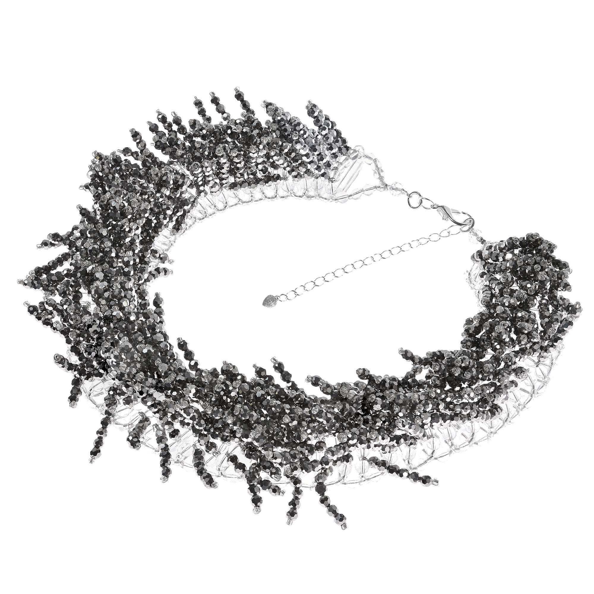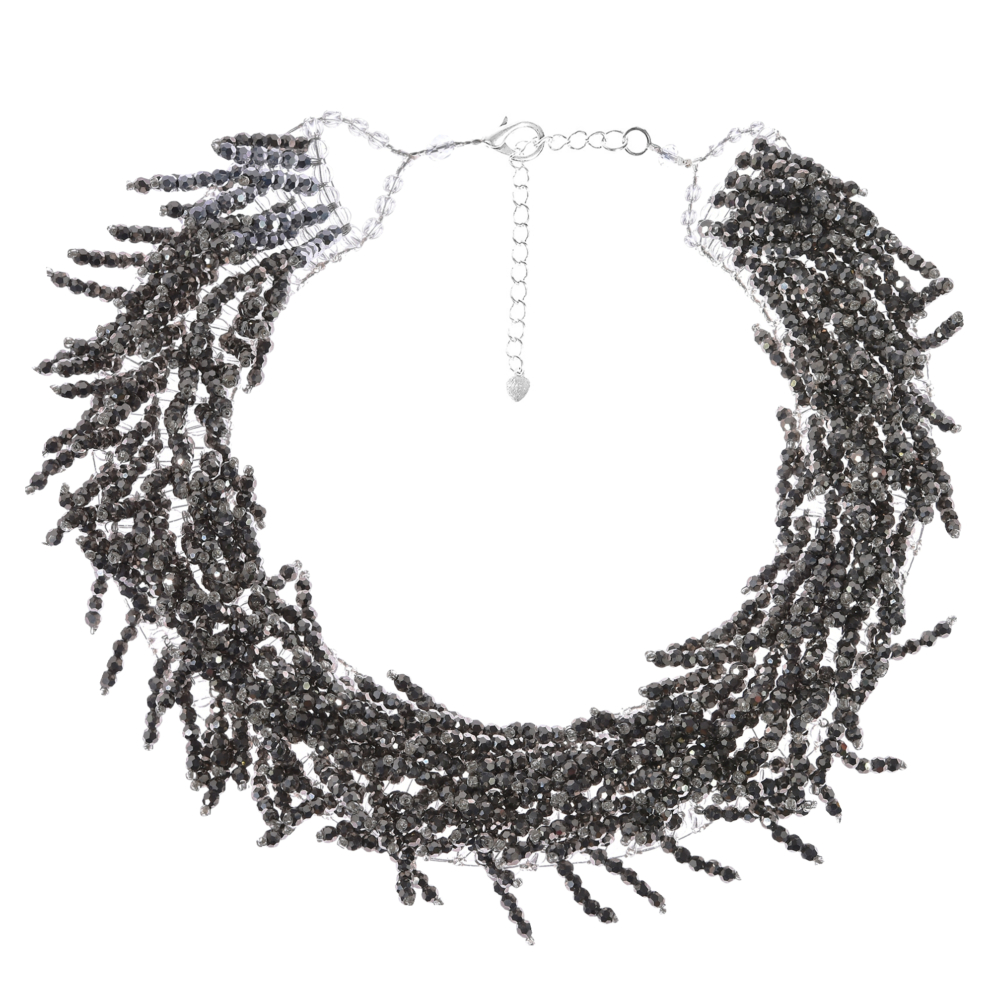 Sparkling Silver Crystal Beaded Fringe Statement Collar Necklace