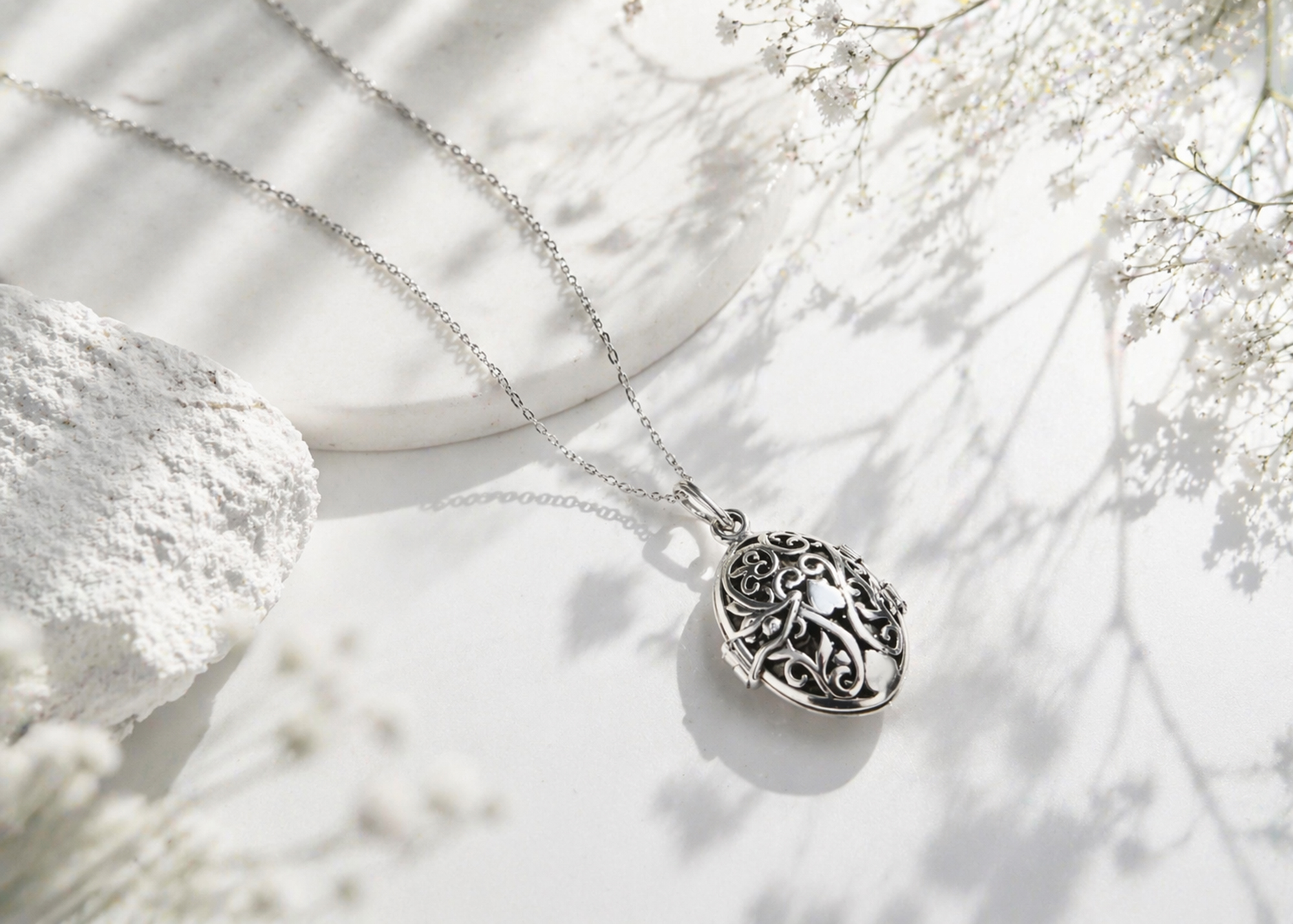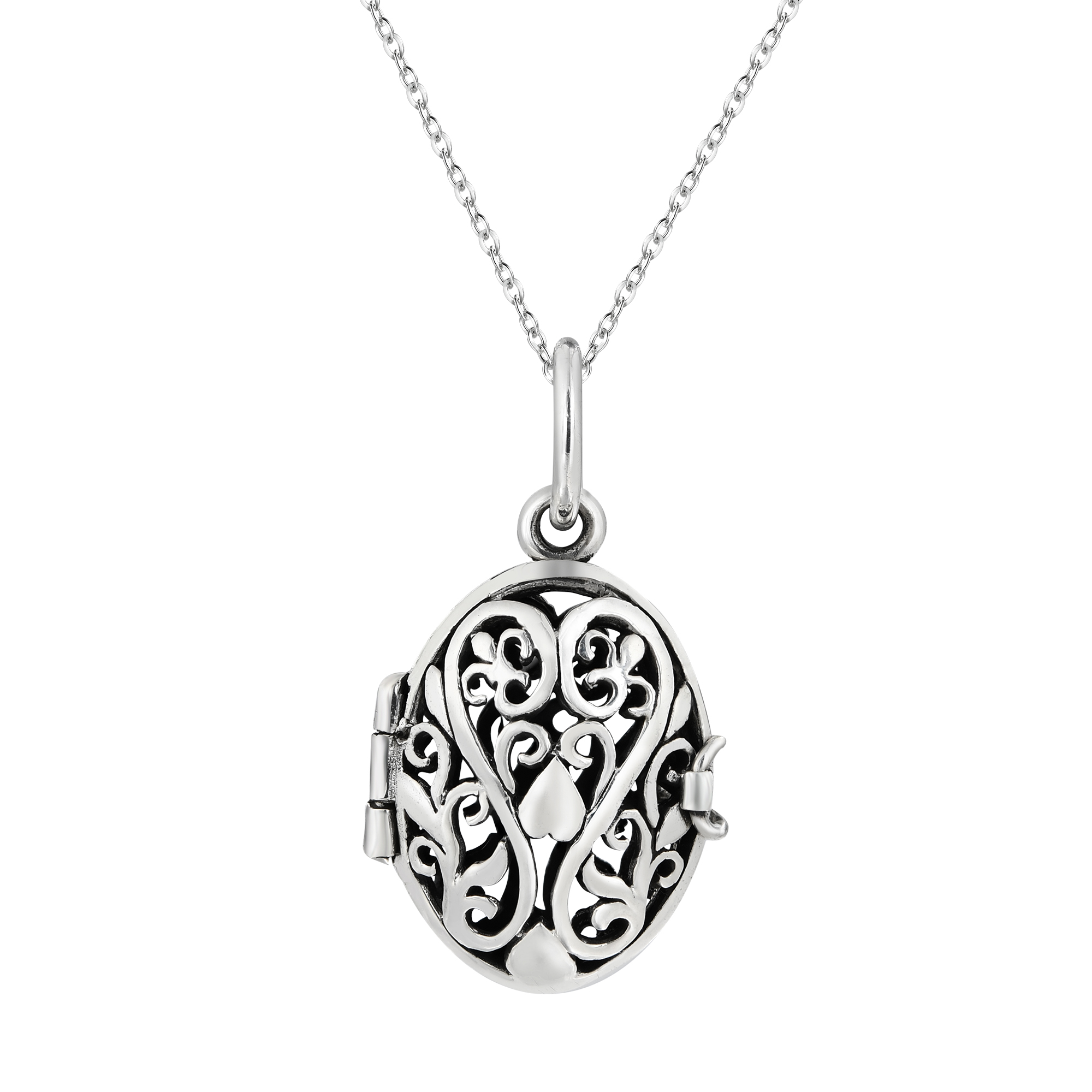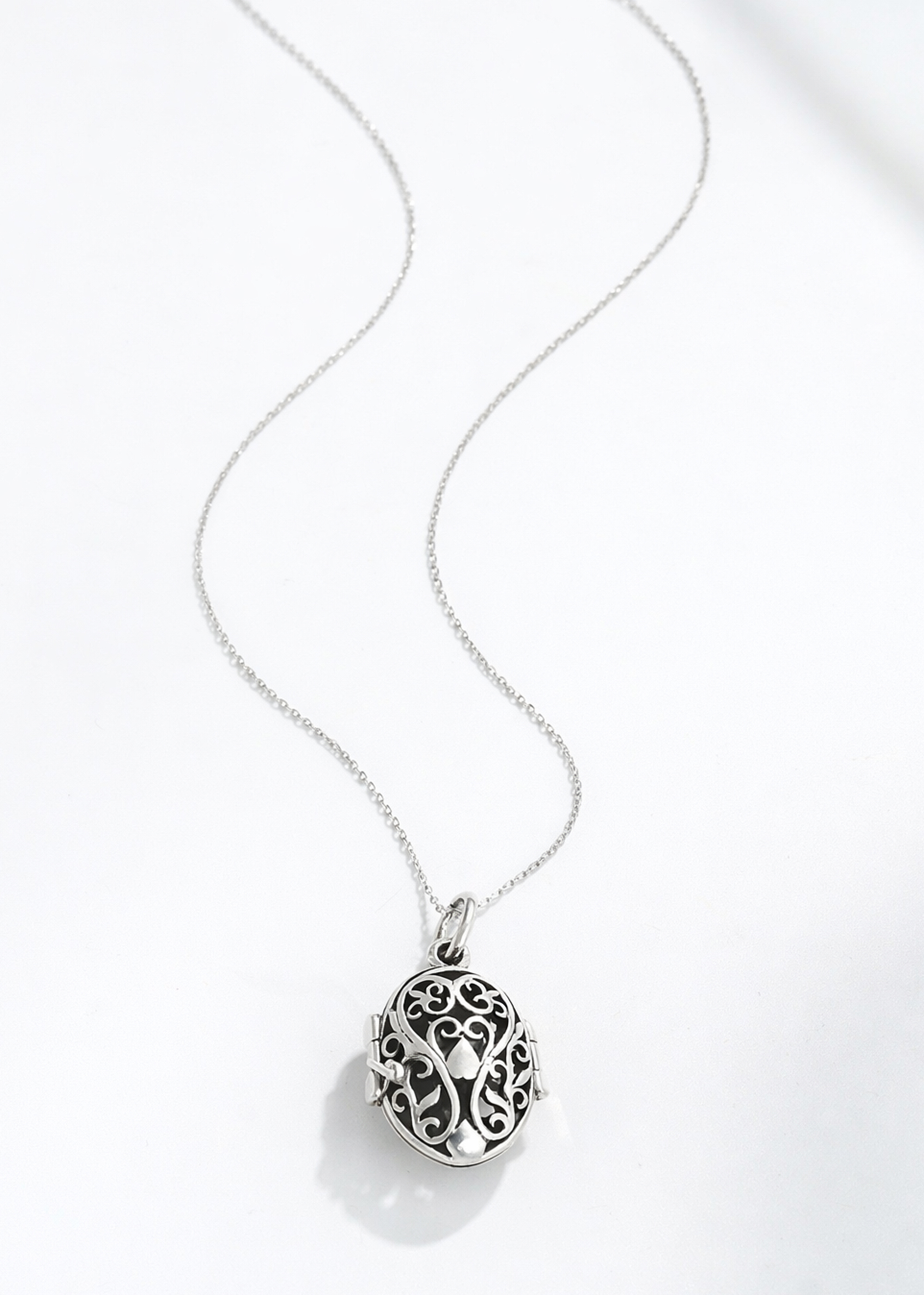 This elegant necklace is the beautiful creation of Thai artisan Sai, who transforms sterling silver into a truly elegant locket. Decorated with filigree swirls and featuring a romantic heart motif, this pendant is the perfect way to keep a precious keepsake close to your heart. The pendant is set on a sterling silver cable chain that measures 18 inches long and is finished off with a spring ring closure. Both beautiful and stylish, the amazing necklace will look great with whatever you pair it with.