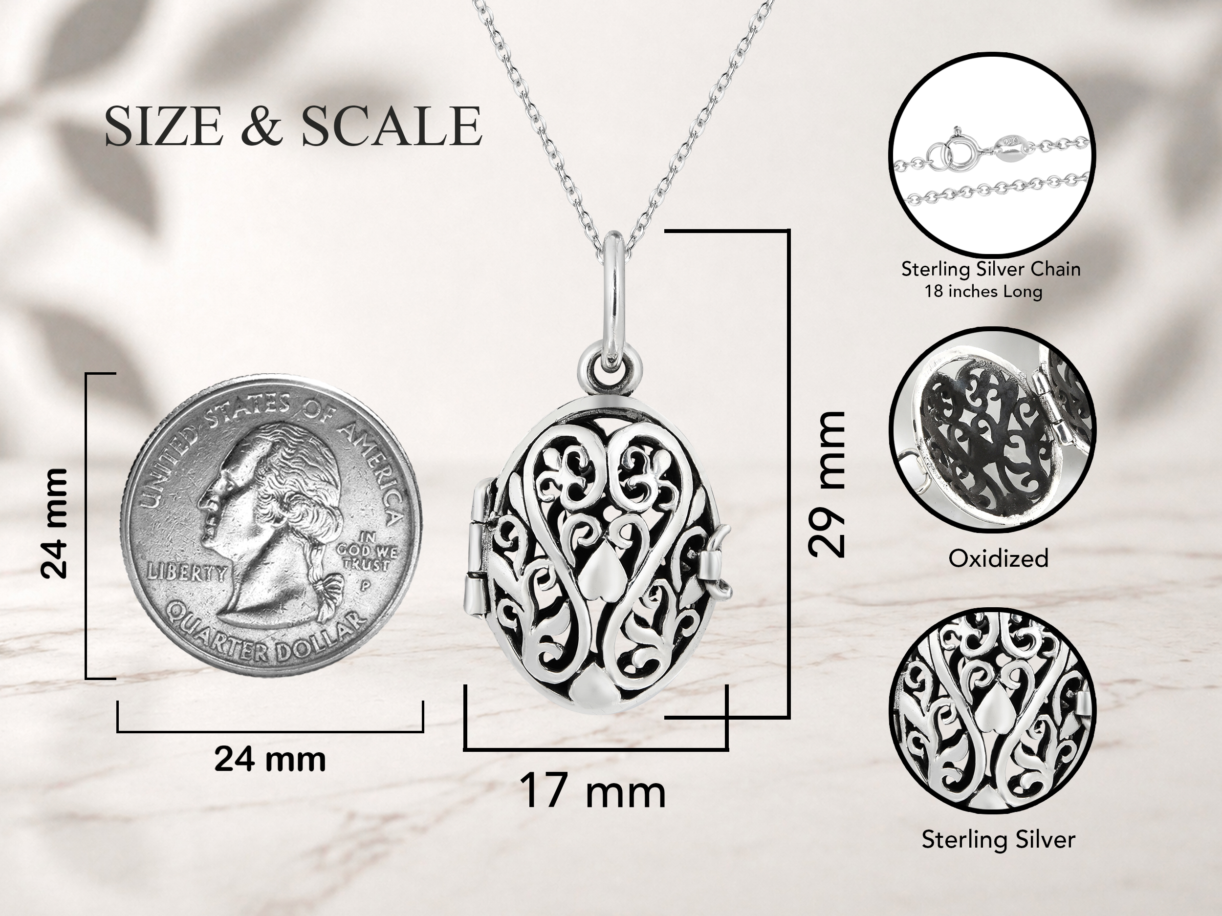 | Necklace length: | 18 inches long, 0.75 mm thick |