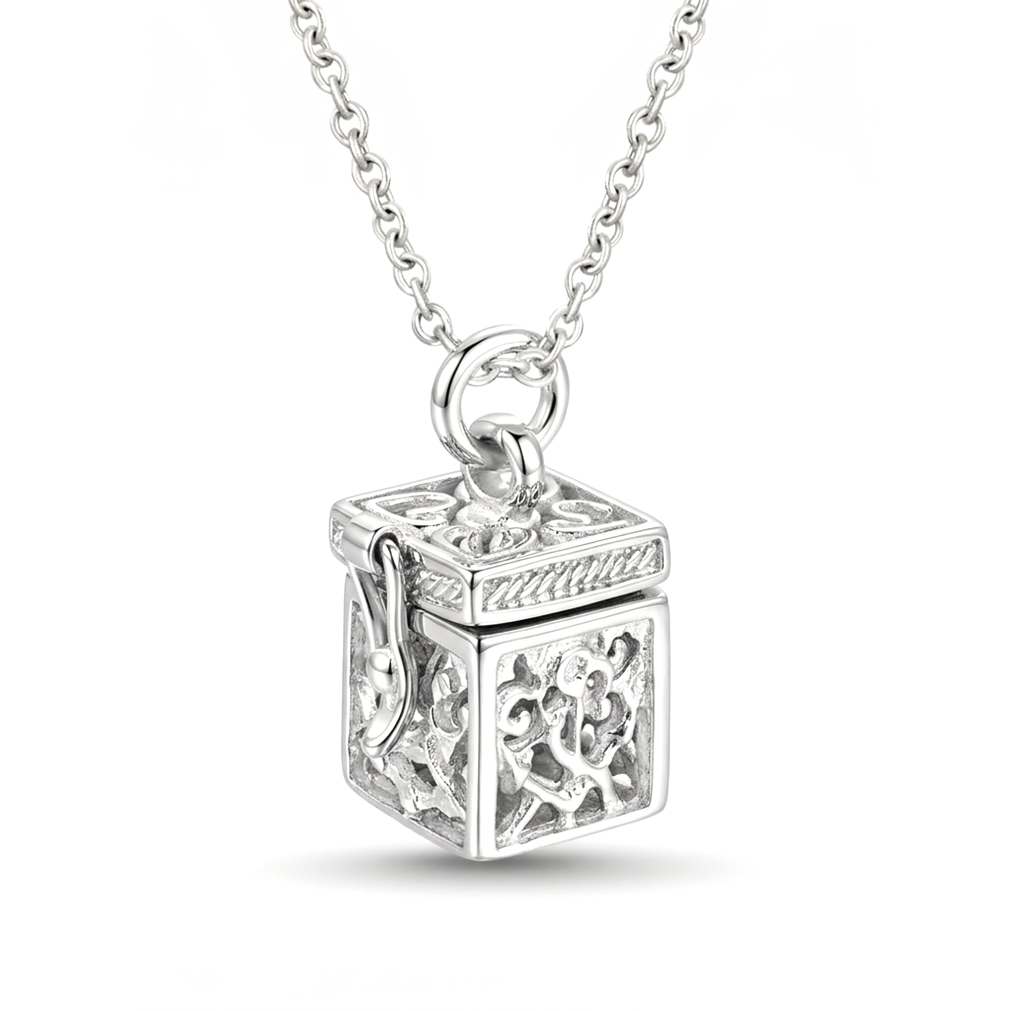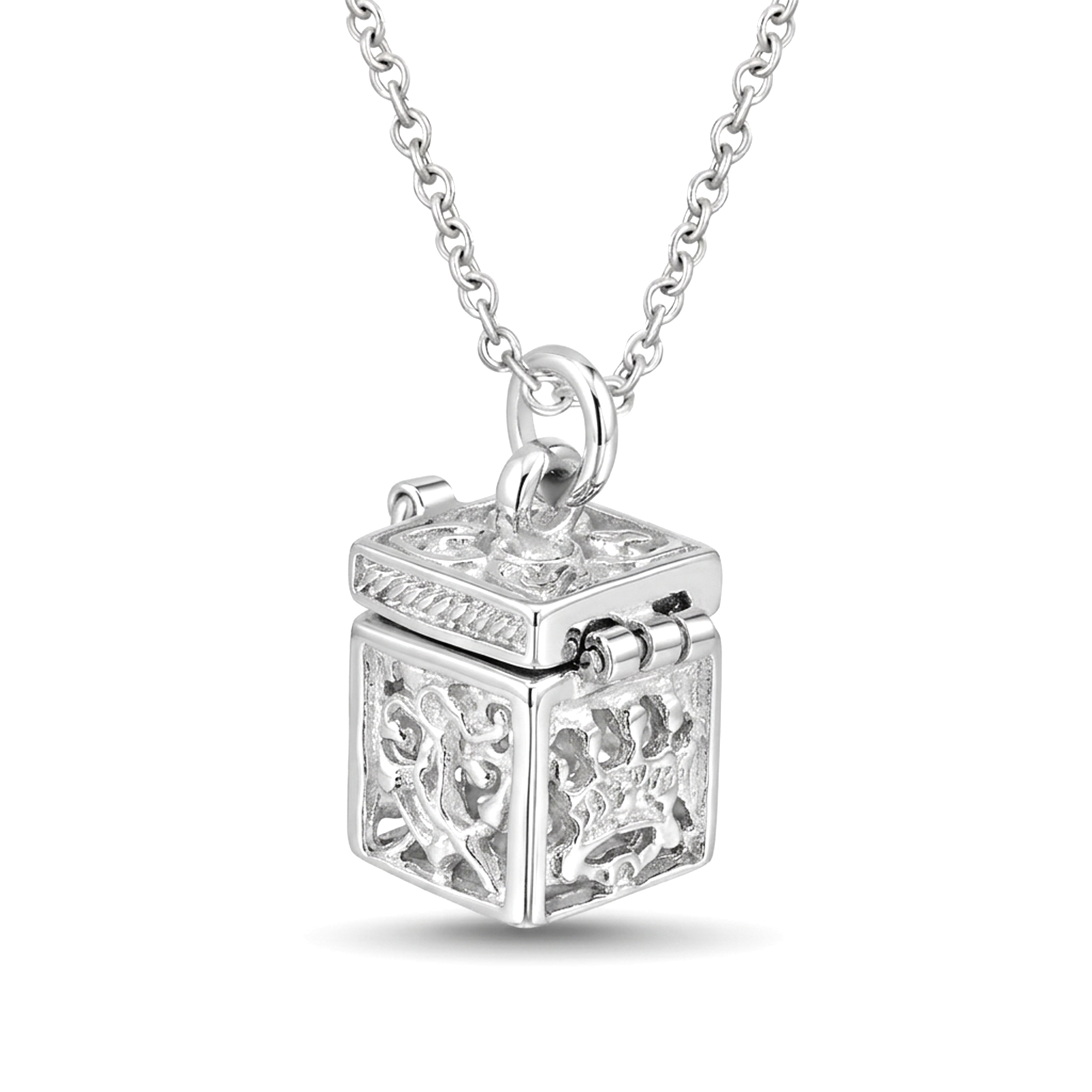 The prayer box, sometimes called a wish box, it is a unique pendant which can hold your payers, dreams and wishes close to your heart. These boxes were traditionally used to hold a prayer written down on a piece of paper or a precious or sentimental keepsake. In keeping with this tradition, this handcrafted prayer box from Thai artisan Watsud will add a functional touch of style to any outfit. This pendant is paired with an 18-inch sterling silver cable chain while contrasting sterling silver finishes bring out the amazing detail of the design. A truly amazing fashion accessory, this necklace will make a wonderful addition to any jewelry collection.