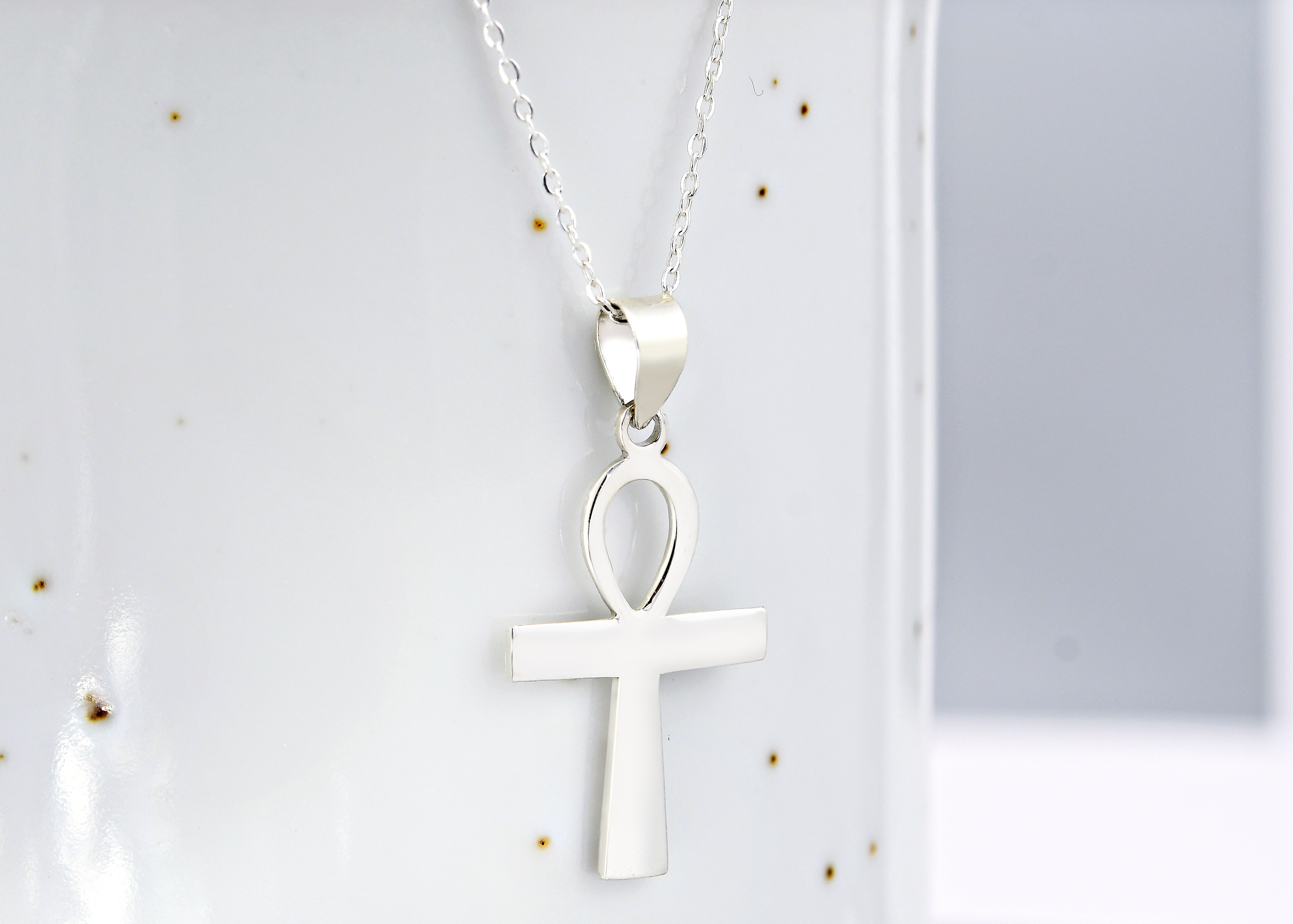 This simple and symbolic necklace features an Ankh pendant that is beautifully crafted from fine sterling silver. The ankh is an ancient hieroglyph found throughout Egypt that symbolized eternal life. It was said that the Egyptian Gods bestowed the afterlife to the Pharaohs by giving them the ankh. Making for a beautiful necklace from artisan Jai, this pendant is set on a sterling silver cable chain that measures 18 inches long. An ancient vibe statement that is casual yet chic and can be paired with any outfit seeking to add a spiritual flair.