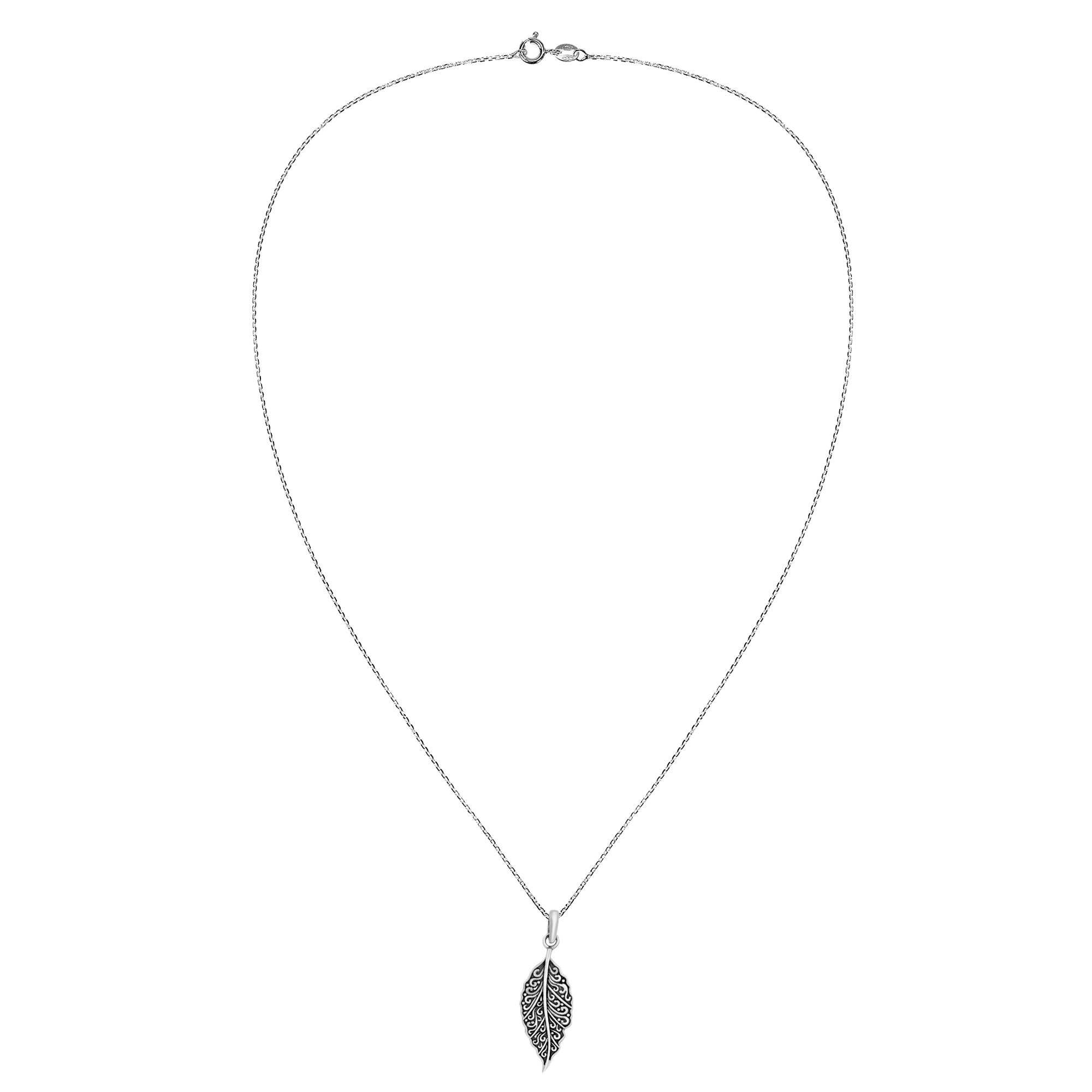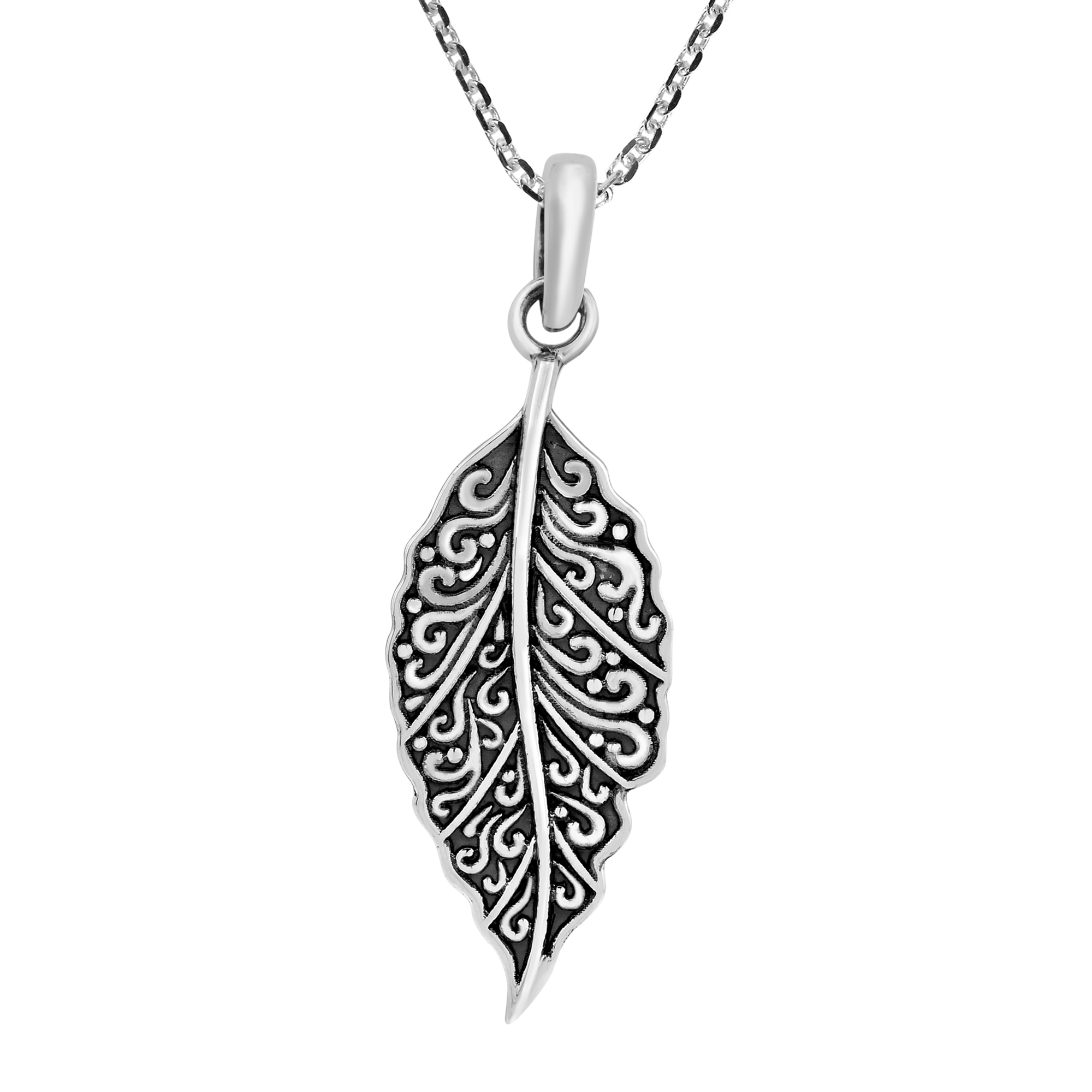 A leaf starting its life on a tree portrays the meaningful symbol of new growth and renewal. This has inspired artisan Pi of Thailand to create this intricately beautiful necklace featuring a leaf accented with gorgeous swirls. Contrasting dark and shiny sterling silver finishes help define all the details while showcasing the artisan’s metalworking skill. Making for a trendy fashion accessory that is perfect for any occasion, this versatile necklace is sure to add an aura of elegance to any outfit.
