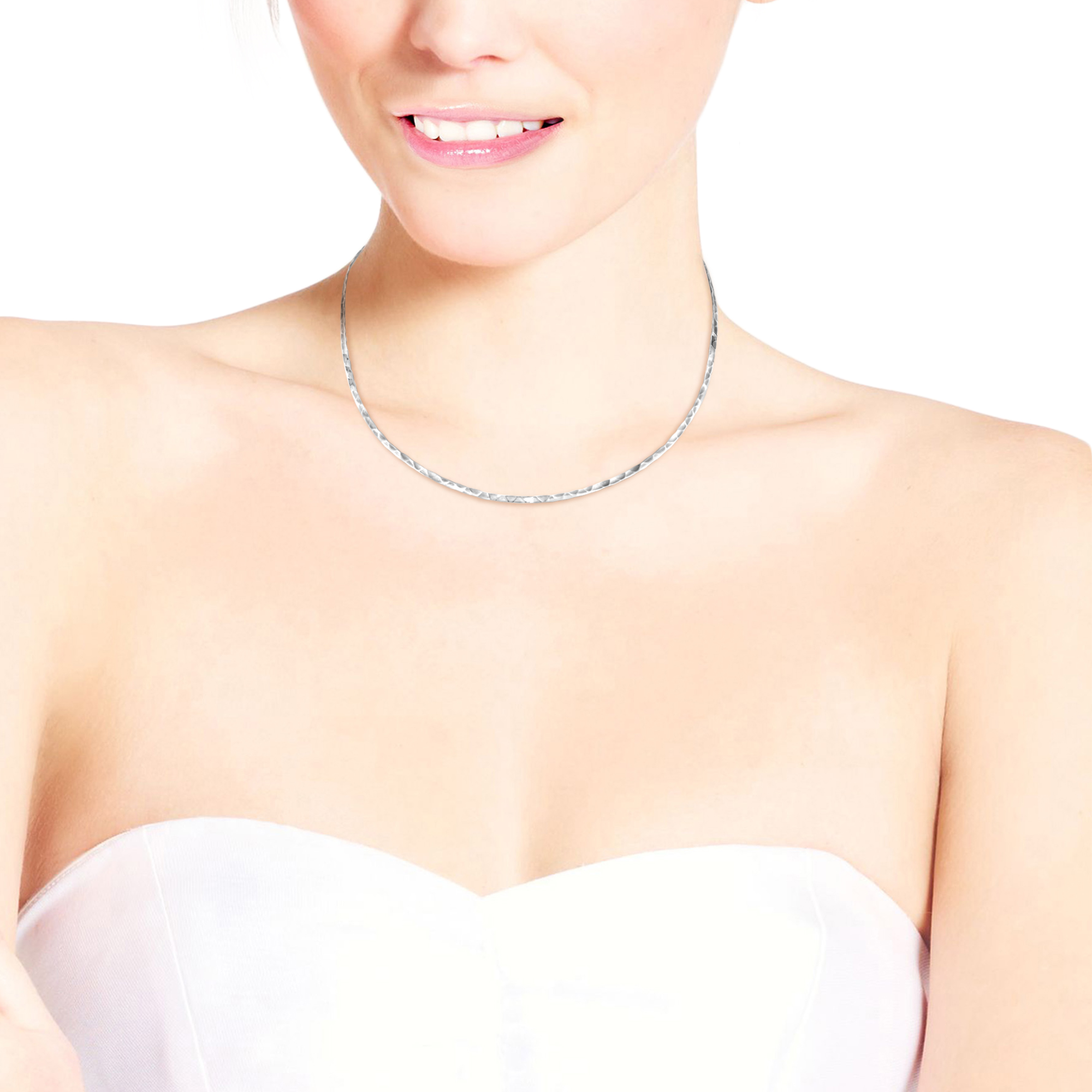 Glamour and glow with this stylish and modern choker-style necklace. Carefully crafted by artisan Katsaya, this choker necklace has a hammered texture effect and can accommodate all pendant with at least a 3mm bail opening. A fashion-forward necklace beautiful on its own or paired with a charm and other layering accessories.
