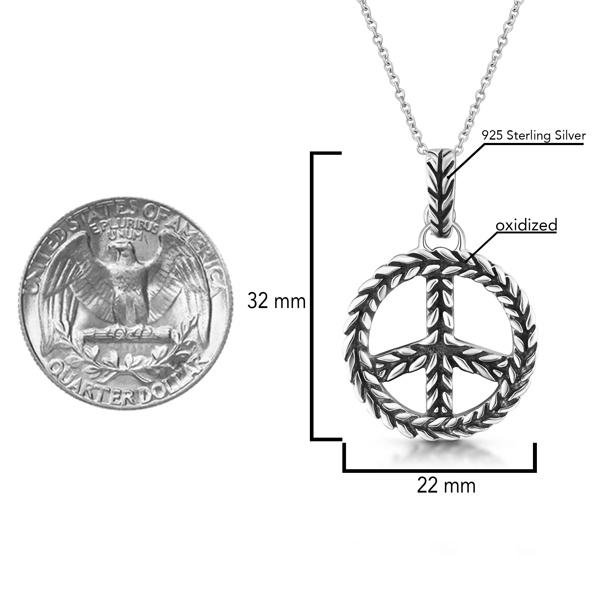 Artisan Andy of Thailand transforms fine sterling silver into an iconic necklace which features a stylish peace symbol pendant set on an 18-inch sterling silver cable chain. Bringing back a cool 60’s and 70’s kind-of-vibe, the peace symbol represents the beautiful message of ending all war. World Peace is an amazing idea that tries to bring people together despite their differences. A staple fashion icon for decades, this meaningful and trendy necklace will look amazing with whatever you are wearing. NOTE: Due to the handcrafted nature of this product, minor differences in design, sizing and weight will occur from piece to piece. The exact measurements may vary slightly. Pictures may not be true to scale, please check the dimensions for the actual size.