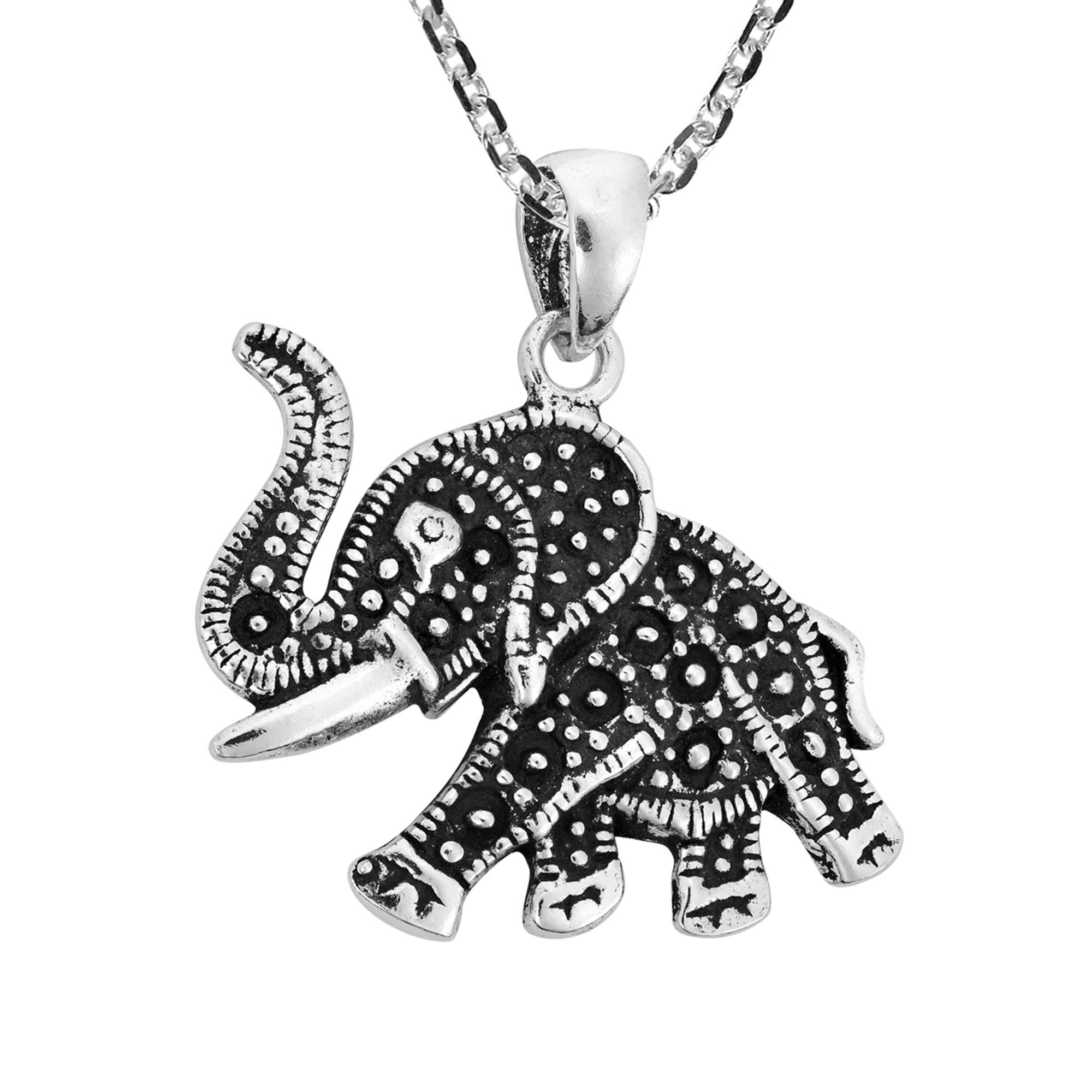The majestic elephant is a revered animal in Thailand and is important to both the history and culture of the country. This has inspired Thai artisan Watsud to create this stunning necklace featuring a powerful elephant pendant. Handcrafted from fine sterling silver, this pendant features dark and shiny silver finishes, which help define the fine details of the design. All set on a sterling silver cable chain that measures 18 inches long with a spring ring closure. Symbolizing strength and wisdom, this beautifully handcrafted necklace will look amazing with whatever you are wearing.