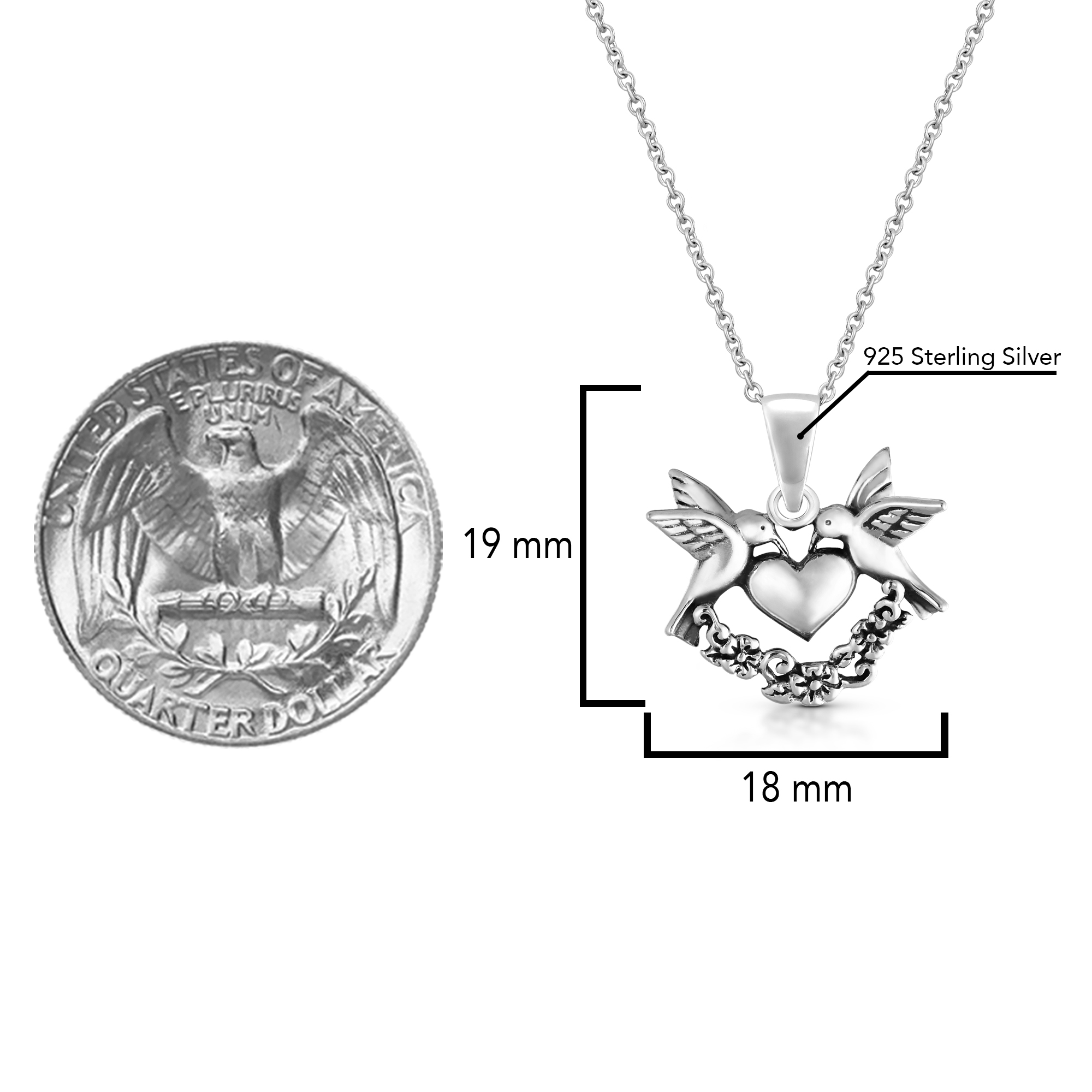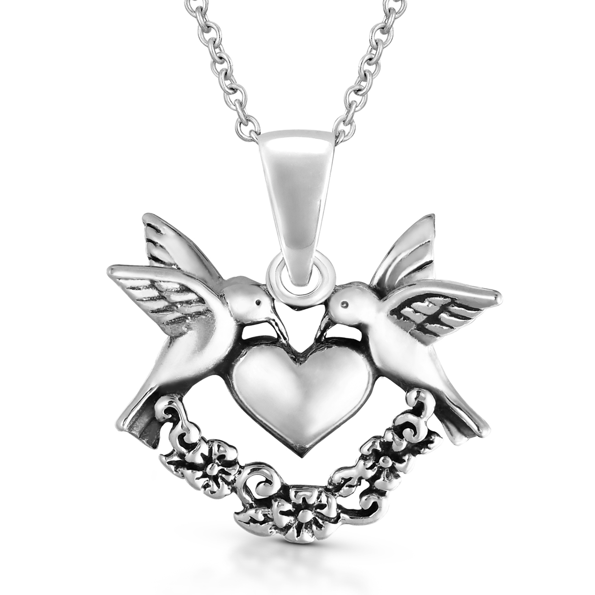 Add an adorable love-inspired accent to your outfit of the day with this amazing necklace from Thai artisan Andy. For this piece, sterling silver is transformed into a pendant featuring a pair of lovebirds perched on a floral garden. Beautifully handcrafted, these lovebirds will add a romantic accent to whatever you are wearing. This pendant is then set on a sterling silver cable chain that measures 18 inches long. A truly versatile accessory that you can wear anywhere, this love-inspired necklace can easily transition from work to play. NOTE: Due to the handcrafted nature of this product, minor differences in design, sizing, and weight will occur from piece to piece. The exact measurements may vary slightly. Pictures may not be true to scale, please check the dimensions for the actual size.