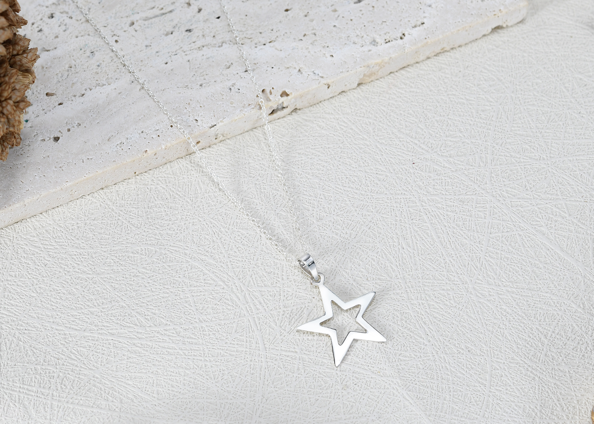 Sparkle like the stars in the night sky with these out of the universe fashion accessory. A gleaming 5-point star is crafted by hand and brilliantly polished by Khun Thip from Thailand. Star pendant hangs along an 18 inches cable chain with spring ring closure, made entirely from sterling silver. The perfect accessory for either work or play, this versatile star necklace will look amazing with whatever you are wearing.