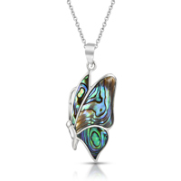 Depicted in all its glory, a sterling silver butterfly pendant featuring natural stone inlays alights on a silver cable chain. Thailand's artisan Goong crafts these pieces by hand and specializes in designing pieces incorporating natural stone materials and sterling silver .925. The natural wildlife style is ideal for women of all ages and is the perfect accessory for casual and outdoor attire.