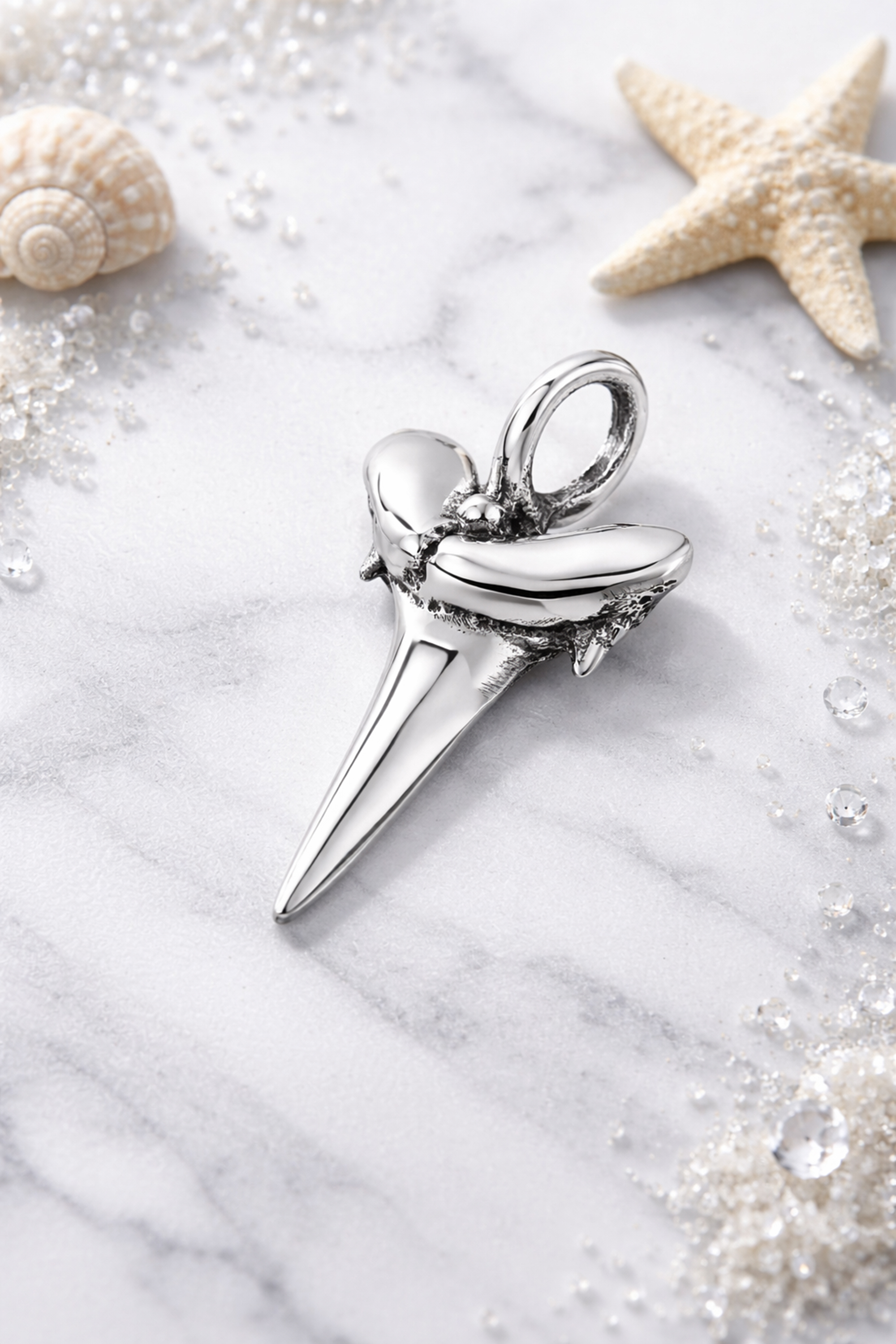 Add a unique ocean inspired accent to your fashion repertoire with this amazing pendant from Thai artisan Khun O’. For this design, she transforms sterling silver into a stylish shark tooth pendant. A beautiful piece inspired by the mighty shark, considered by many island cultures as the protectors of the ocean. This unique pendant will look great hanging from a chain or necklace of your choosing.