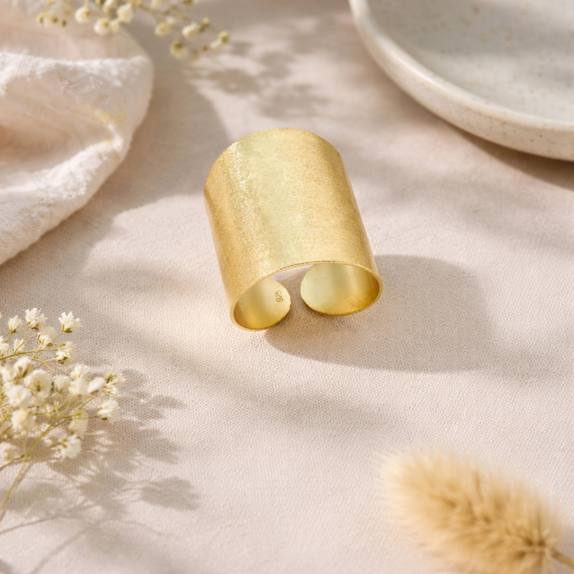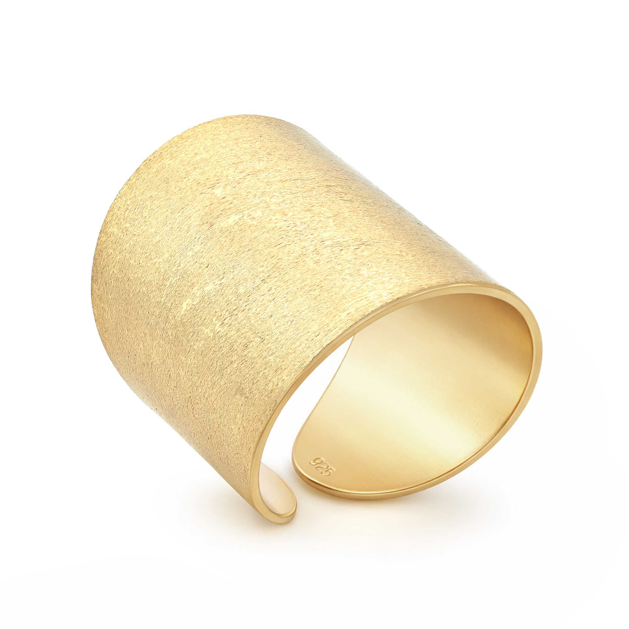 Add an eye-catching and stylish accent to any outfit with this tribal inspired ring from Thai artisan Khun Watsud. For this design, she expertly shapes sterling silver into a wide band ring, with the front half being much wider than the rear. This piece has a gold-plated silver satin finish, which is sure to add a cool shimmer to whatever you are wearing. This ring can also serve as a blank canvas where you can inscribe a unique design, the options are endless. The perfect way to accessorize with sterling silver, this statement ring will look great on you.