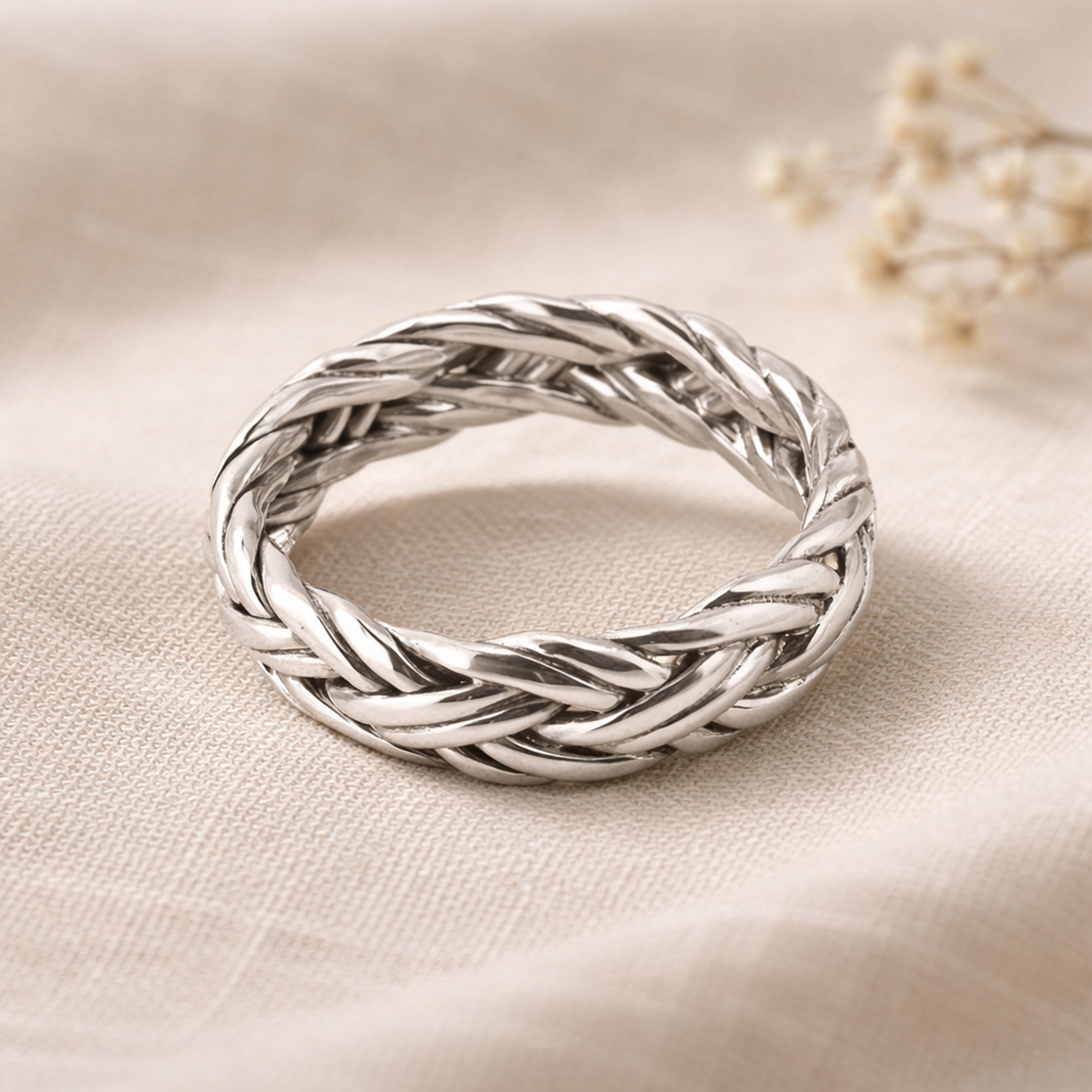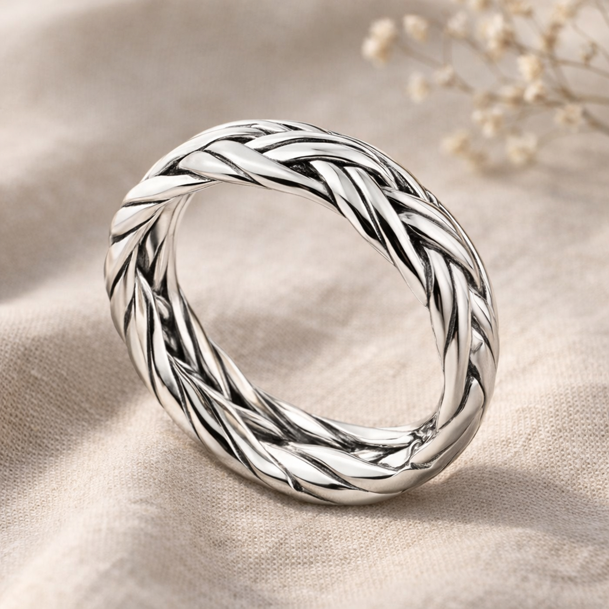 Sterling silver strands are delicately woven into an intricate braid in this classic design by Artisan Nuch. Together with her family in Northern Thailand, Nuch has been handcrafting .925 silver jewelry for decades and fashioned this style from a popular basket weave design she saw in her workshop.