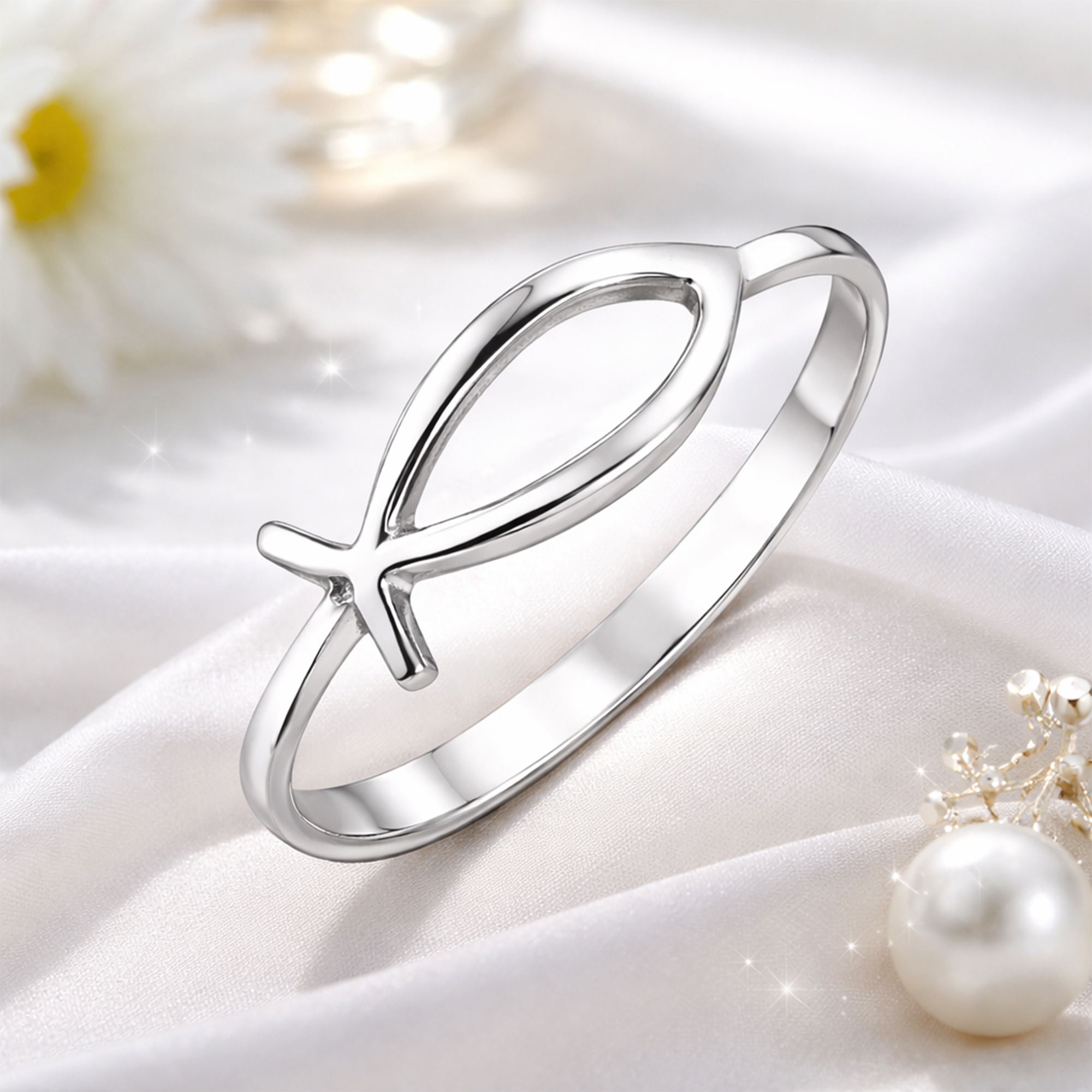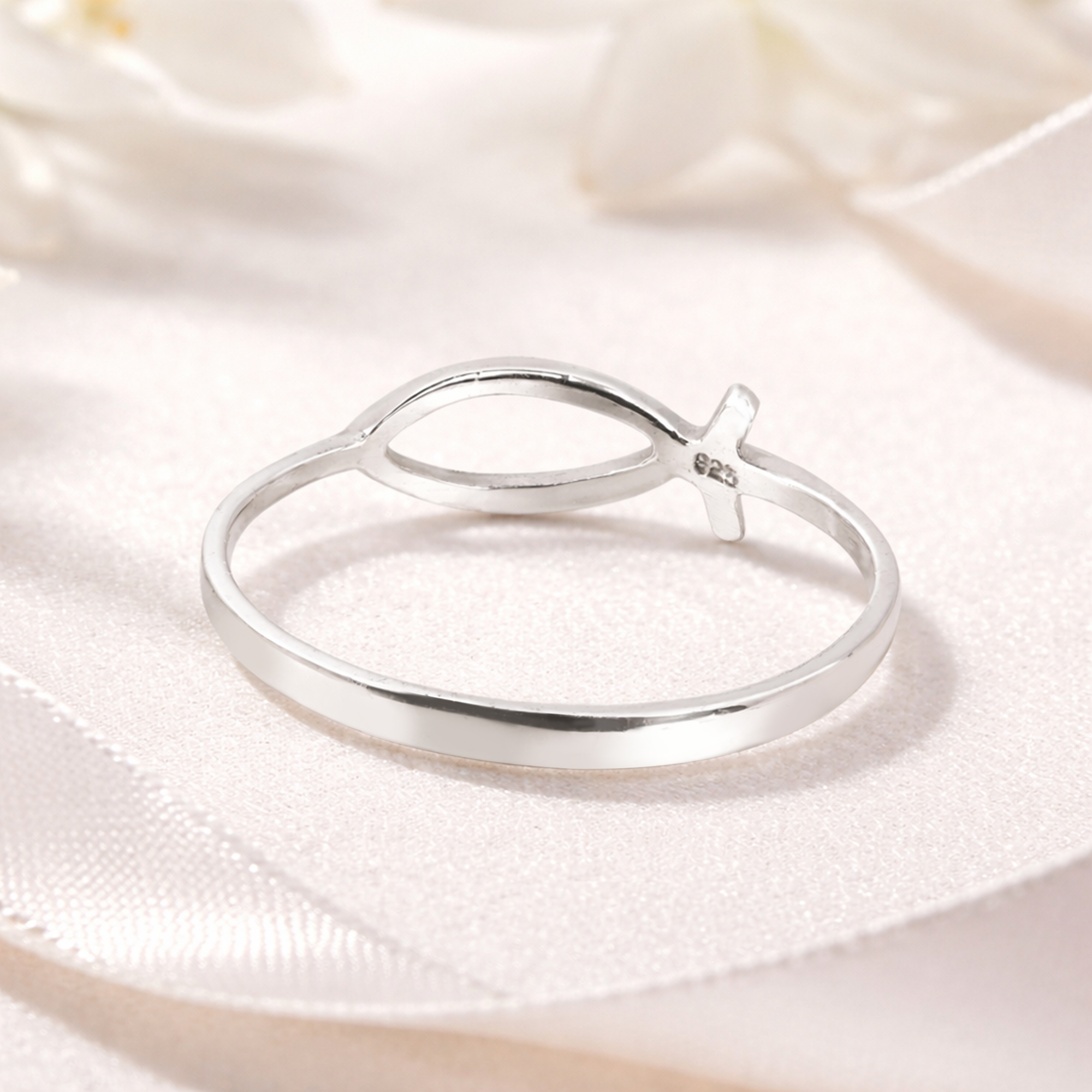 Crafted for lovers Christian symbolism and faith, this Jesus fish Ichthys symbol ring may look simple but it carries a profoundly powerful message regarding the name spirit of Jesus. Made by hand from sterling silver .925 in the workshop of Thailand's Artisan Khun Kung, a simple Ichthys Jesus Fish is depicted with light oxidized contrasts upon a simple band ring. Great for all styles and outfits and perfect for everyday wear.