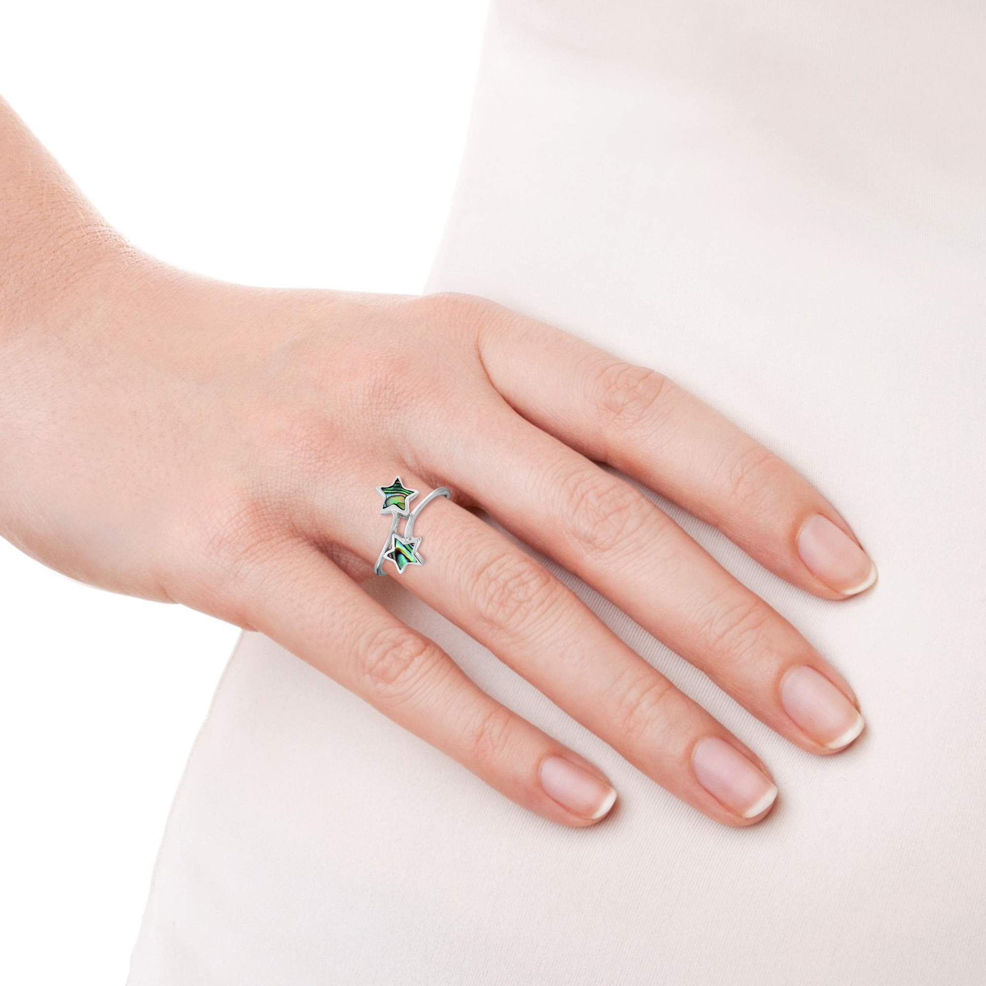 Count the stars and make a wish upon them with this space-chic cosmic style handcrafted ring. A versatile take on this iconic symbol from Thai artisan Khun Yuu, this piece features vivid stars with iridescent abalone shells set on opposite ends of the band. Shine at your brightest with this celestial-inspired handcrafted ring. A marvelous gift for space and galaxy lovers.