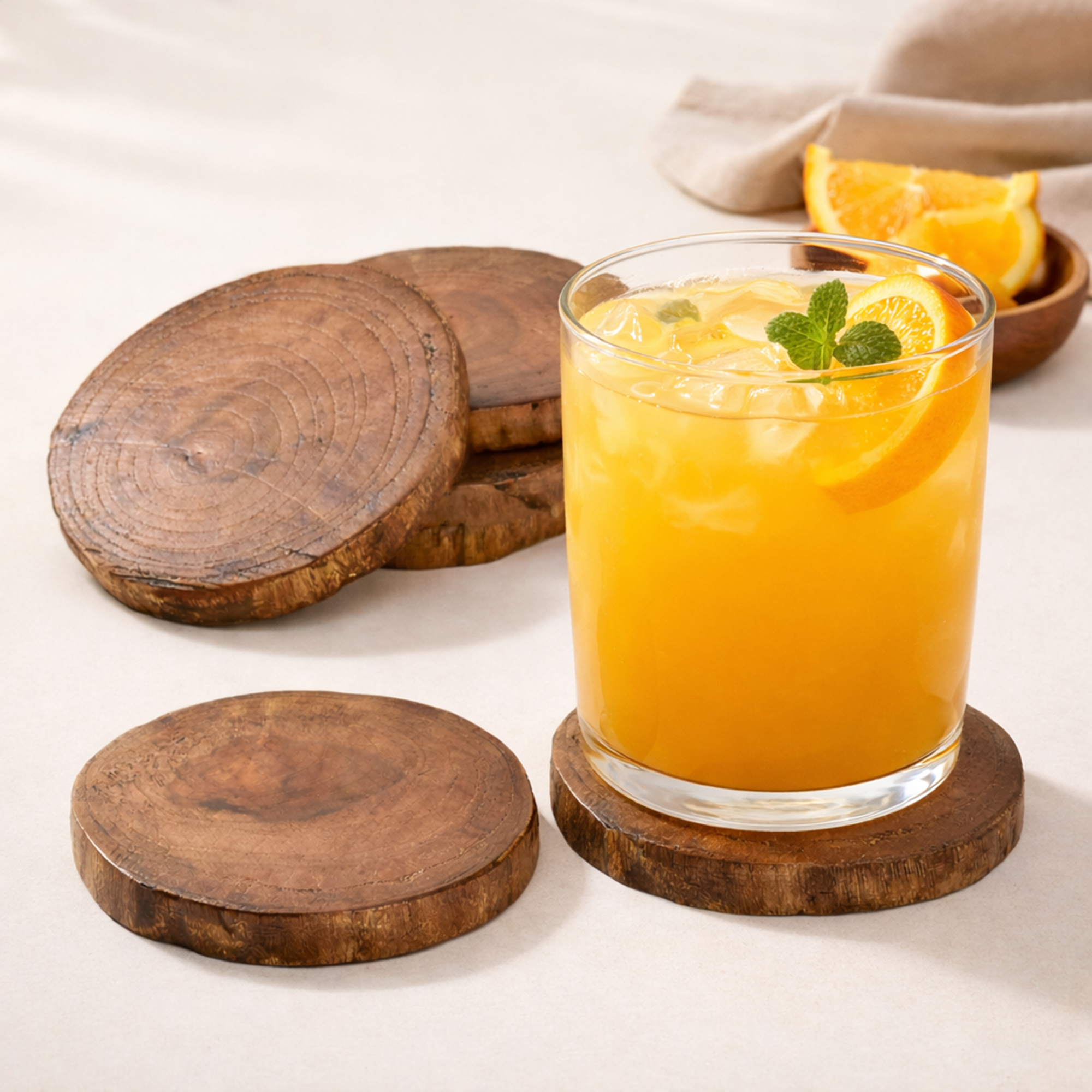 Teak Wood Natural Tree Bark Coaster Set of 5