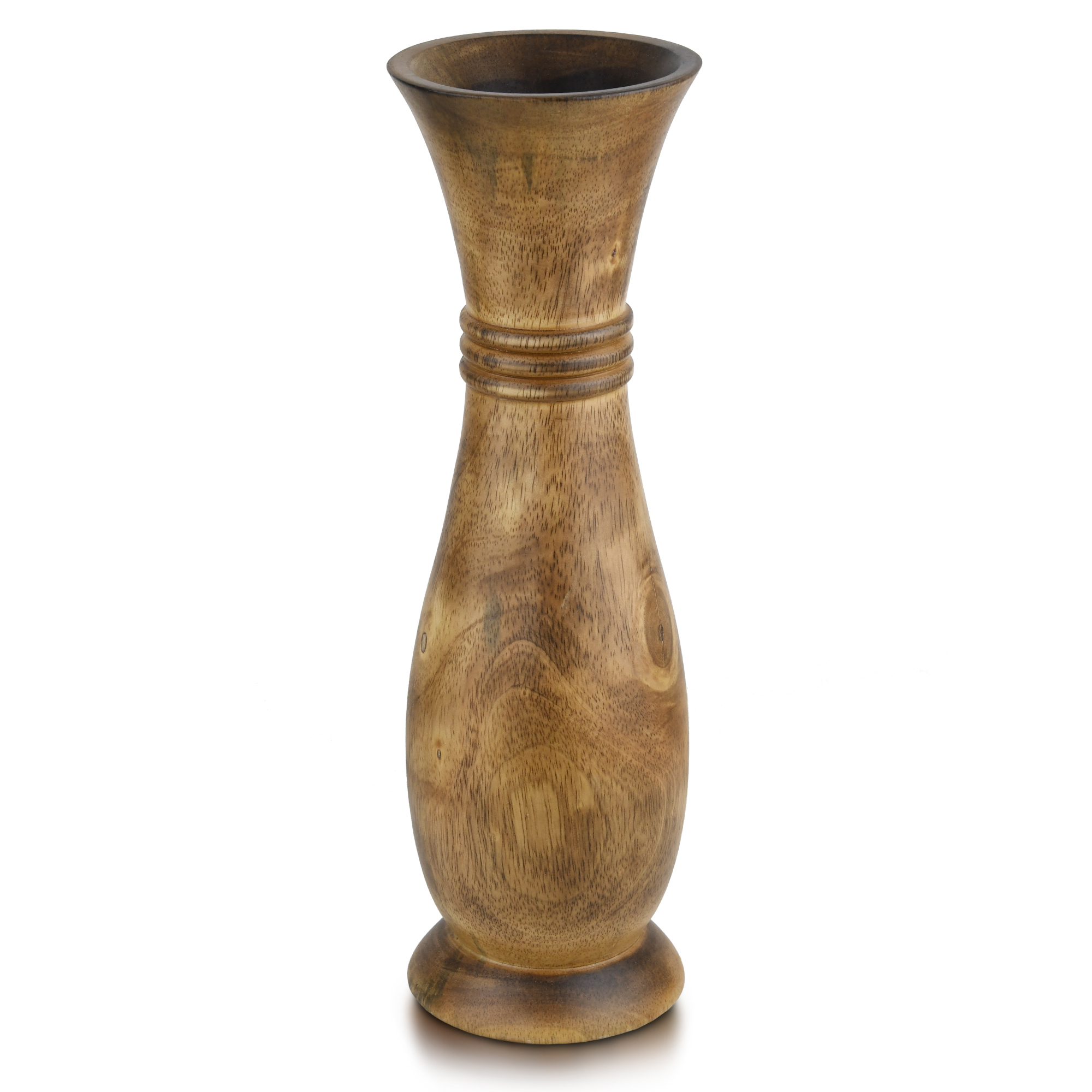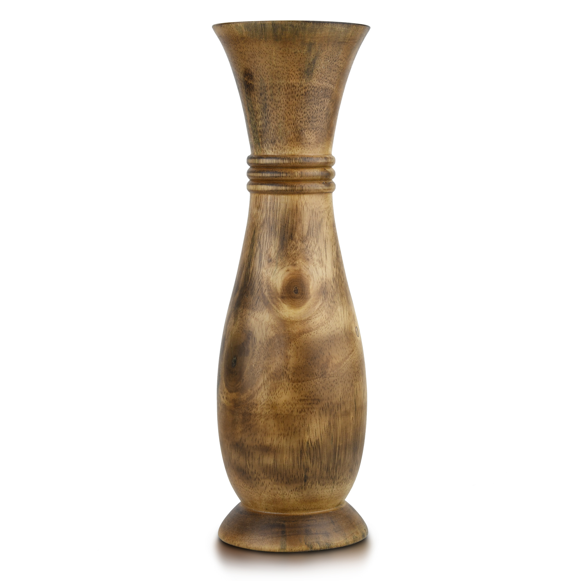 Nature Inspired 14-inch Curvy Bottle Shaped Mango Tree Wooden Vase