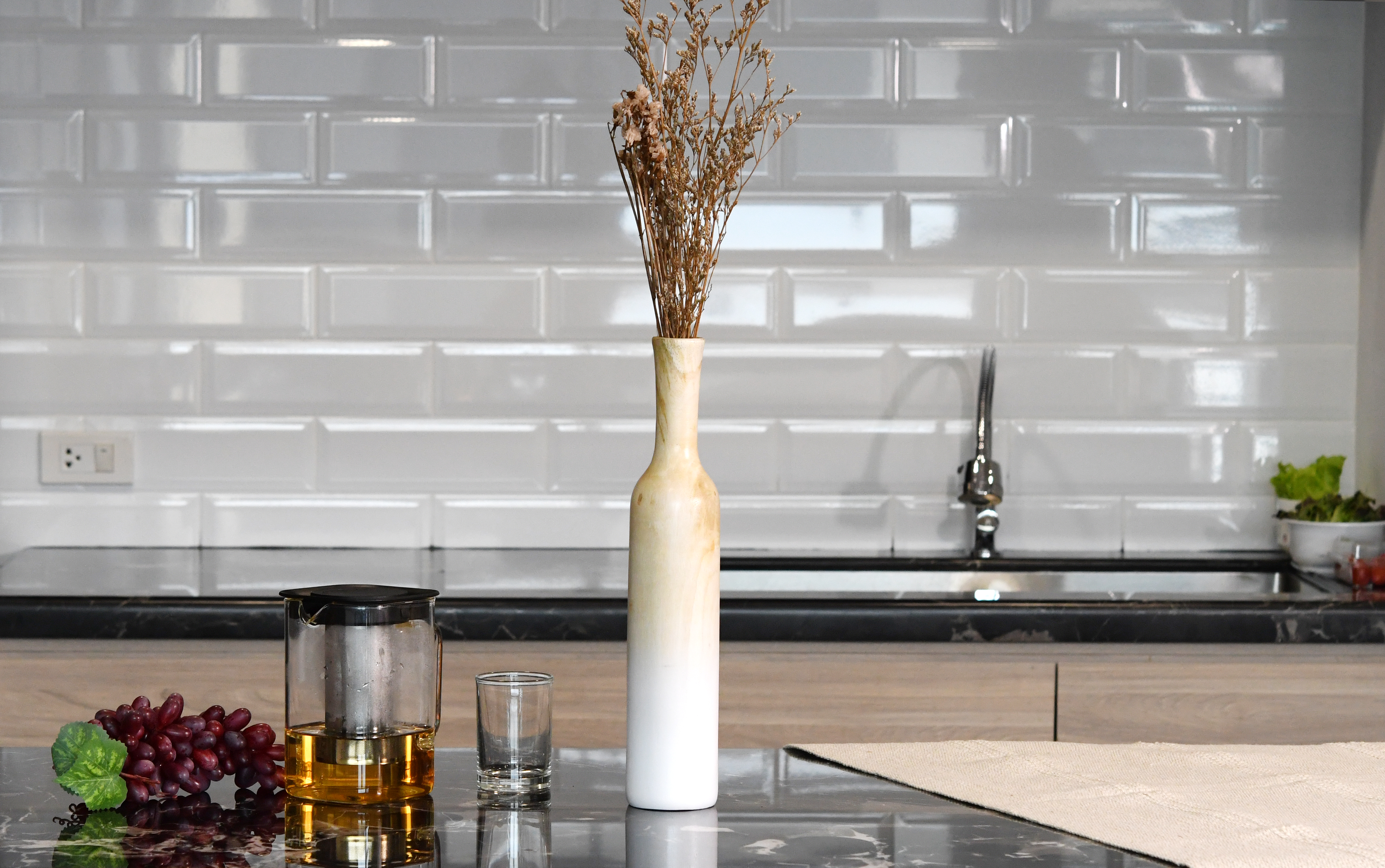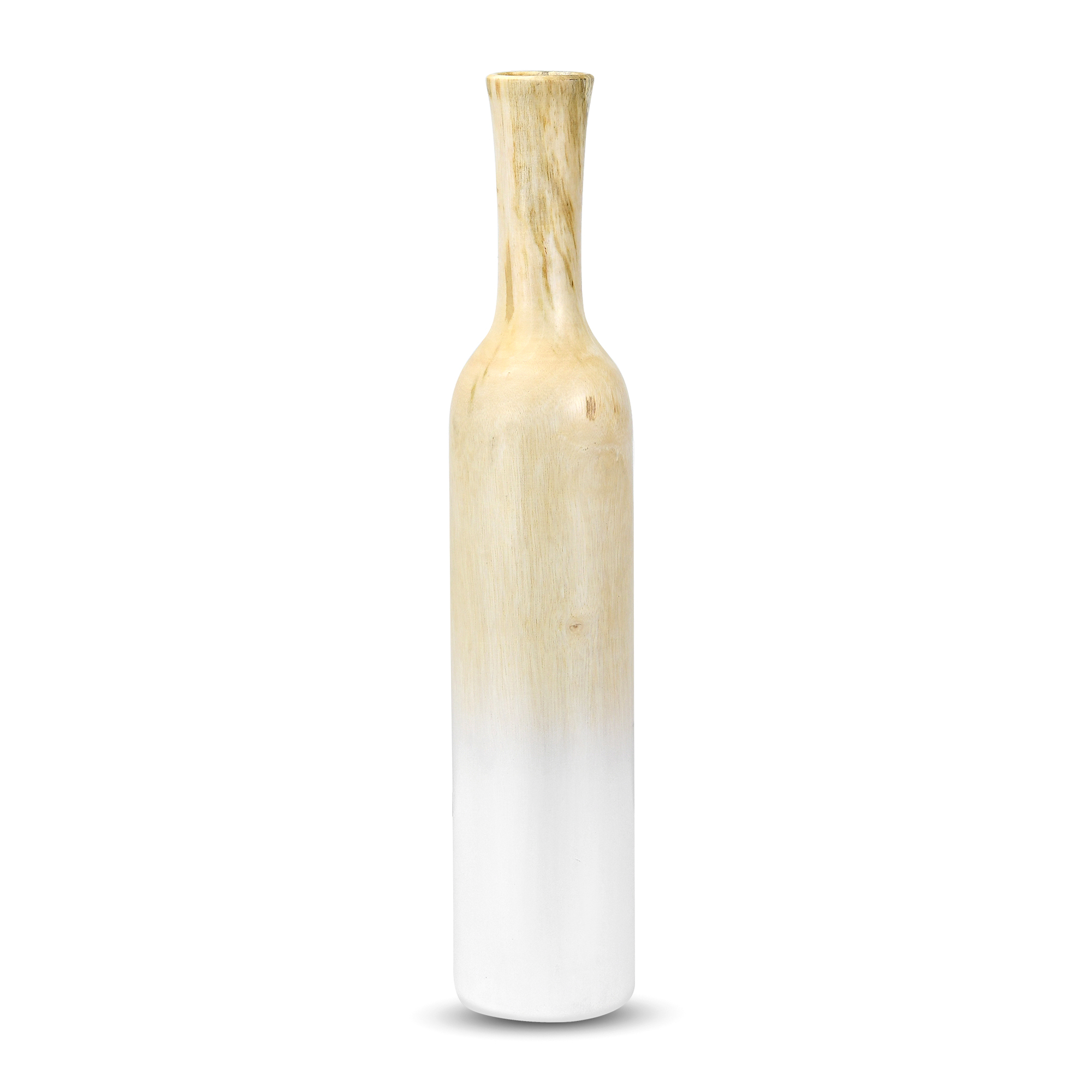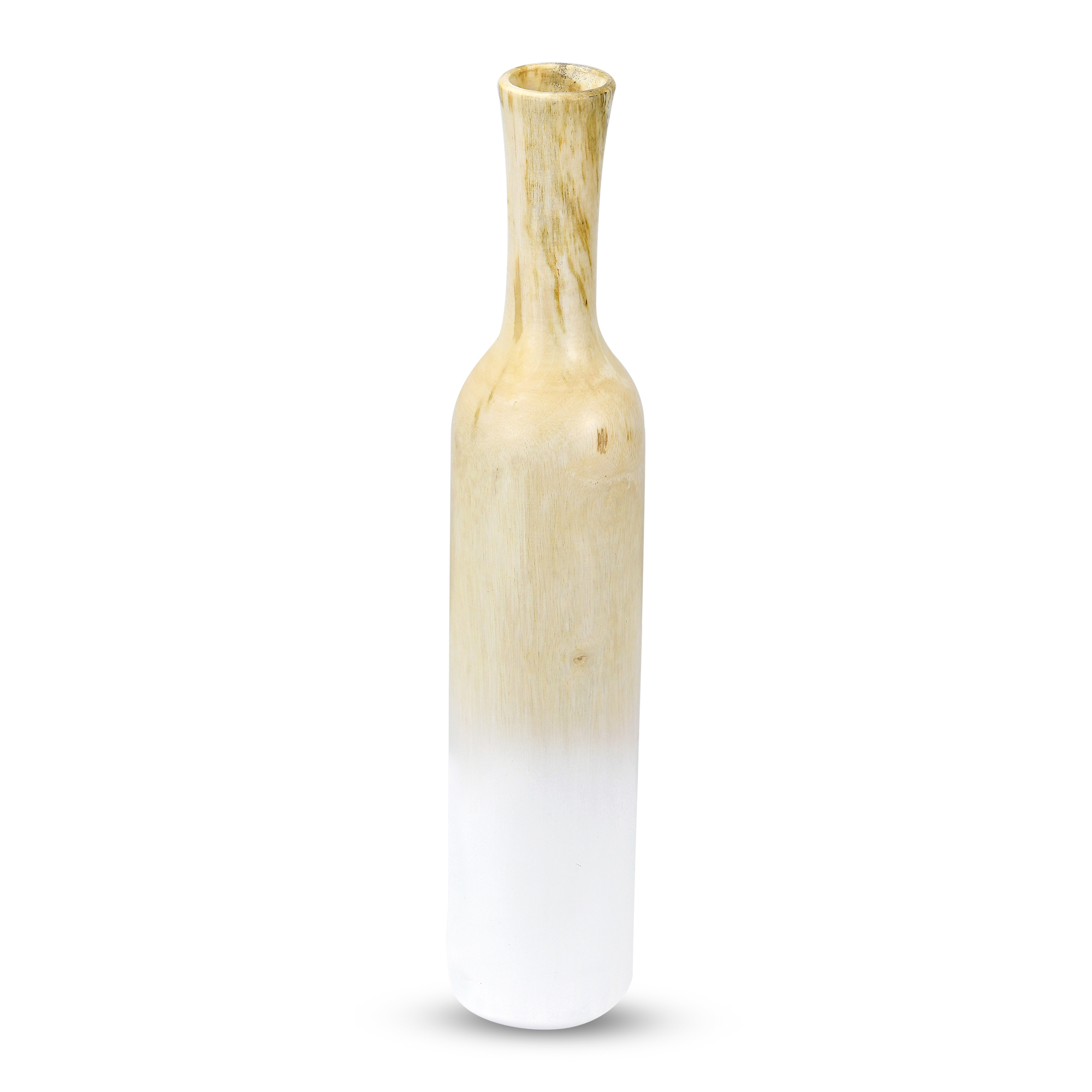 Achieve a look of sophisticated elegance with this long bottle-shaped wooden vase featuring a stunning light brown and white ombre design. The gradual blending of colors adds depth and visual interest, while the elongated silhouette adds a touch of modern flair. Perfect for displaying tall floral arrangements or as a standalone decorative piece, this vase enhances the ambiance of any room with its timeless appeal. Feel free to check out more designs via our other listings. NOTE: Due to the handcrafted nature of this product, minor differences in design, sizing, and weight will occur from piece to piece. The exact measurements may vary slightly. Pictures may not be true to scale, please check the dimensions for the actual size.