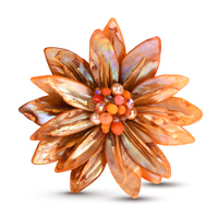 An accessory that is vital to your outfit, this pin/brooch features a water lily design made of natural shells with freshwater pearls, amethyst and crystal centers. This jewelry was handmade in Thailand.