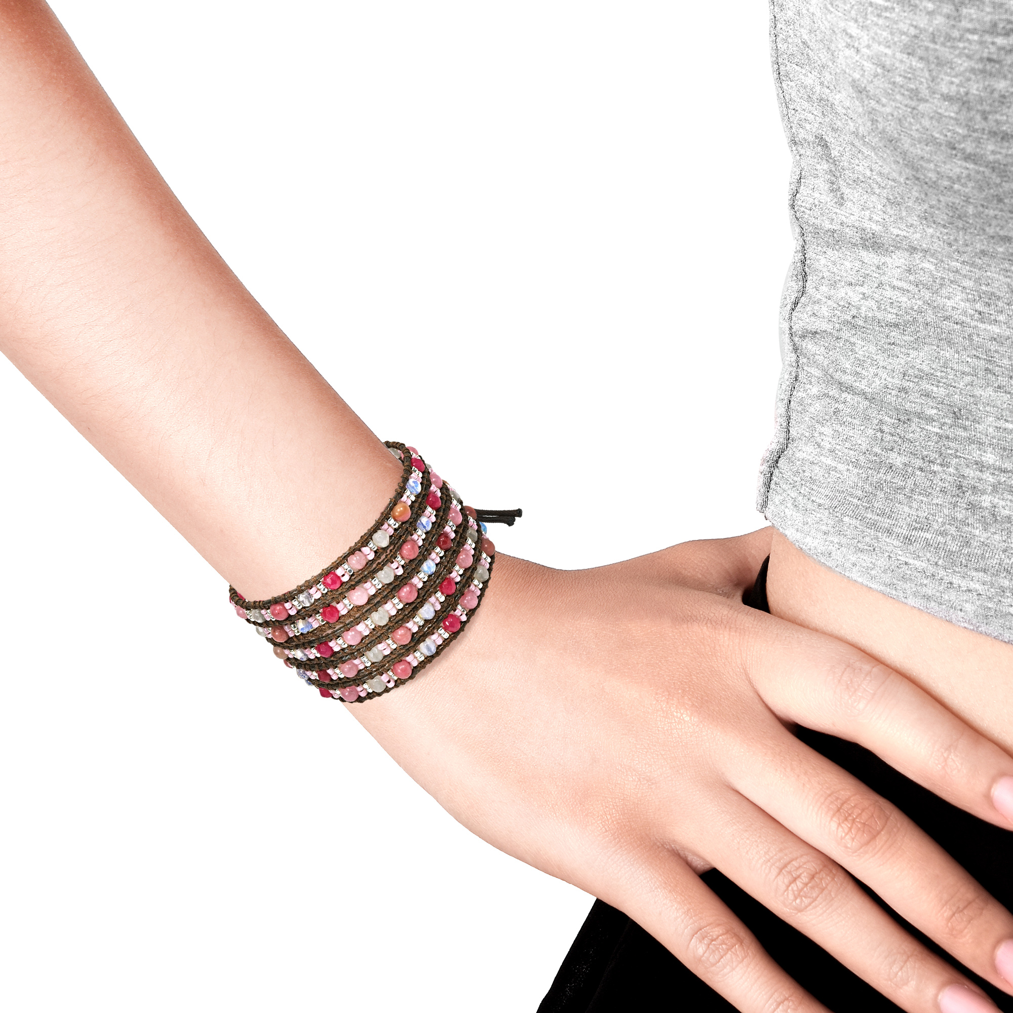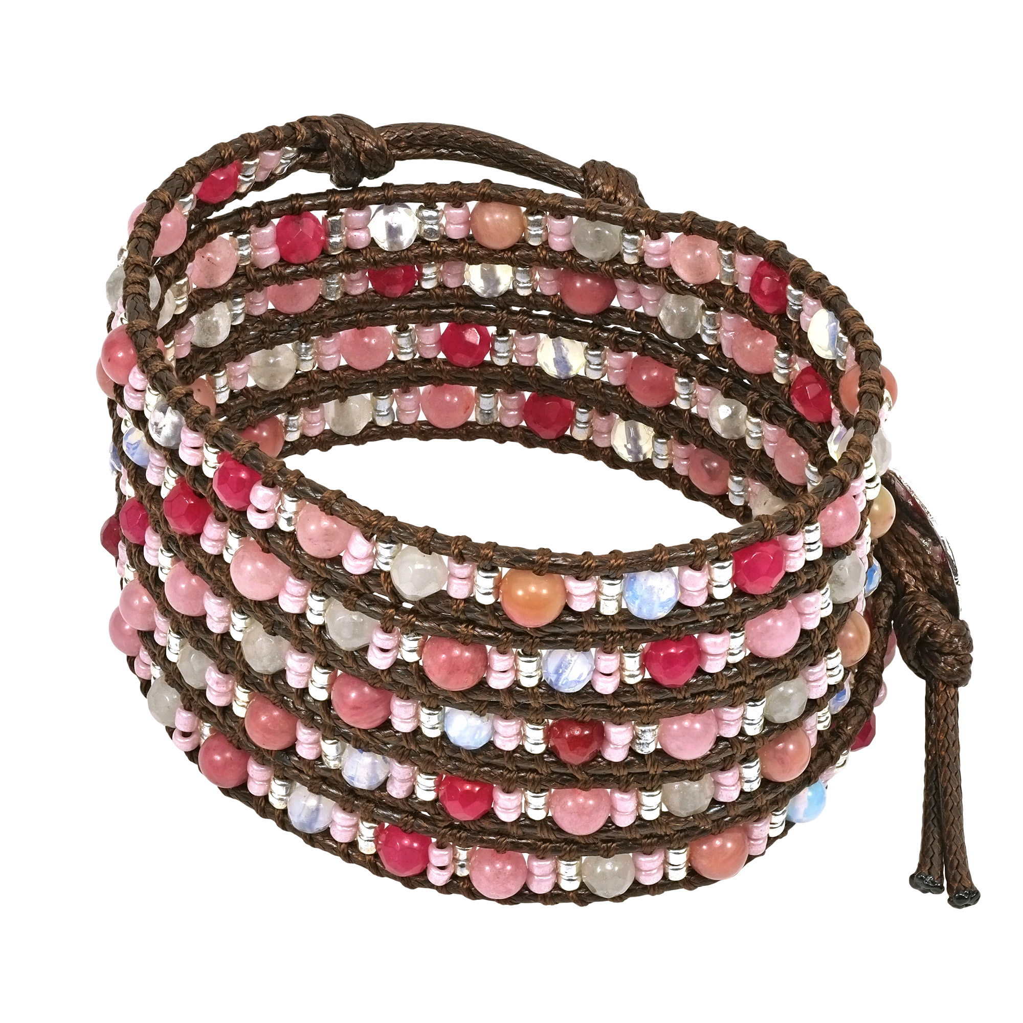 This wrap bracelet is an amazing example of tribal and native design from local artisan Ton, who gets her inspiration from her mountain village home in Northeastern Thailand. This unique piece uses natural materials such as natural stone, crystals and glass (depending on style) with 100% genuine leather and cotton wax rope and comes in a variety of color combinations for you to choose from. This bracelet measures 33 inches with a 1.5 inch extension and is designed to be worn in a wraparound fashion which adds a cool layered look. A great piece that is perfect for any occasion and is great for everyday wear.
