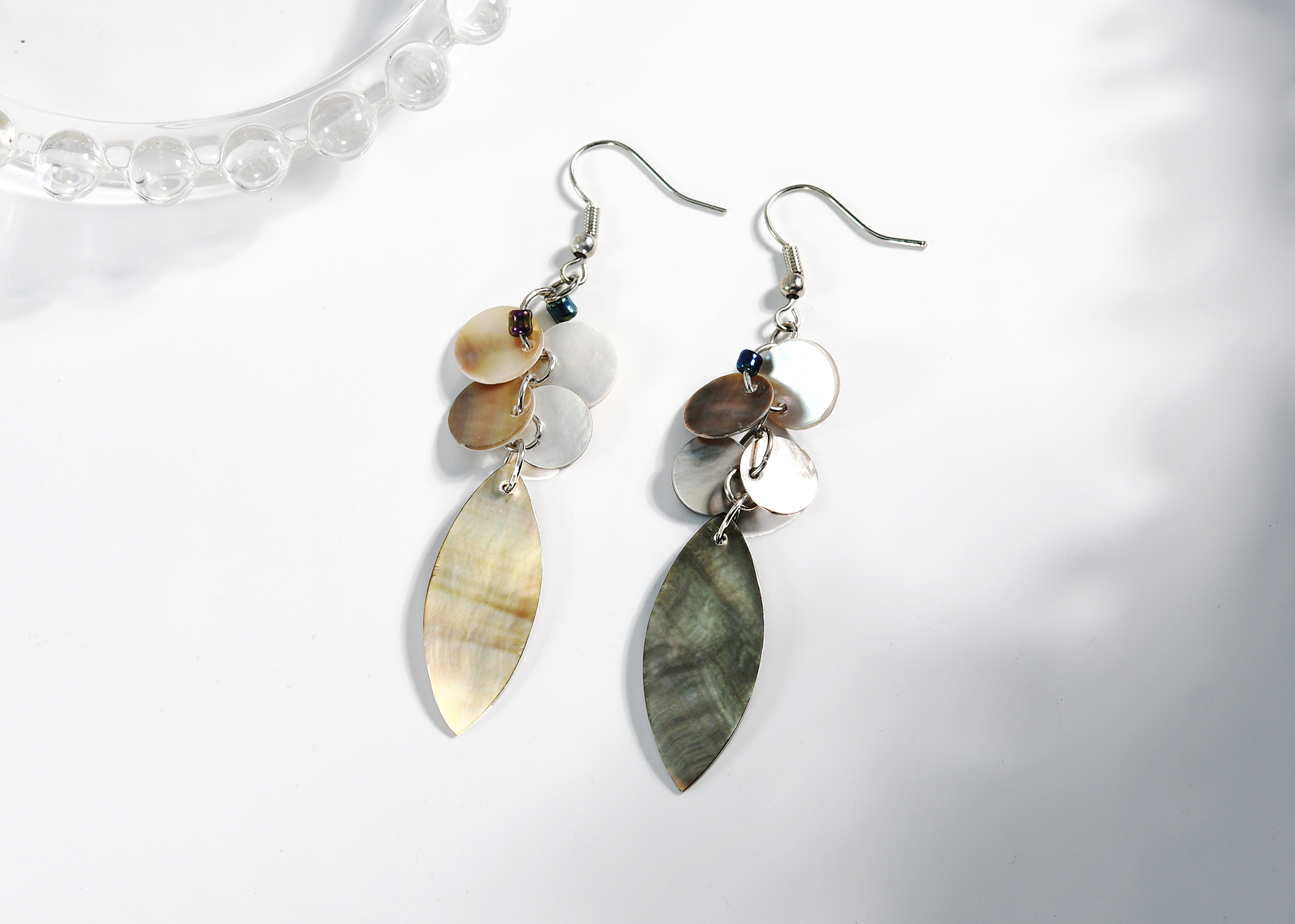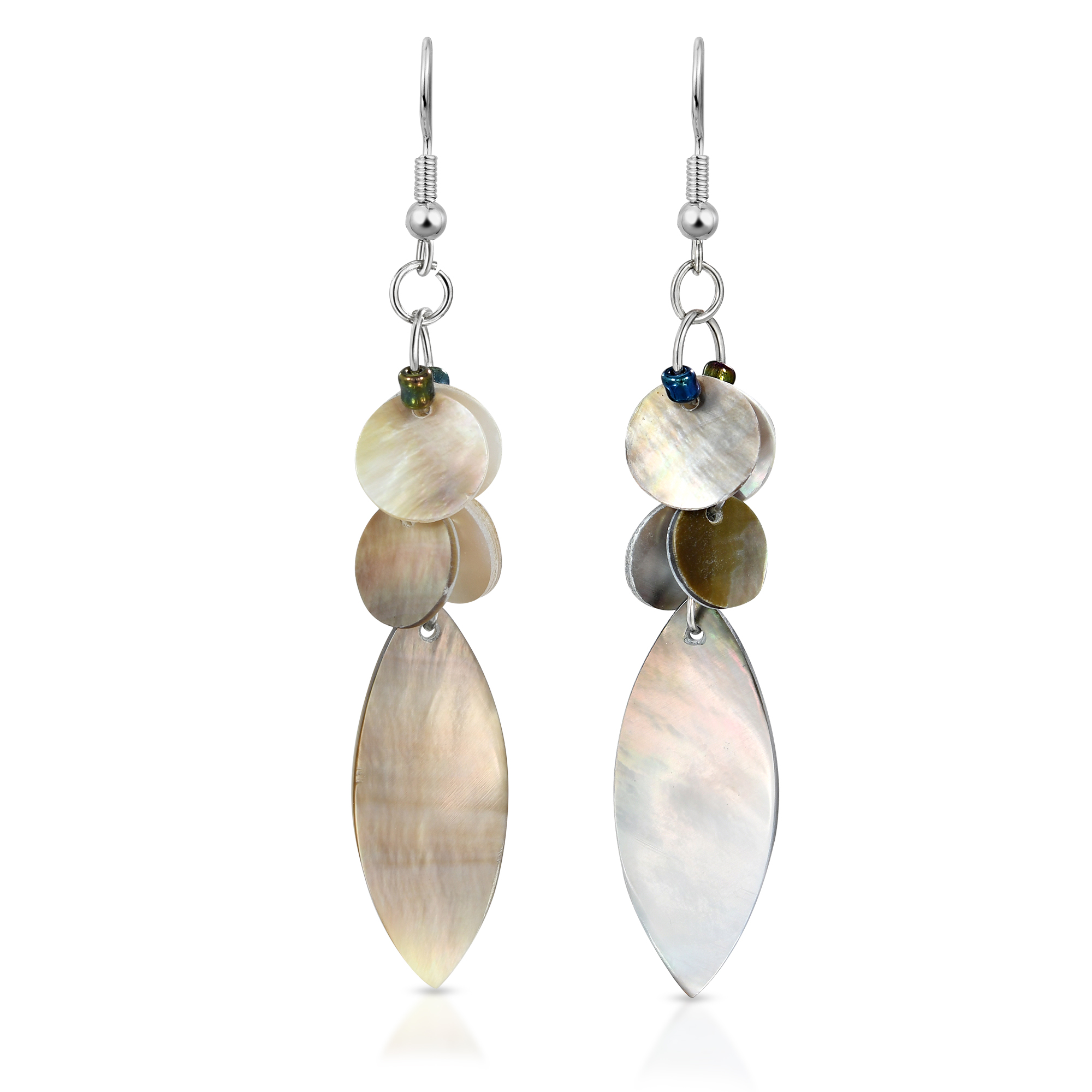 Beach Inspired Grey Mother of Pearl Seashell & Bead Cluster Dangle Earrings
