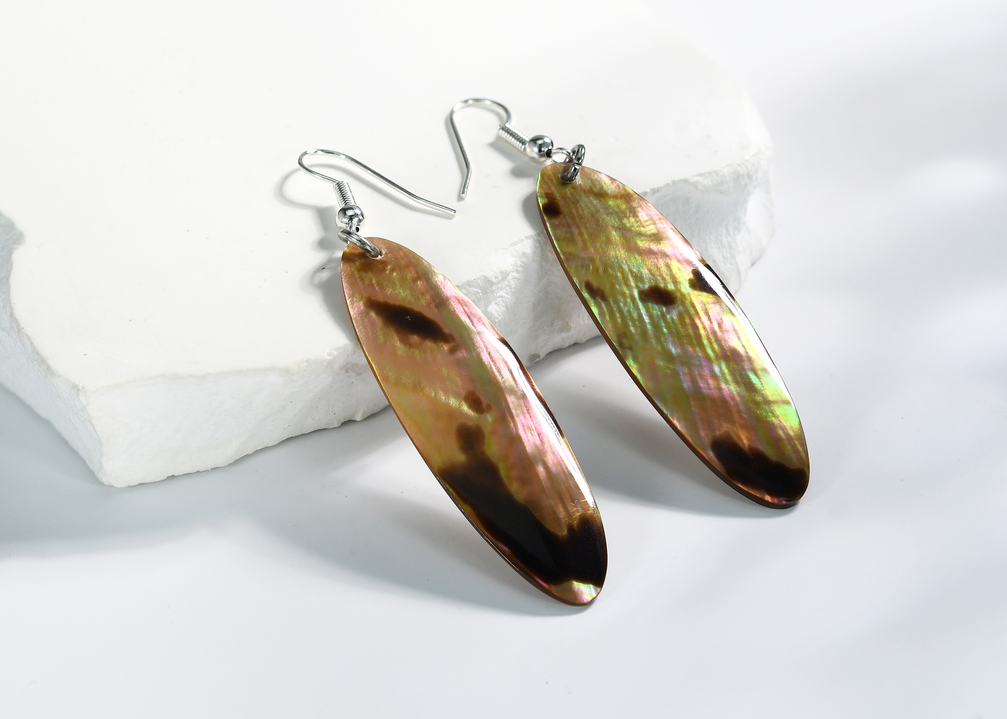 Showcasing the beautiful iridescence found within a seashell, these stunning dangle earrings from artisan Mary Jane of the Philippines are sure to look gorgeous on you. For this design, she uses genuine brown lip shell and transforms it into a pair of elegant oval-shaped dangle earrings. The natural dark markings are unique to each and every pair, as no two shells are exactly the same. Making for an original work of art from nature, these trendy earrings will definitely make a wonderful addition to your style wardrobe.