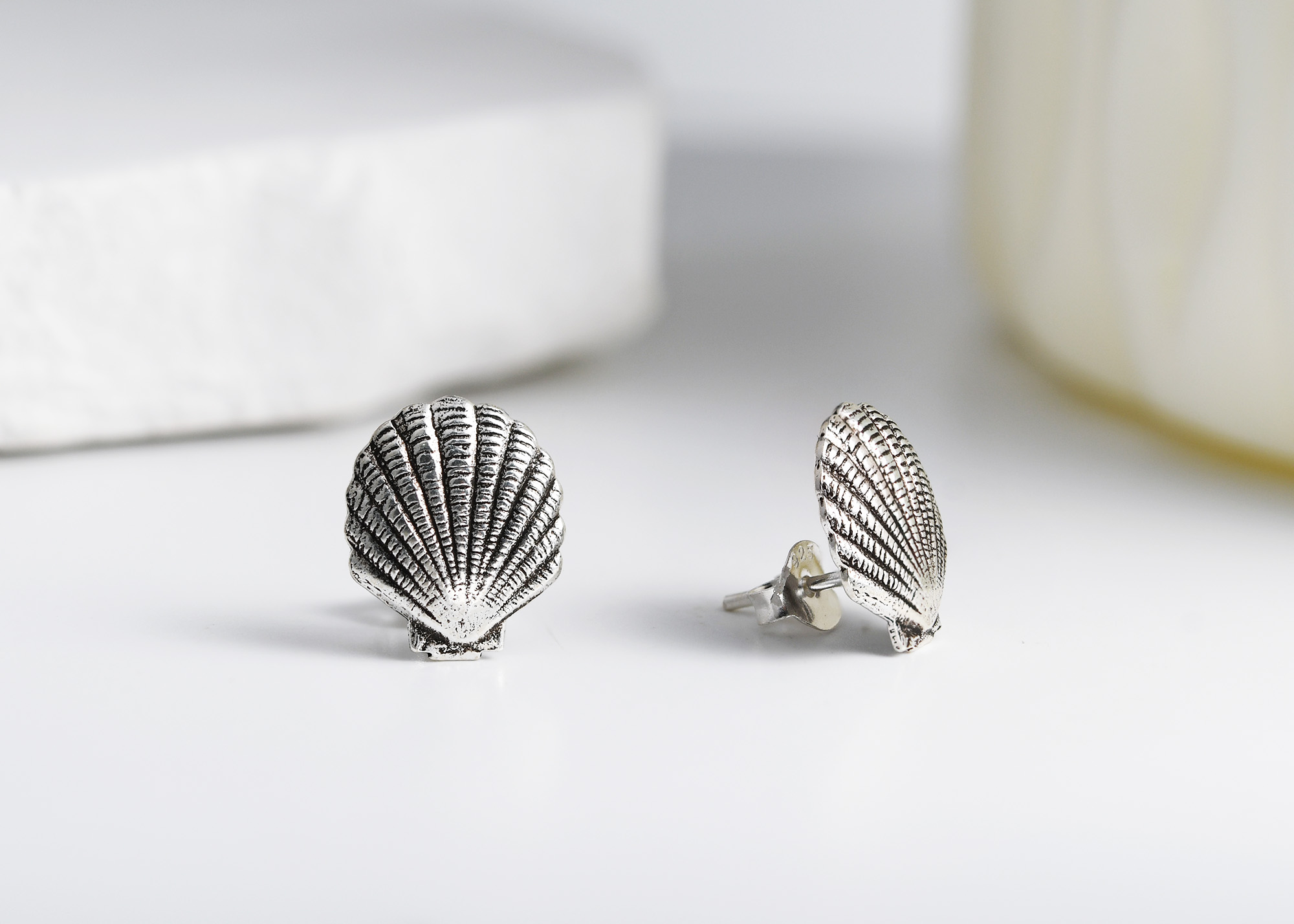 Crafted for ocean, sea, beach and nature lovers, these seashell earrings may look simple but they carry a profoundly powerful message of love and fertility. Made by hand from sterling silver .925 by Thailand's expert silversmith Khun Watsud, a highly detailed seashell is depicted with oxidized contrasts and a push back closure. Great for all styles and outfits and perfect for everyday wear.